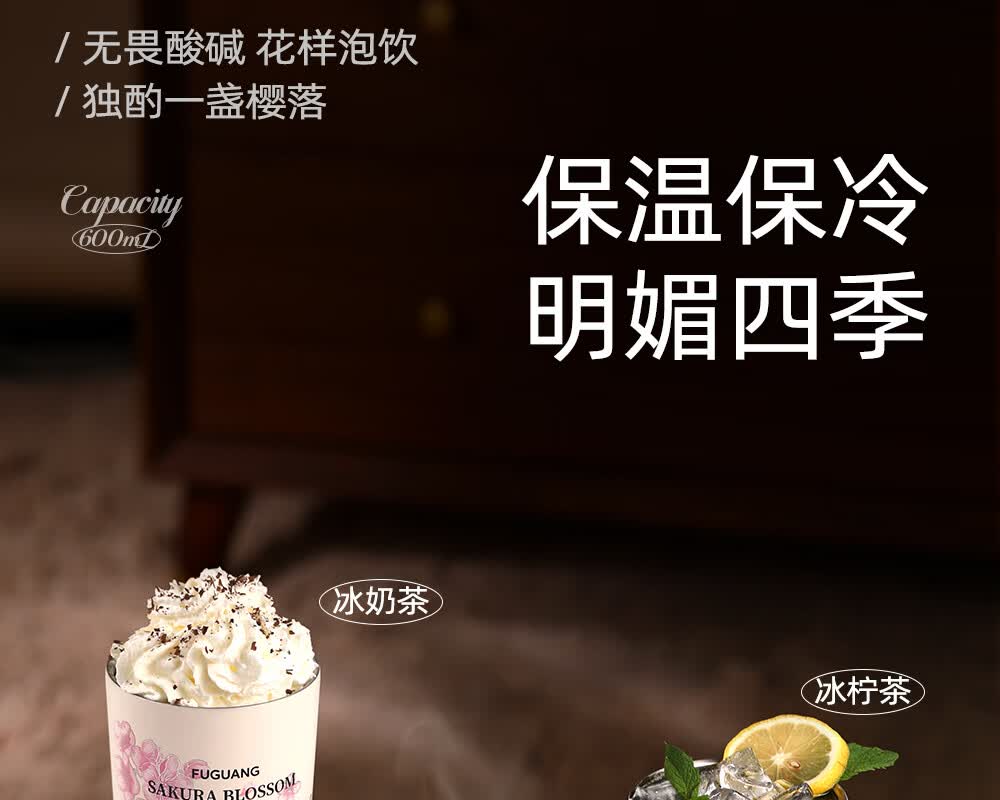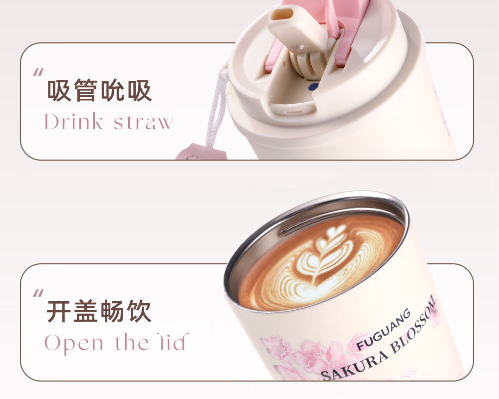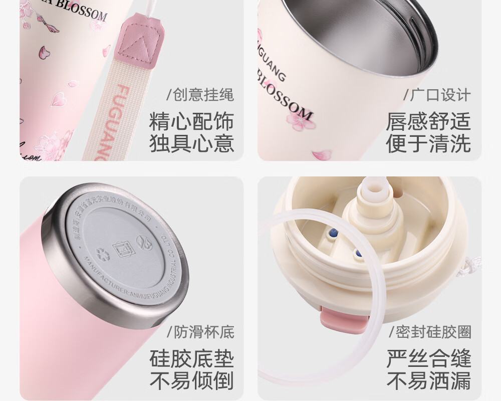 富光保温咖啡水杯子女316L不锈钢高颜值大容量吸管车载茶杯礼物
