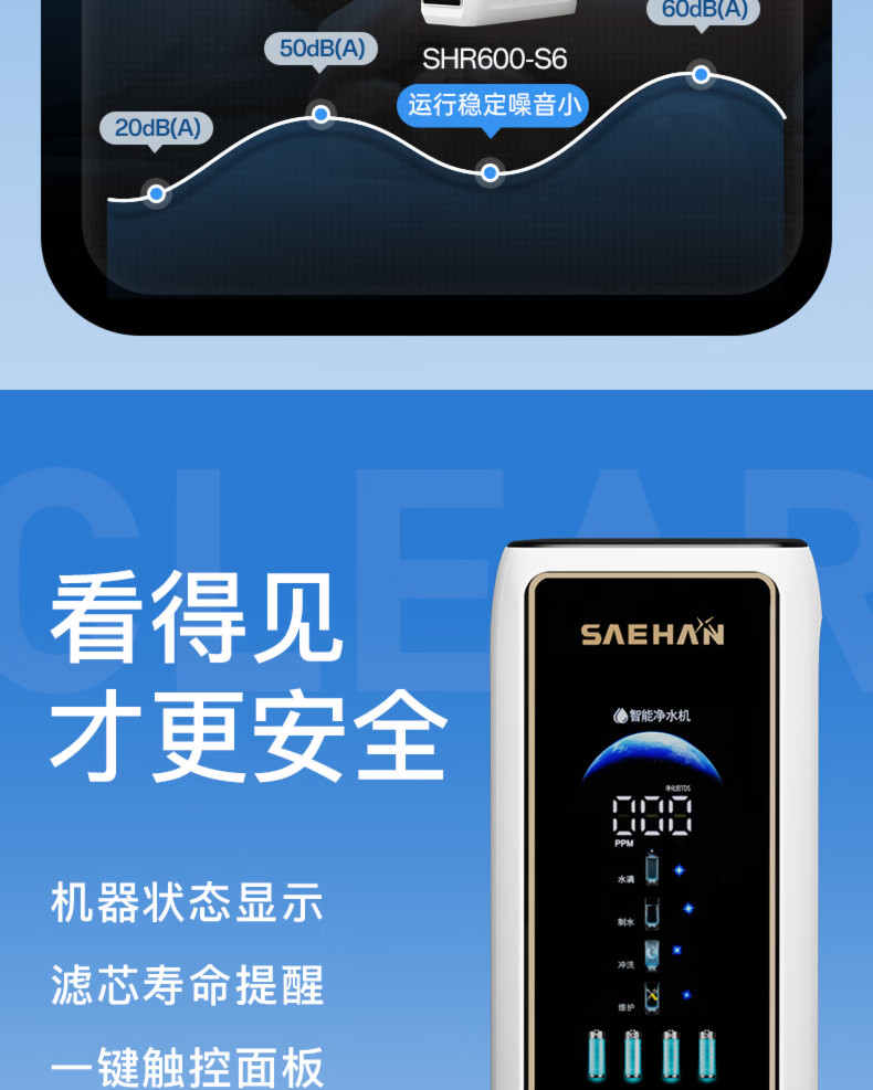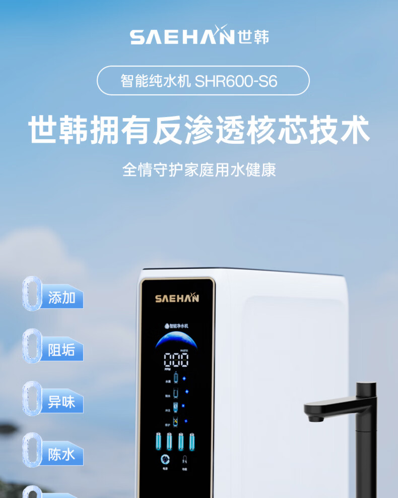世韩(SAEHAN)【专利纯水护膜通用滤芯】 4:1微废水全屋家用软水机中央净水软水器套装净水系统直饮净水器净饮机 预售【RO世韩600G】净水+纯水