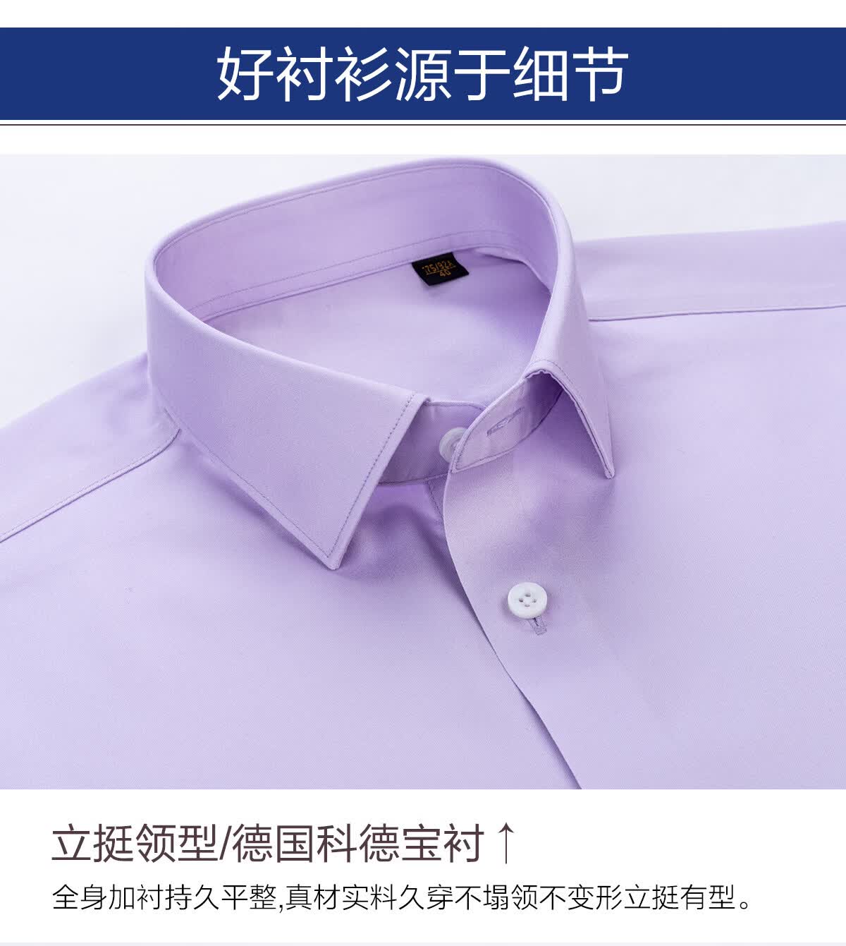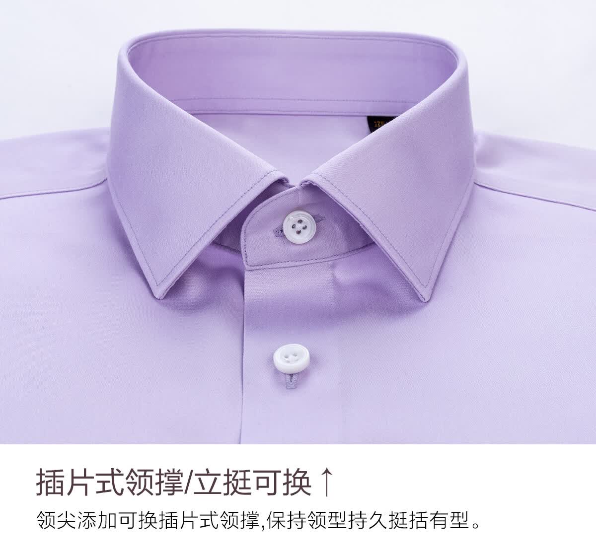 鲁泰奢级200支面料免烫男士衬衫长短袖正装休闲高级紫色纯棉衬衣 复活节紫/短袖 45 (185/112A