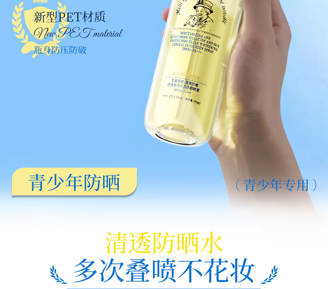 佩奇奶奶儿童防晒喷雾可上飞机户外防水防汗紫外线清透持久3-18岁适用 SPF50+儿童防晒喷雾99ml*1瓶