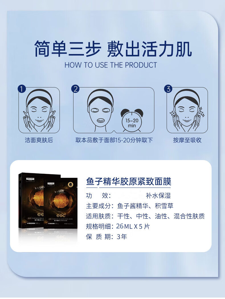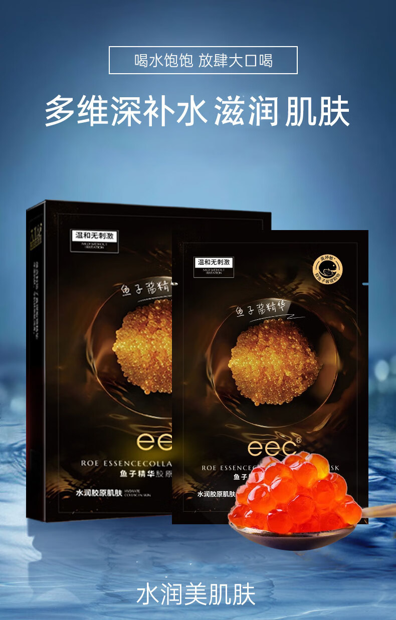 EEC(官方专卖)鱼子酱面膜男女士熬夜暗沉油皮补水精华面膜护肤品 【体验装5片】鱼子酱精华面膜