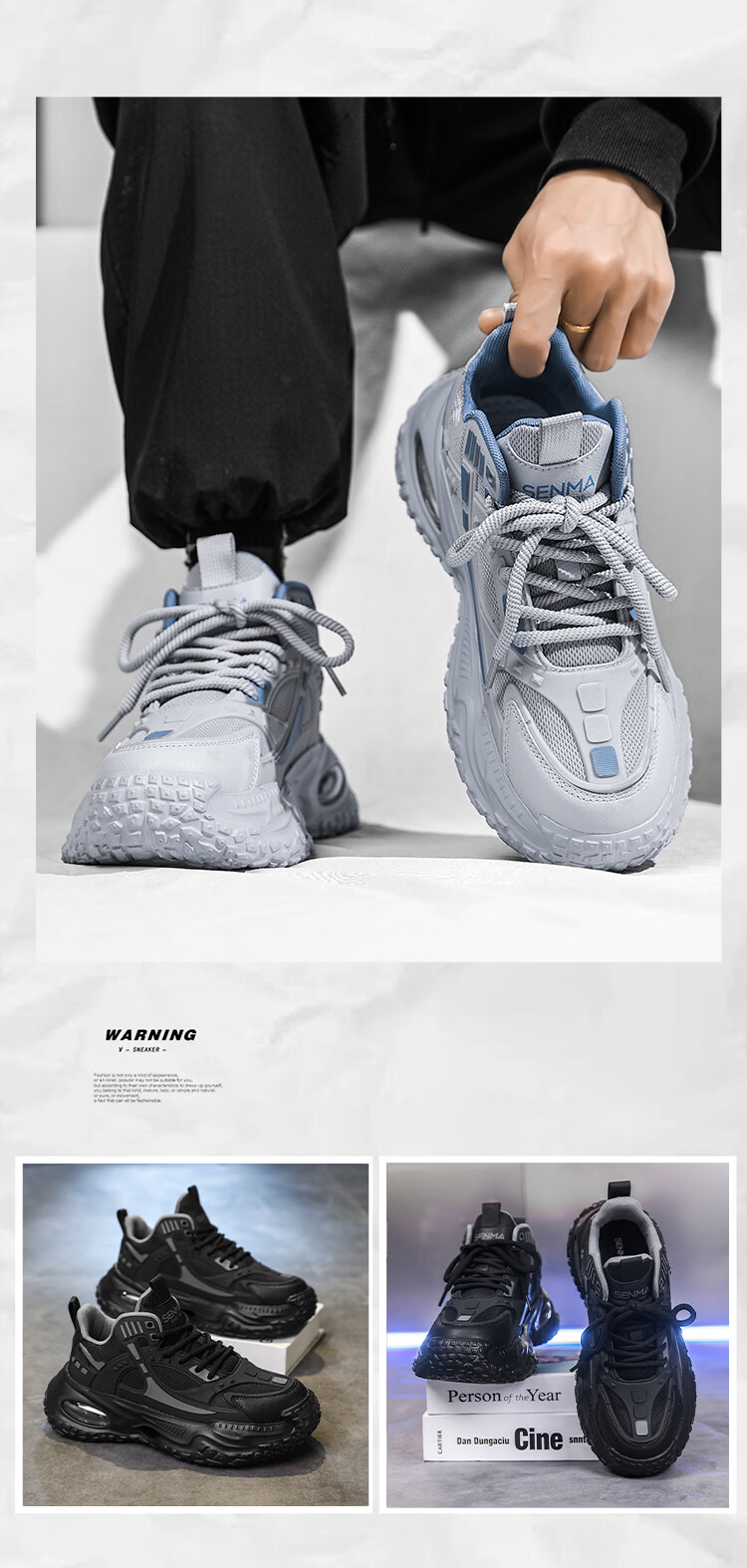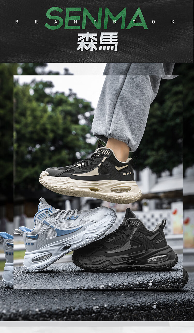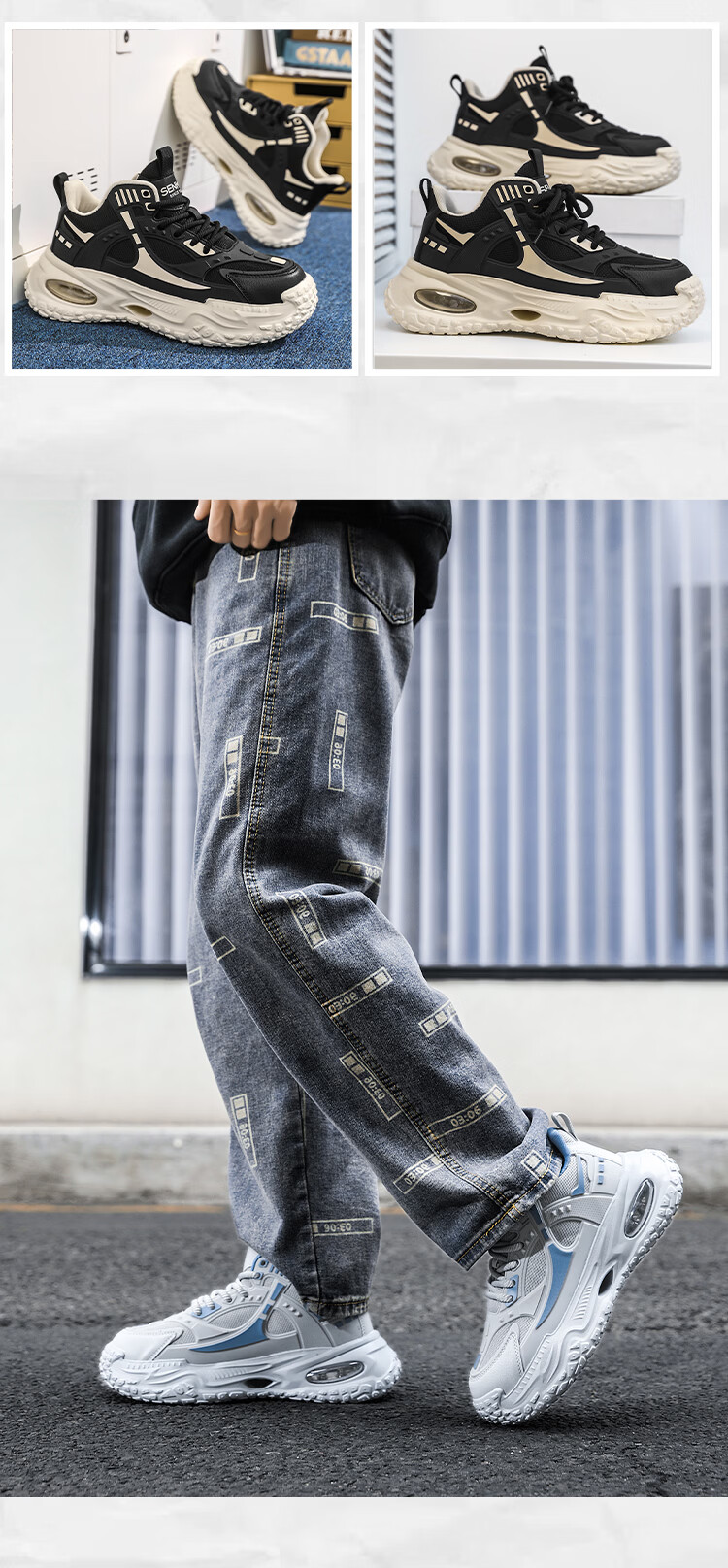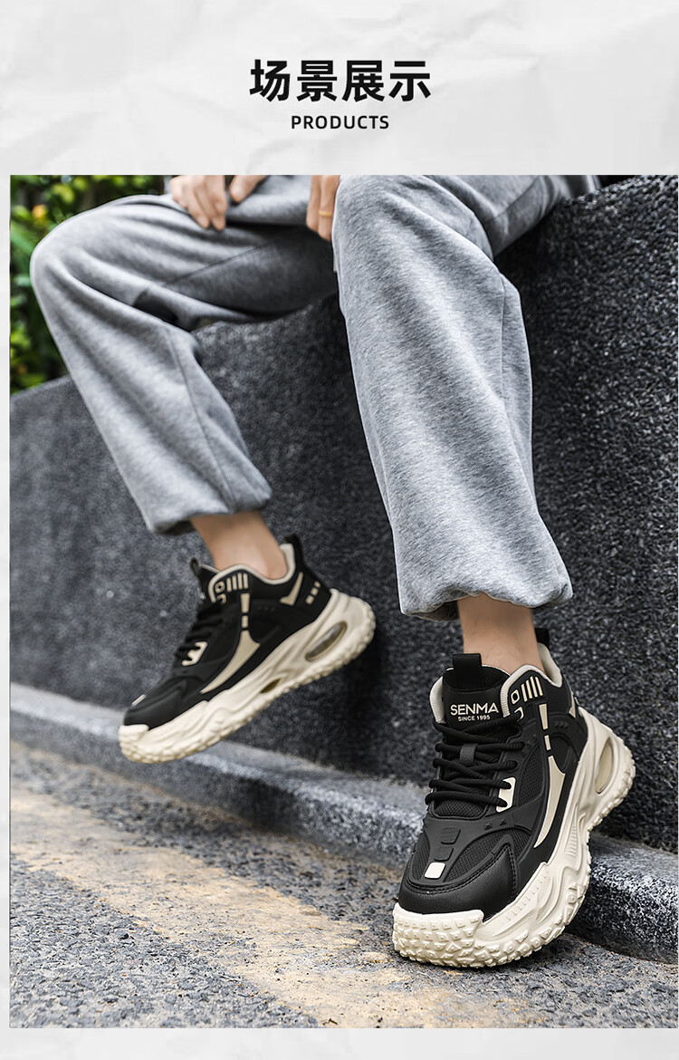 森馬男鞋2026新款冬季休闲运动跑步鞋男士防滑气垫减震厚底增高老爹鞋 黑米【基础款】 39 标准码数/现货秒发