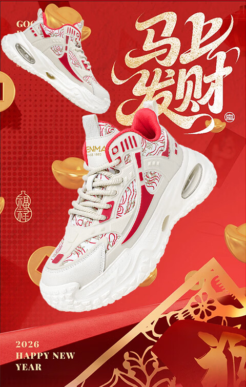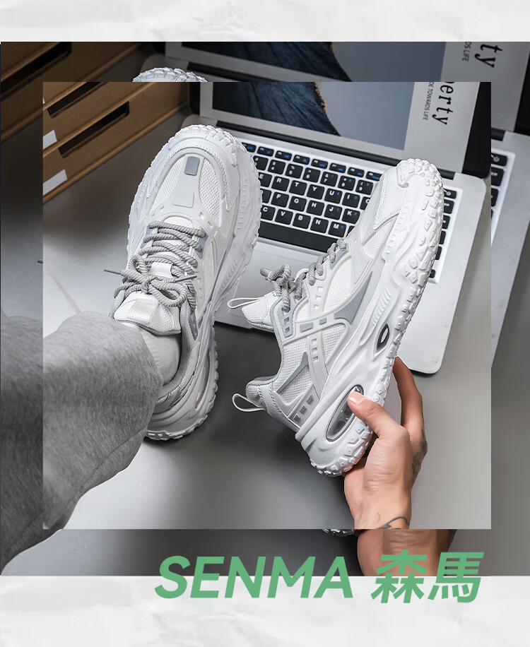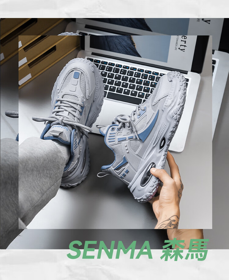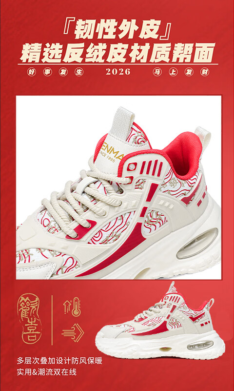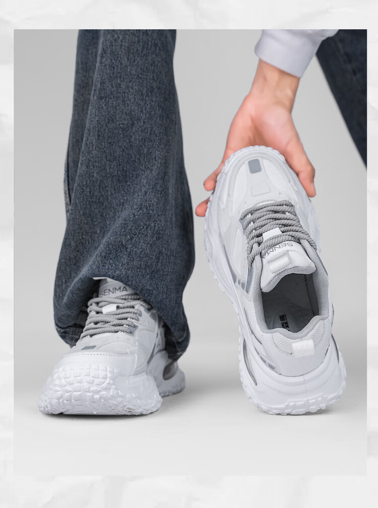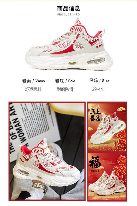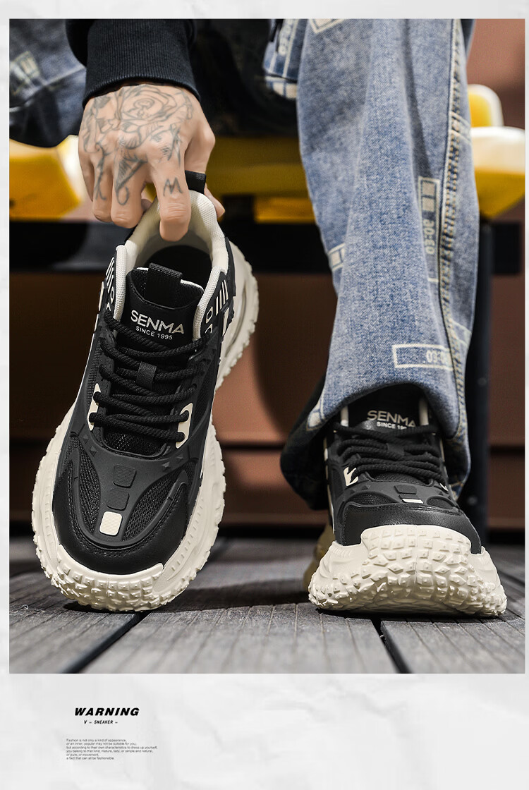 森馬男鞋2026新款冬季休闲运动跑步鞋男士防滑气垫减震厚底增高老爹鞋 黑米【基础款】 39 标准码数/现货秒发