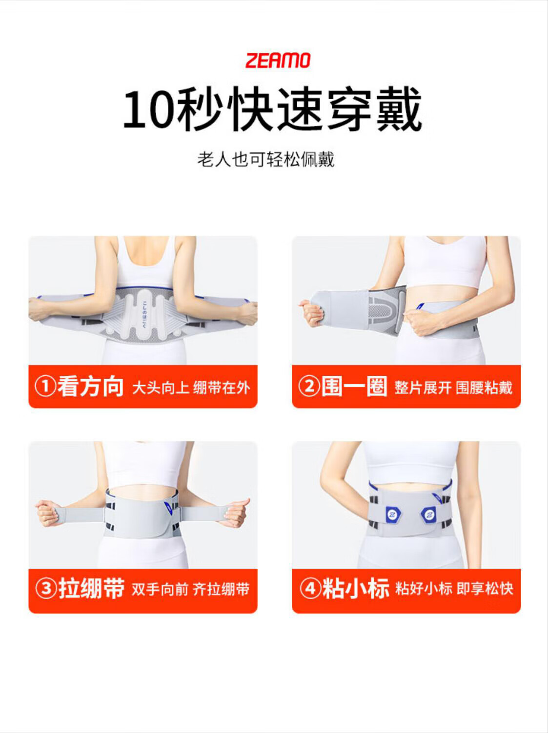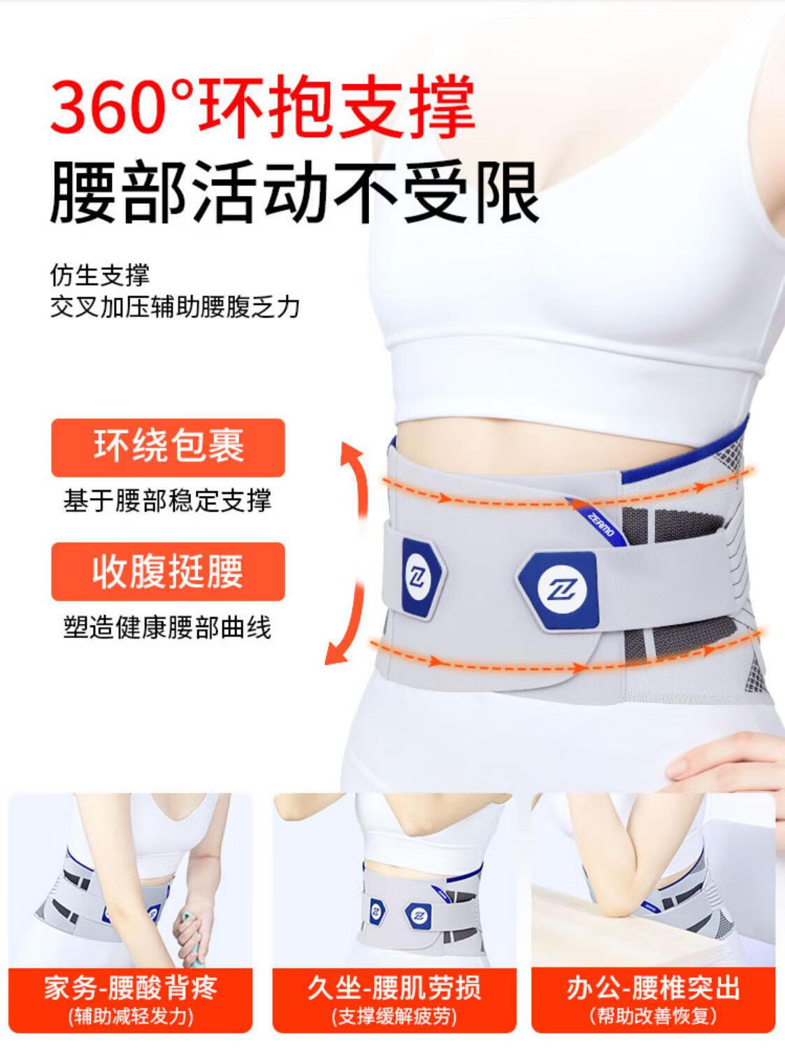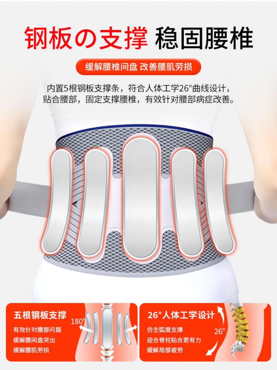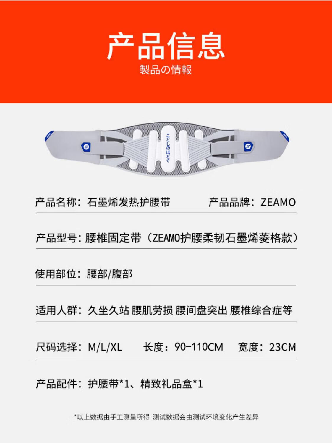 ZEAMO医用级自发热护腰带腰部支撑加热保暖热敷腰椎间盘突出男女士专用 M 适合体重80-120斤