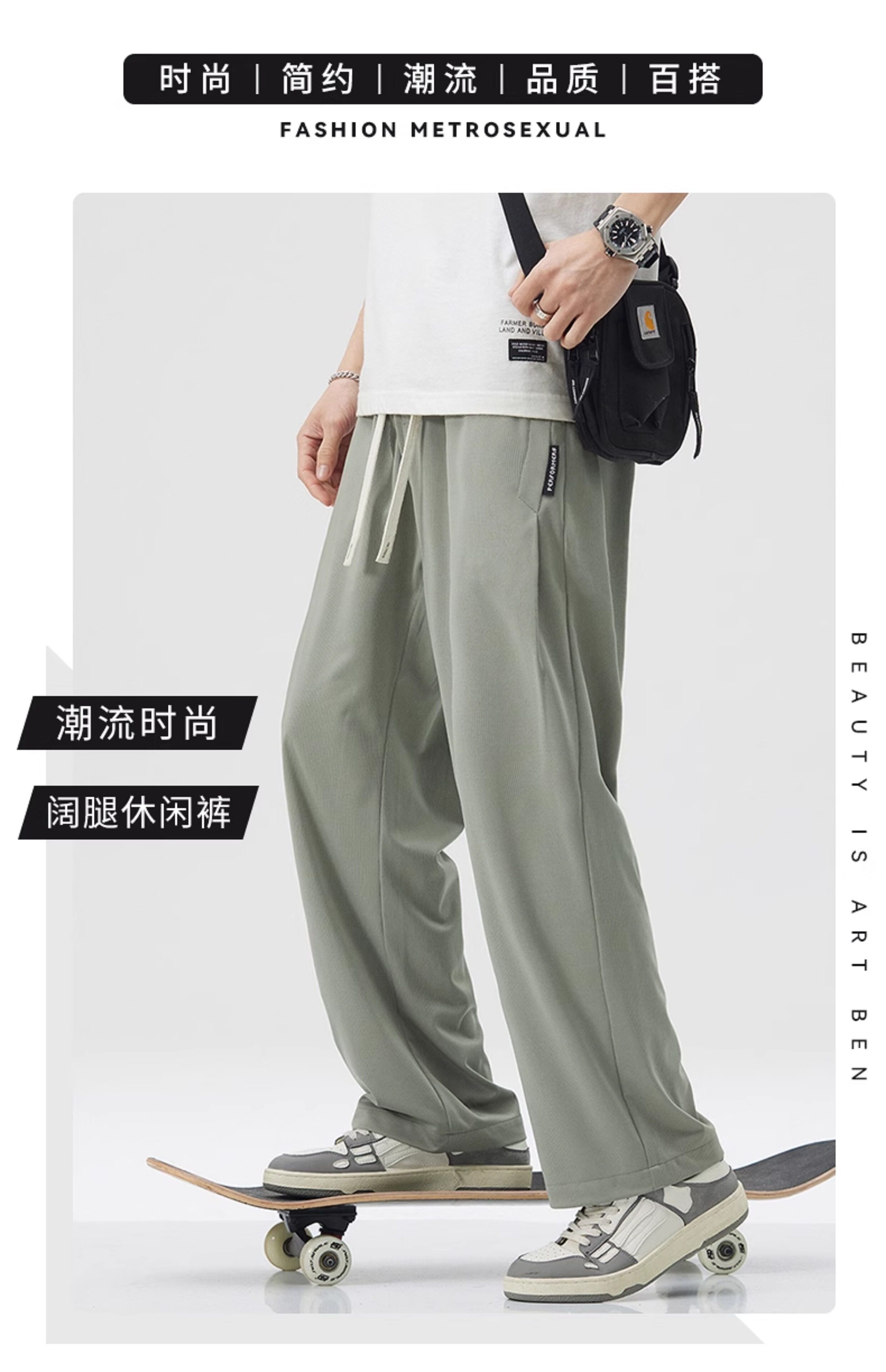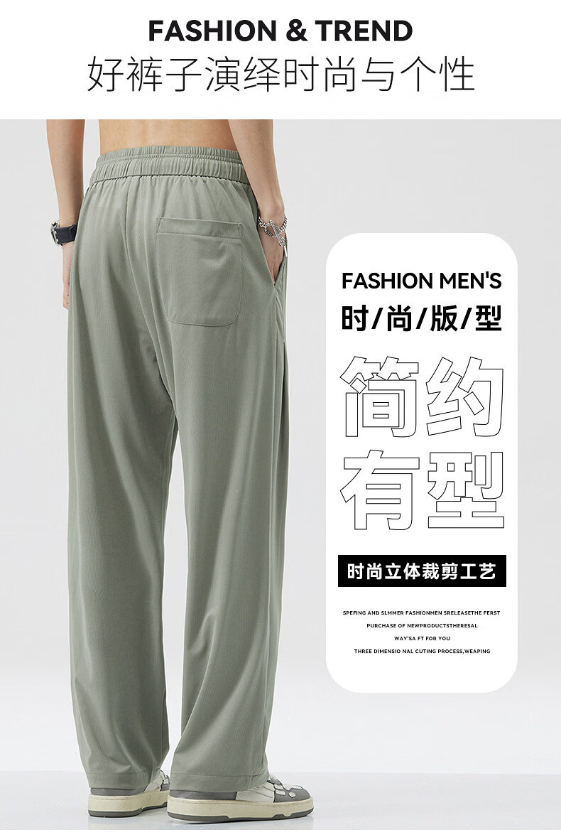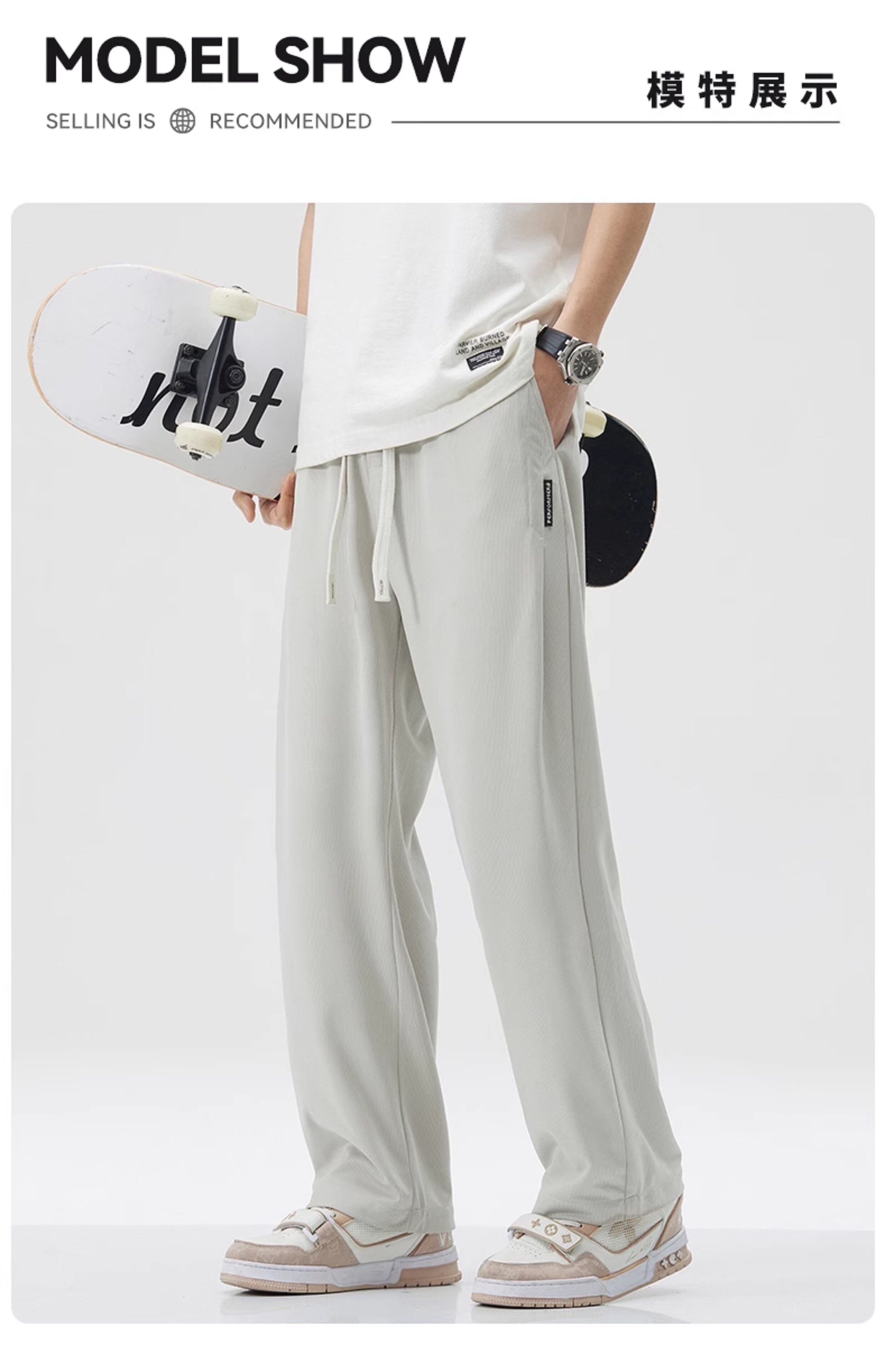 真维斯(Jeanswest)冰丝休闲裤男士2026新款夏季薄款潮牌美式宽松阔腿长裤子男 8009杏色 【官方正品】 M 建议【90-110斤】