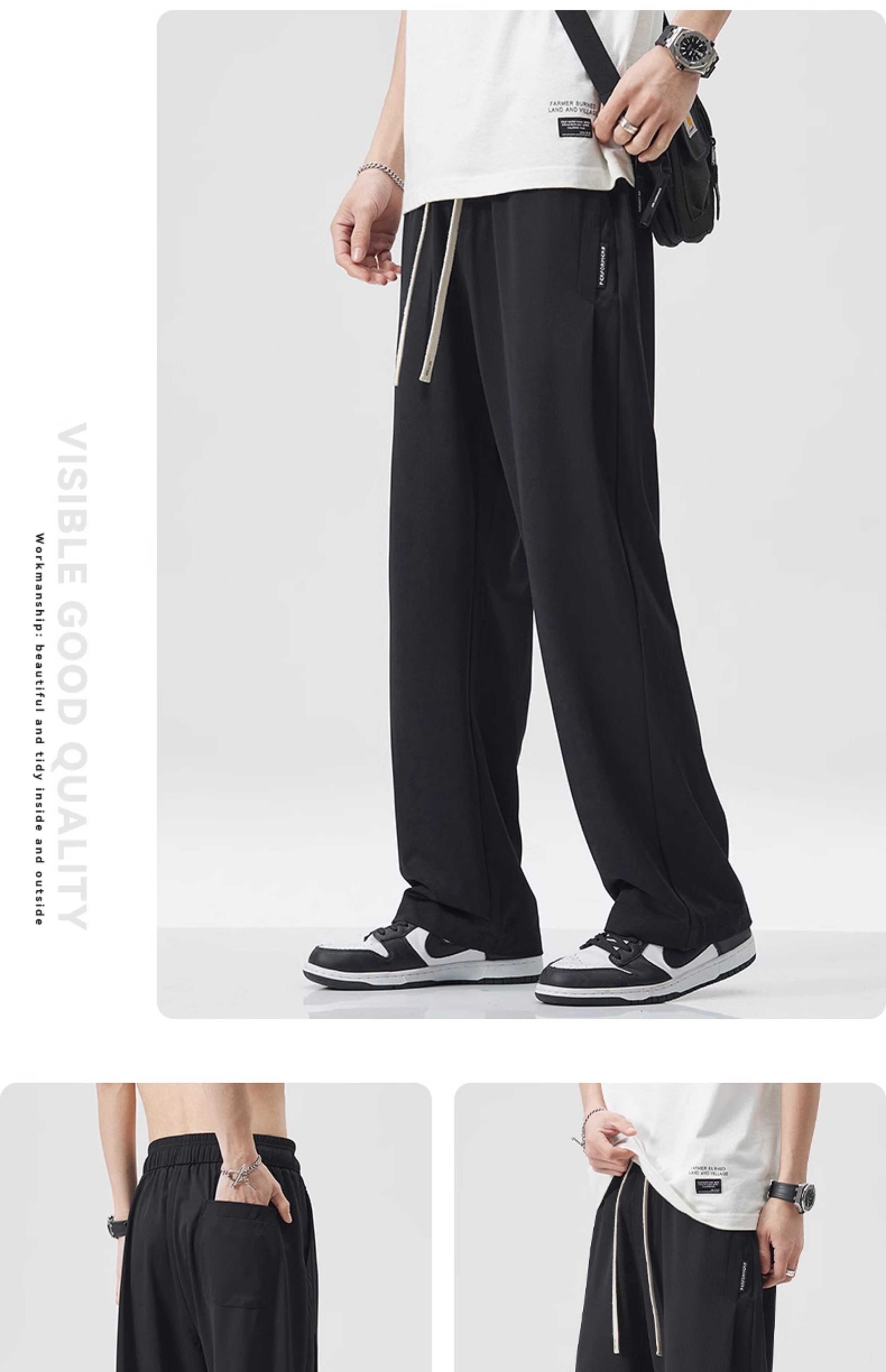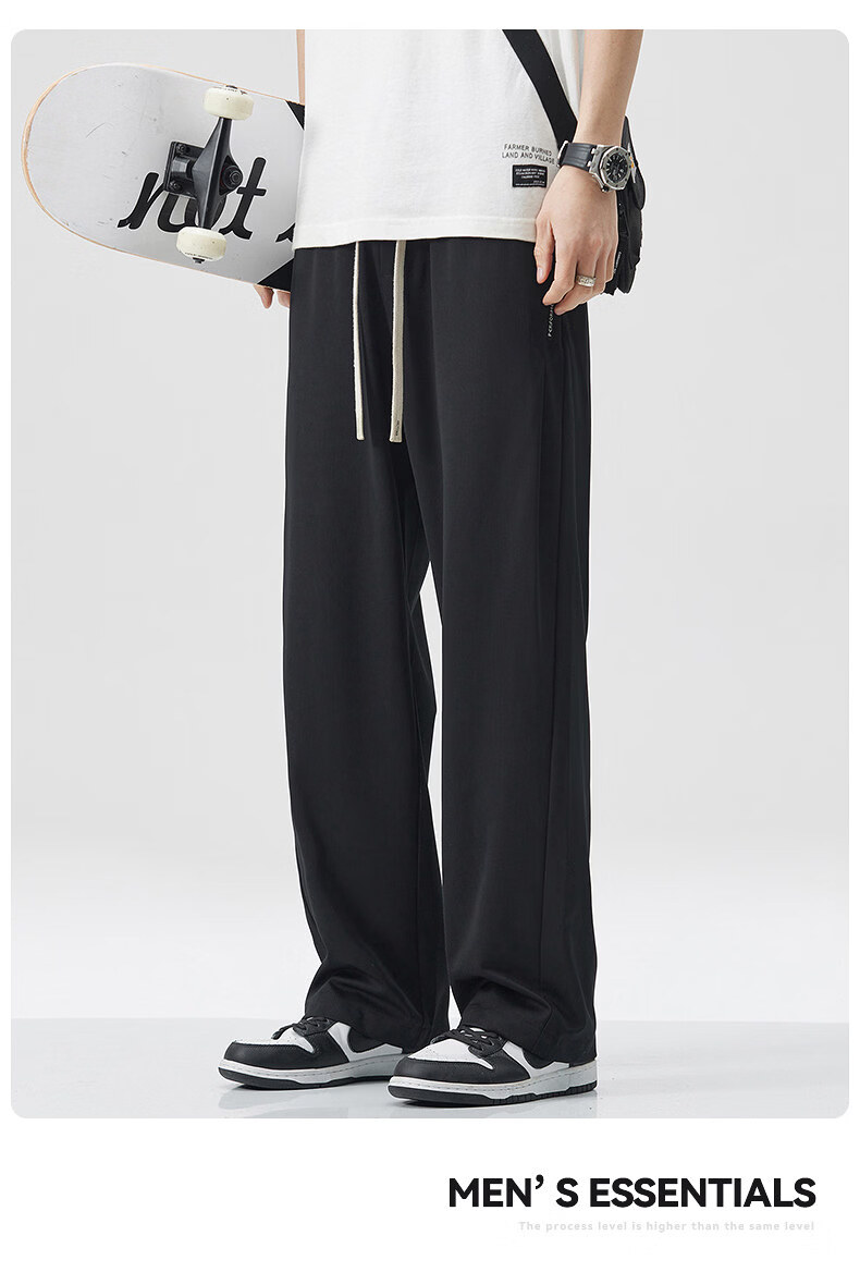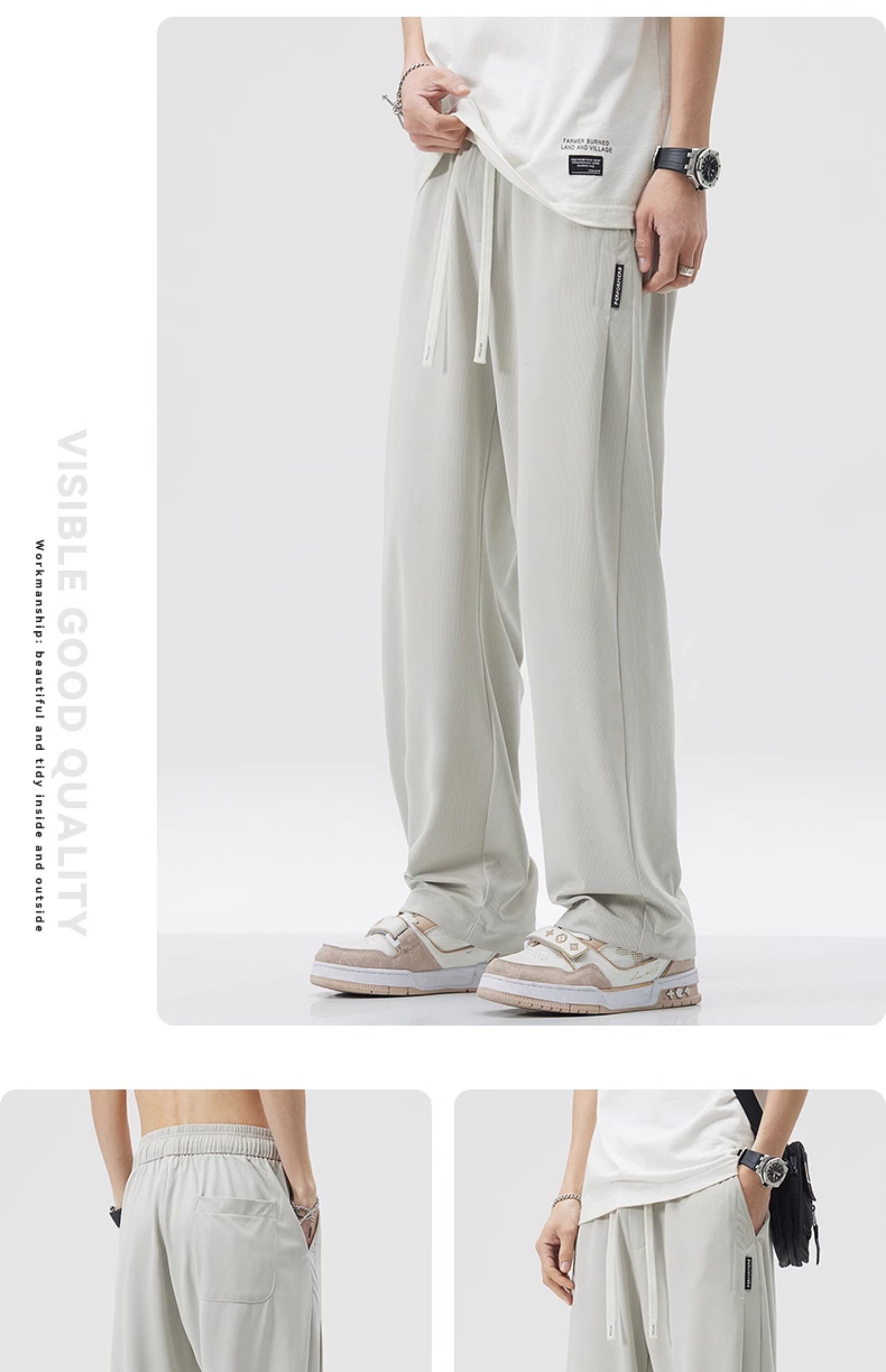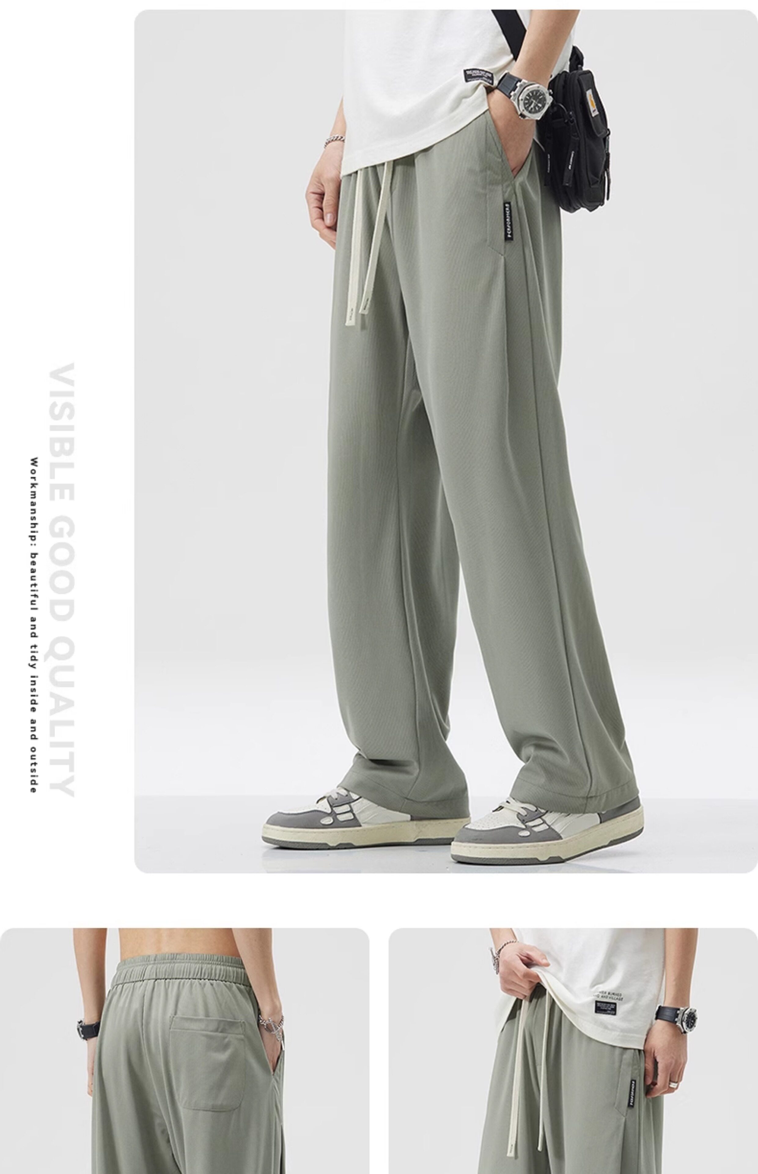 真维斯(Jeanswest)冰丝休闲裤男士2026新款夏季薄款潮牌美式宽松阔腿长裤子男 8009杏色 【官方正品】 M 建议【90-110斤】