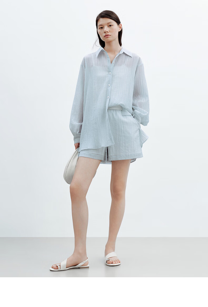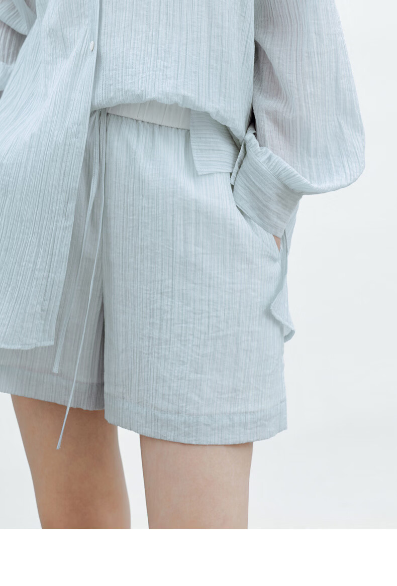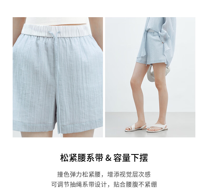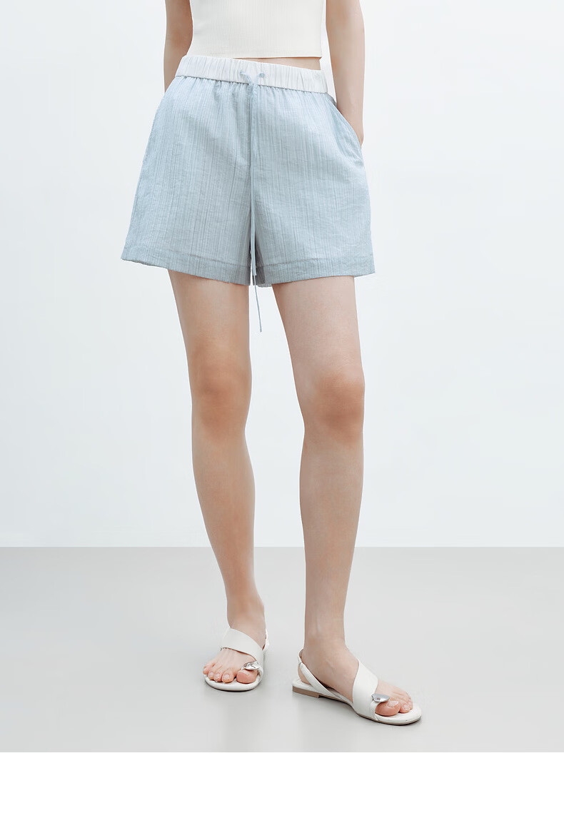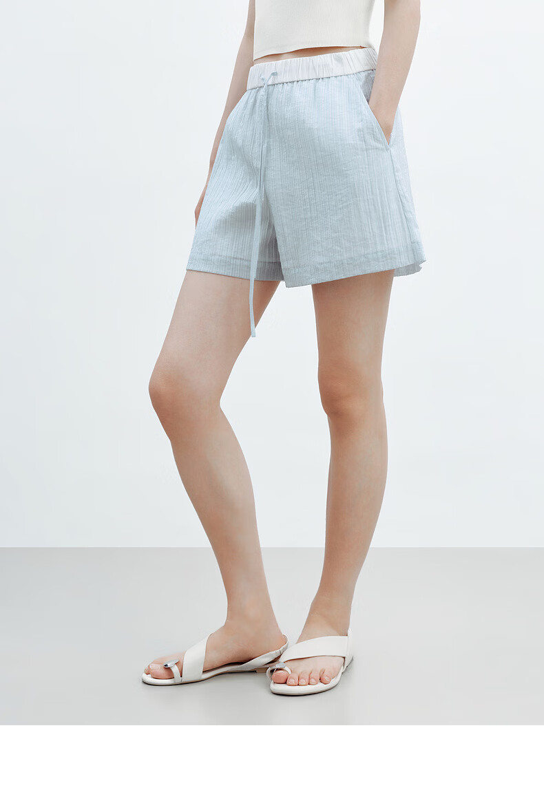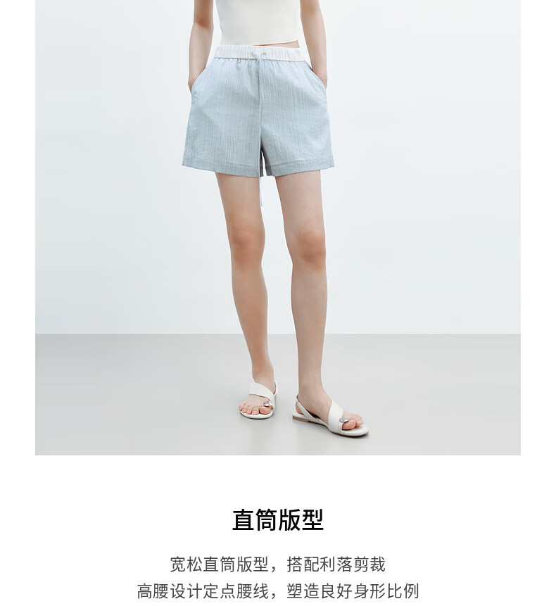H's【莱赛尔】蓝白条纹短裤女26夏季新款高级设计感清新百搭裤子 蓝白条纹 S