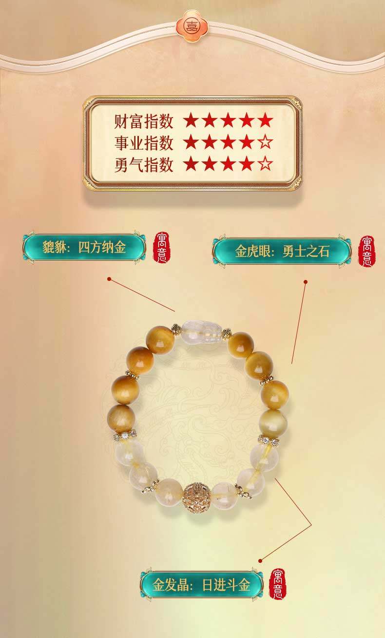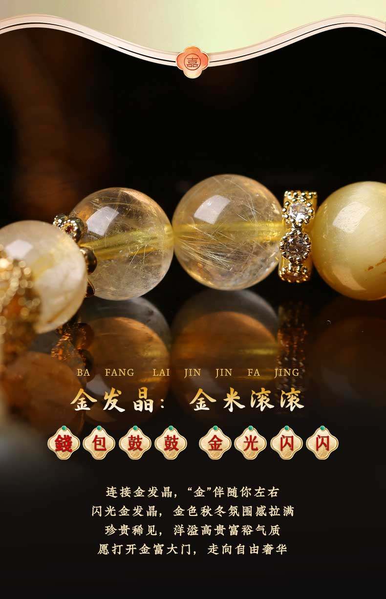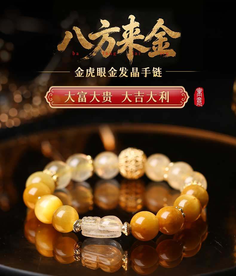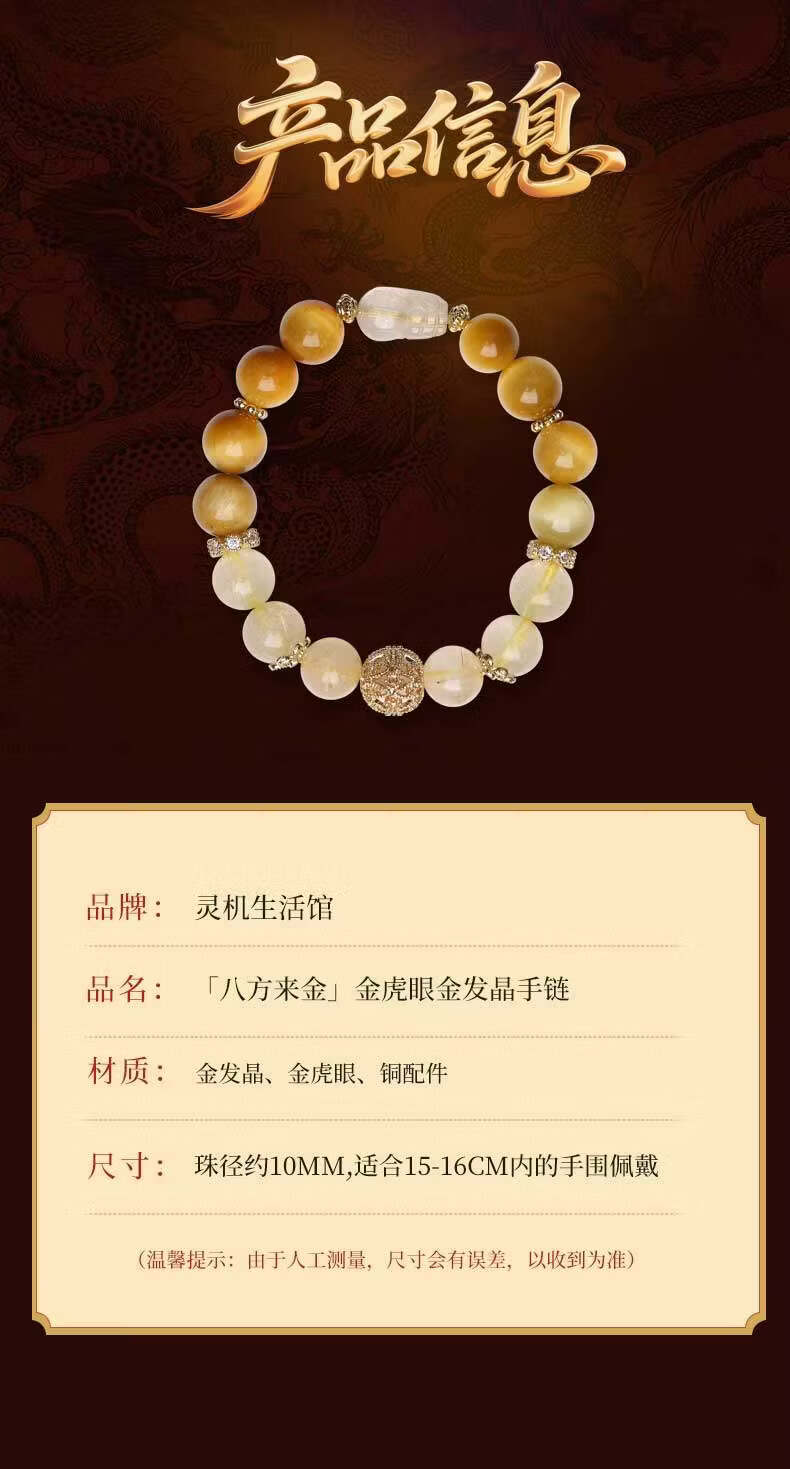 灵机生活馆麦玲玲代言2026款招财金虎眼金发晶手链手串饰品新年礼物 【招财】八方来金金虎眼金发晶手链