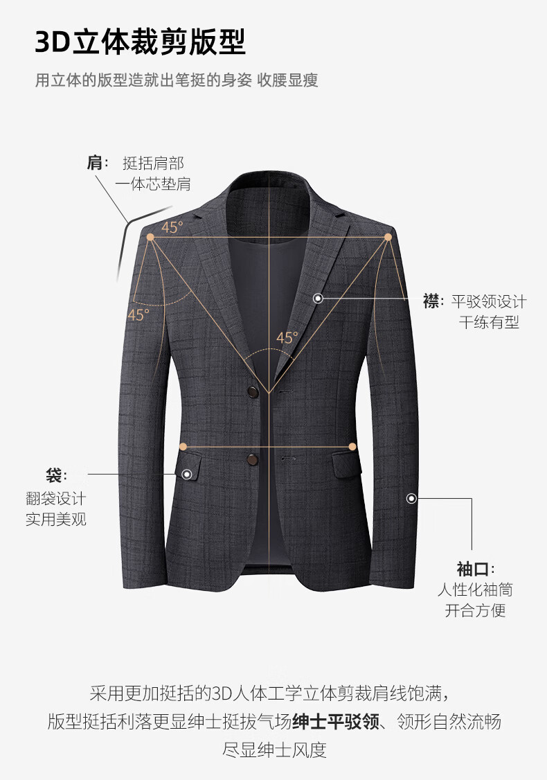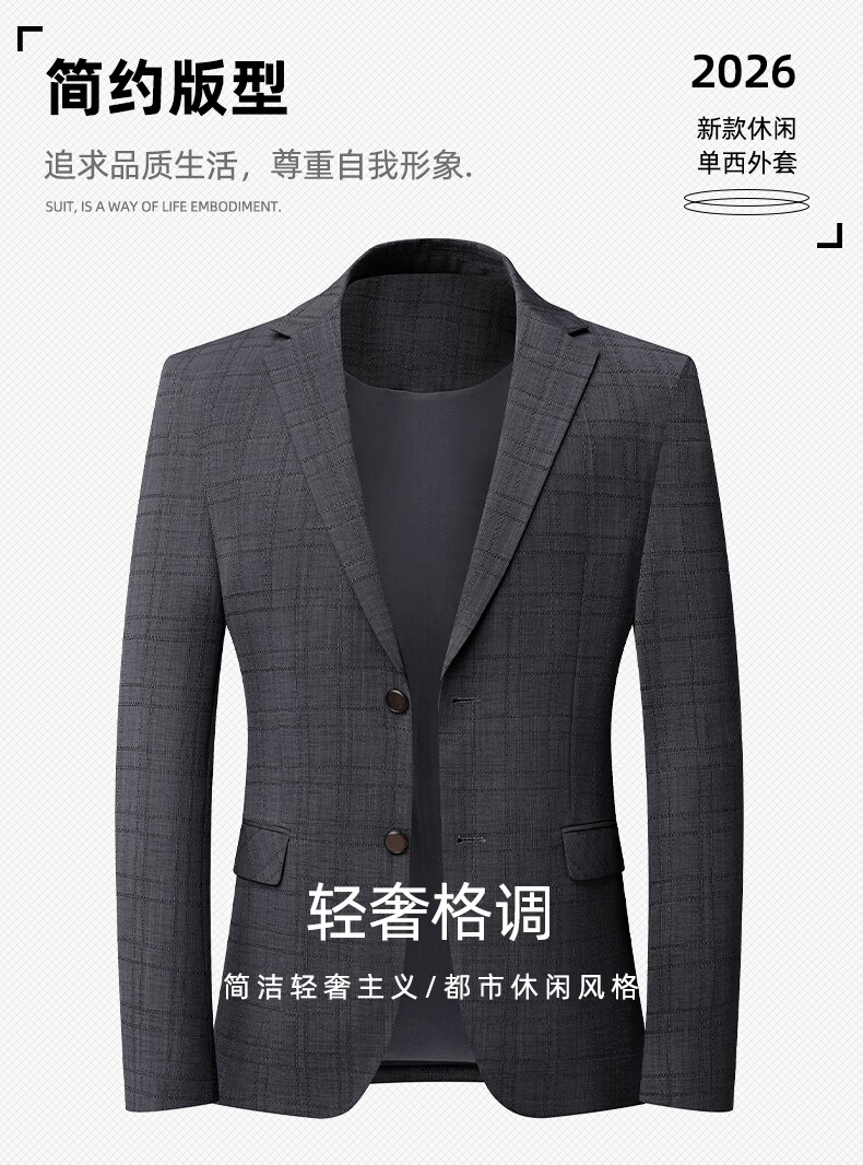 SHANSHAN杉杉西服2026春季新款商务休闲平驳领西装外套薄款老钱风上衣男 咖色 46 /170