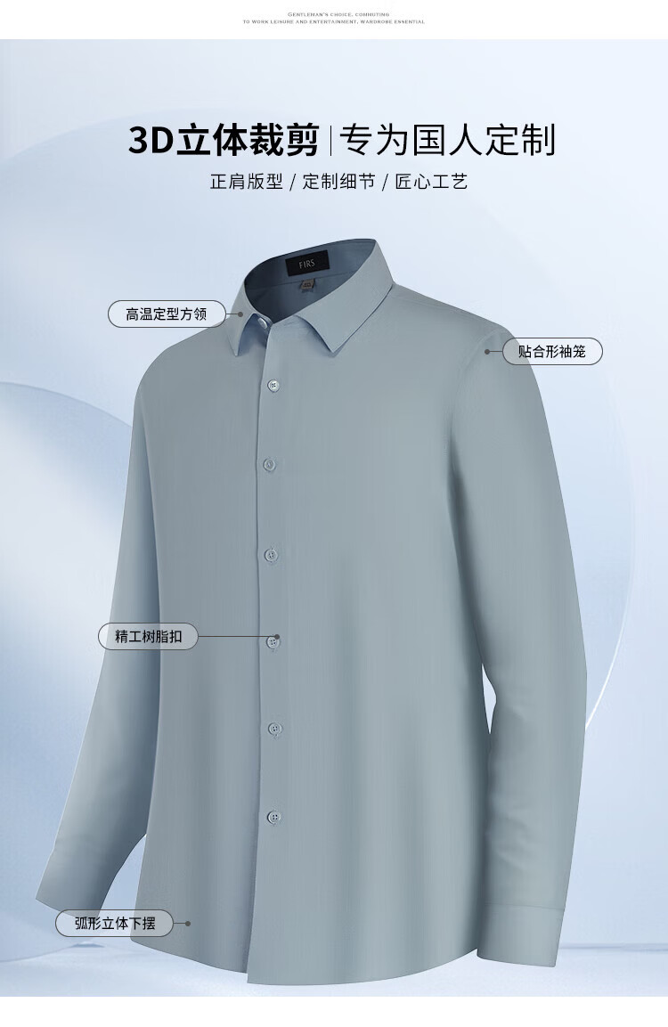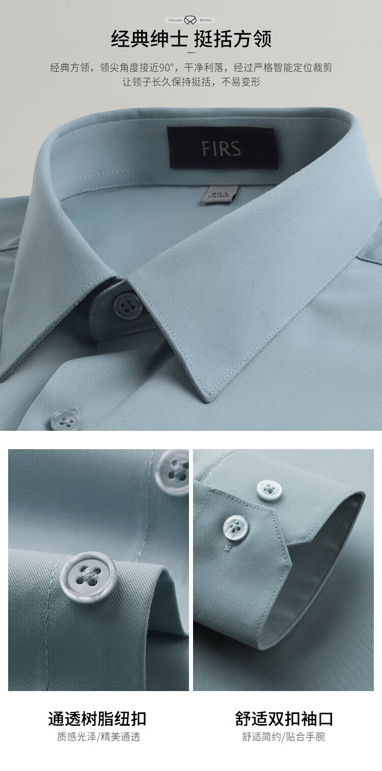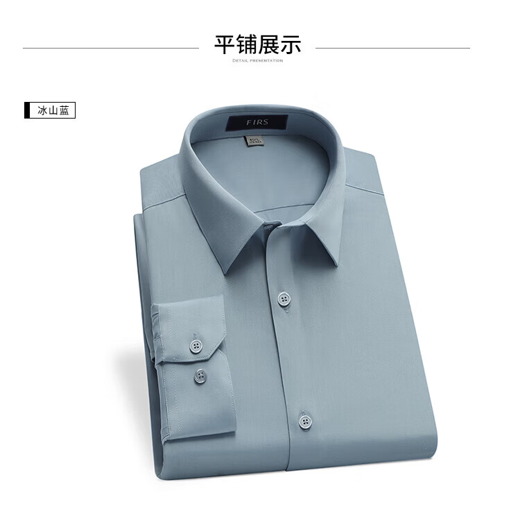 杉杉(FIRS)长袖衬衫男四季款商务休闲上衣抗皱易打理透气白色衬衣男装 冰山蓝 39 (170) 170/88A
