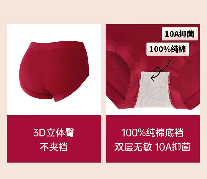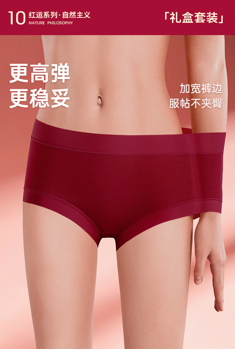 真维斯(Jeanswest)女士内裤女生长绒棉透气10A抑菌裆中腰大码宽松三角短裤头 【D组】纯棉6条装 M 80-100斤
