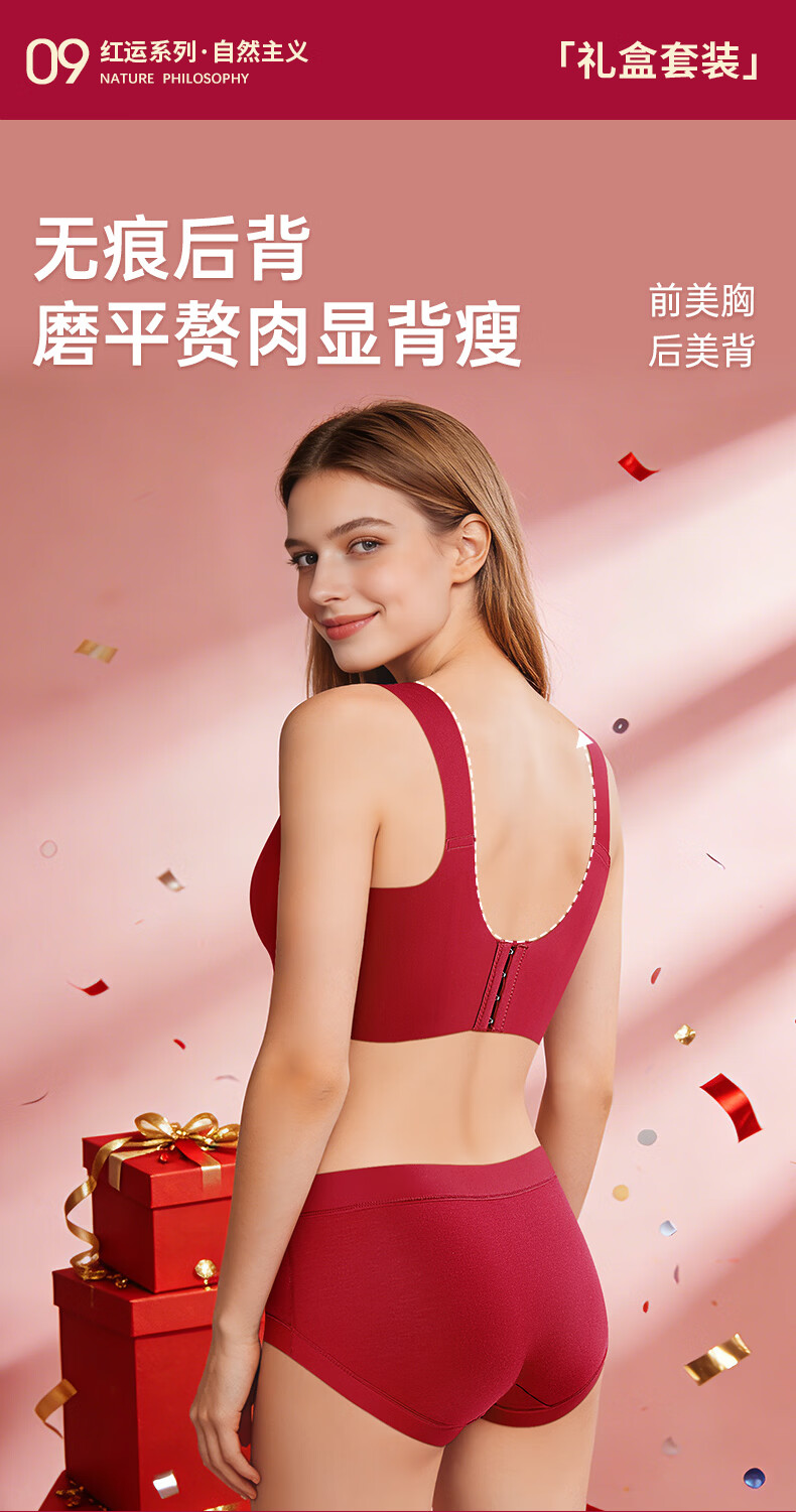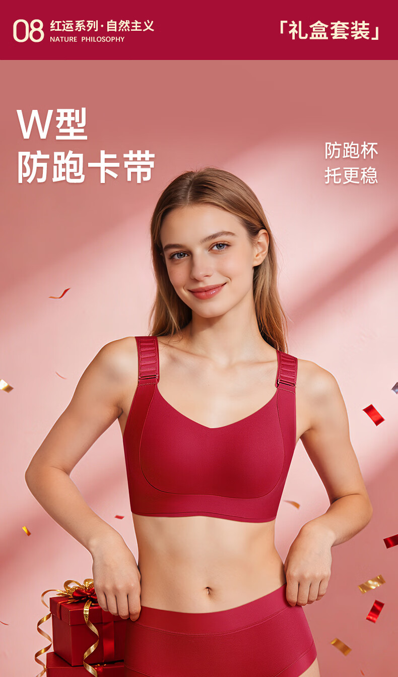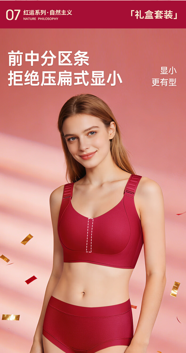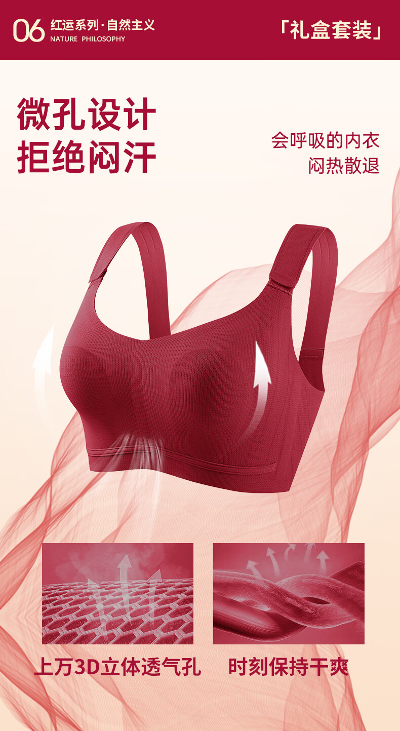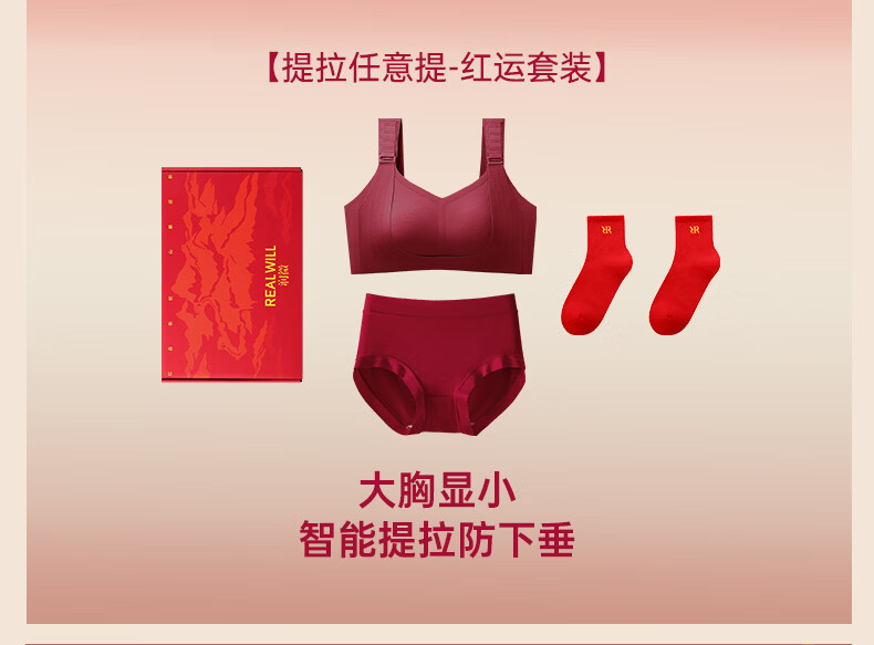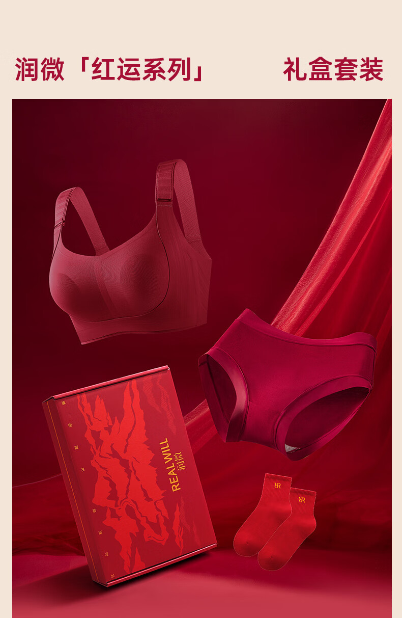 润微任意提6档调节内衣女本命年婚礼必备鸿运套装 流光红 L (80BC)