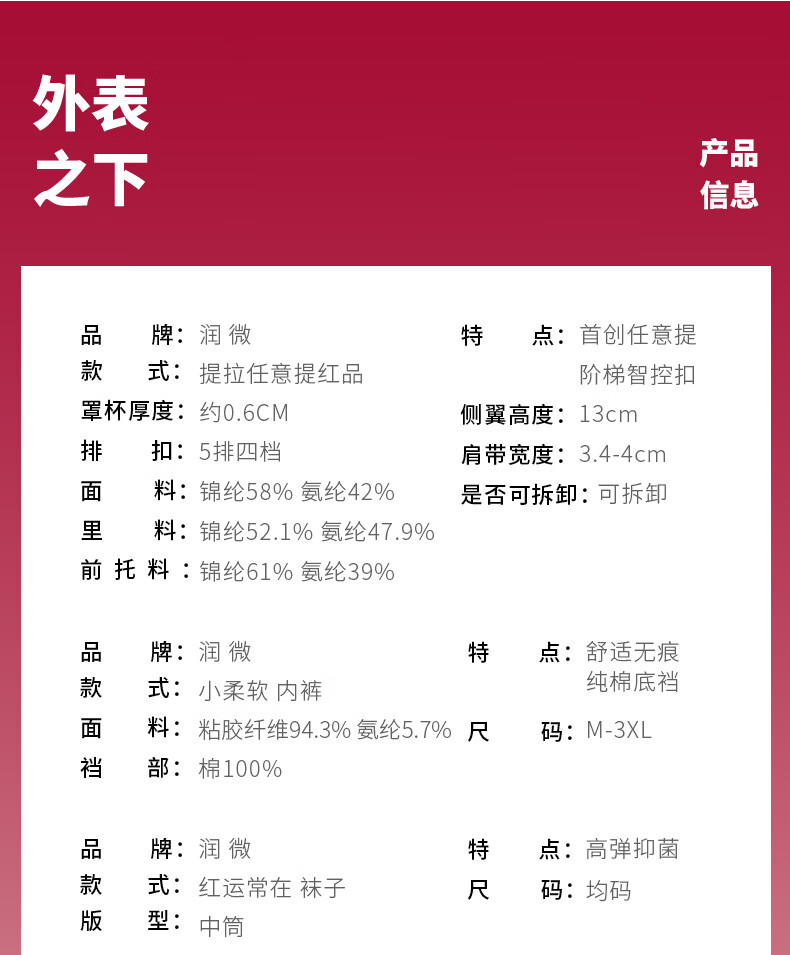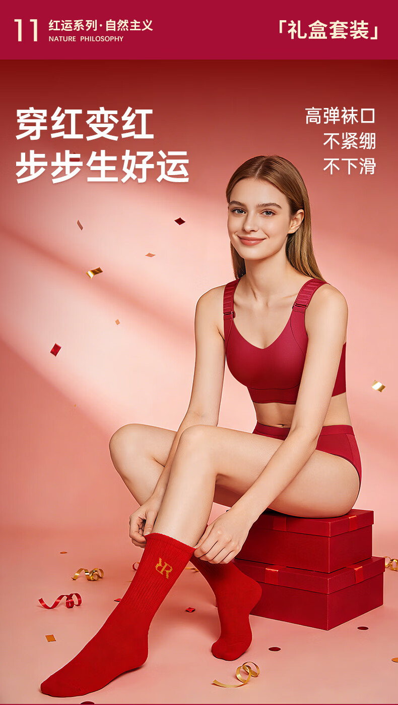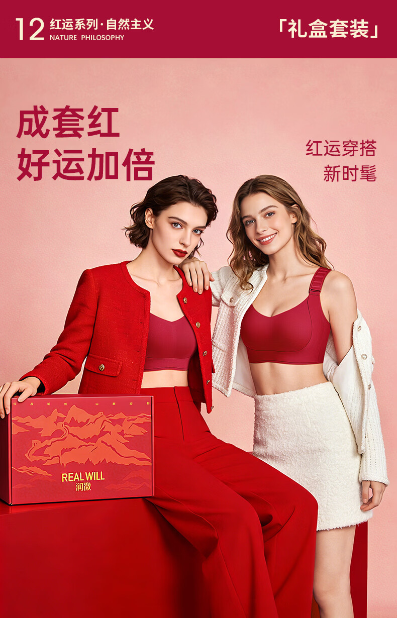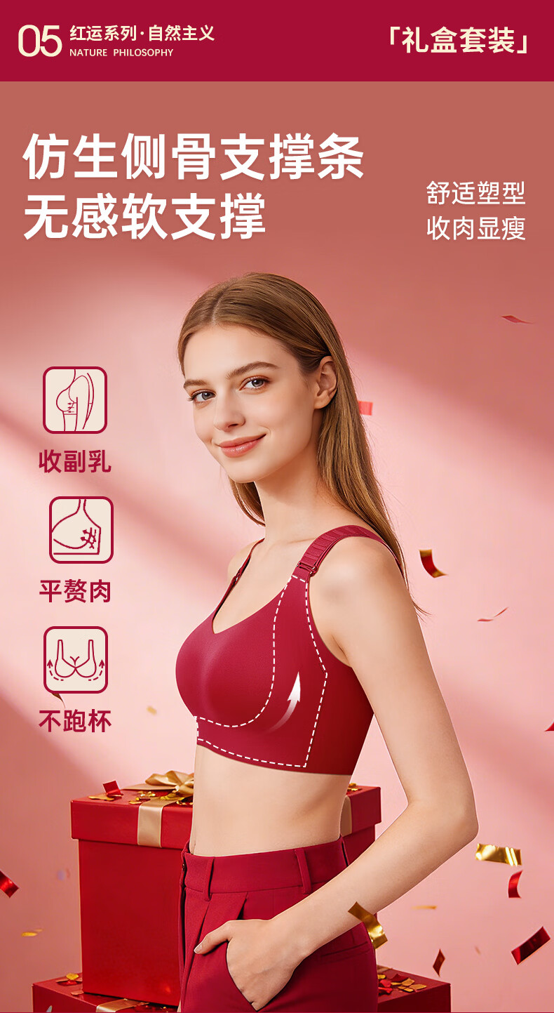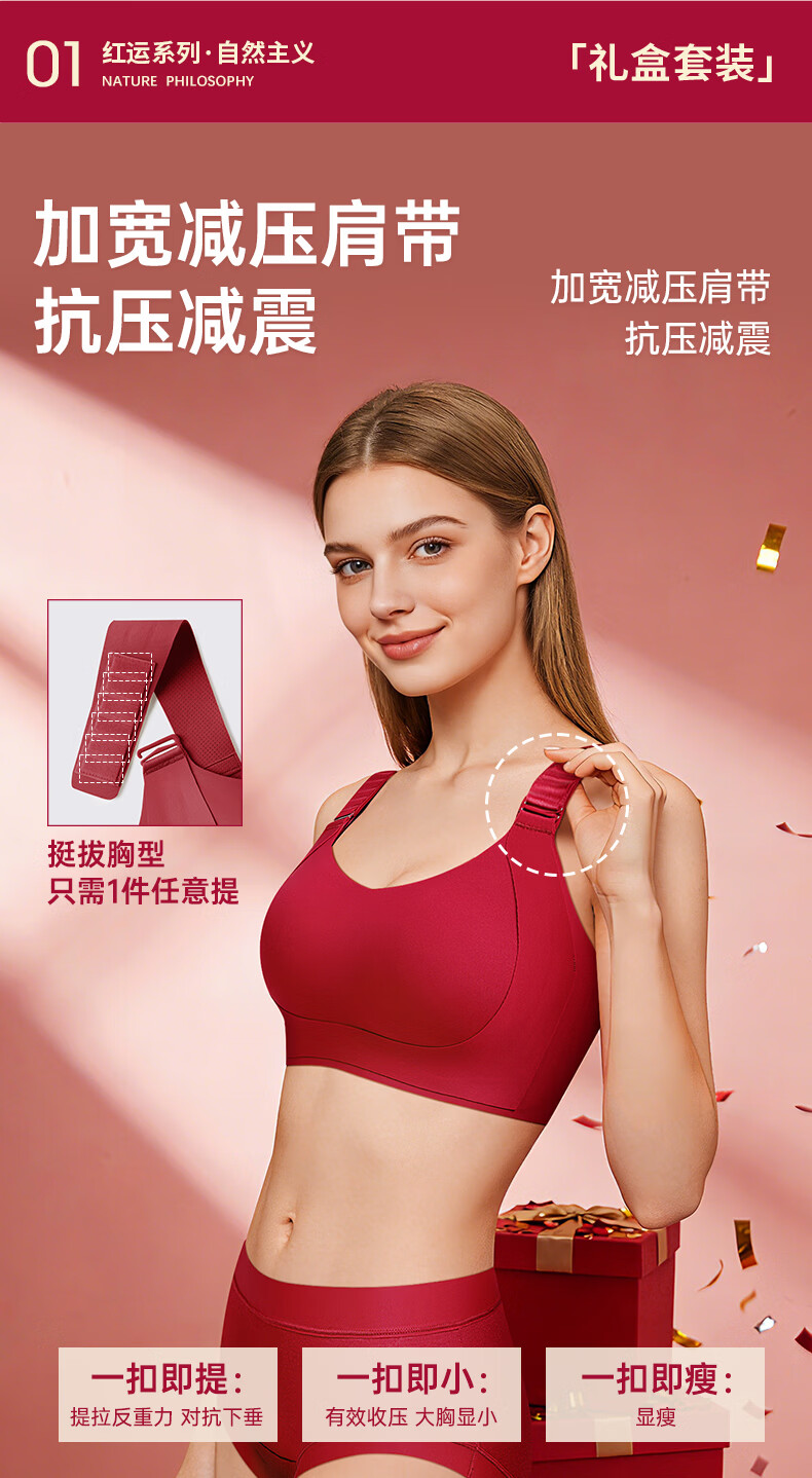 润微任意提6档调节内衣女本命年婚礼必备鸿运套装 流光红 L (80BC)