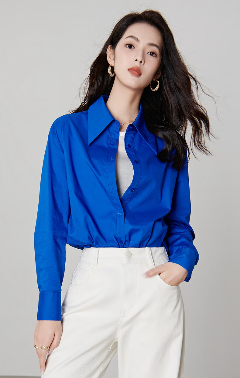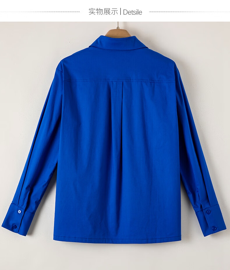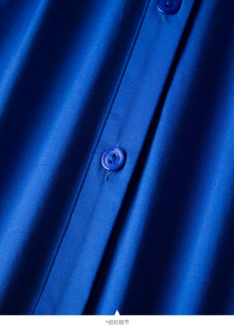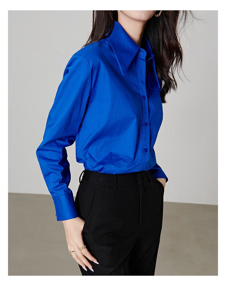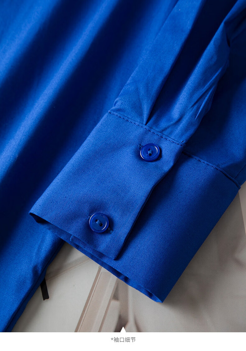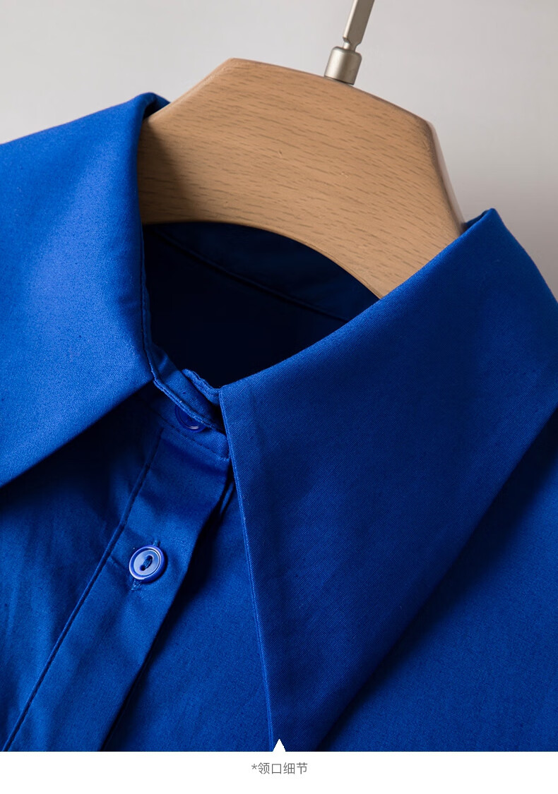 晚白【新品】克莱因蓝显白棉质衬衫女2026春款时尚减龄韩系大码衬衣 深蓝色 S