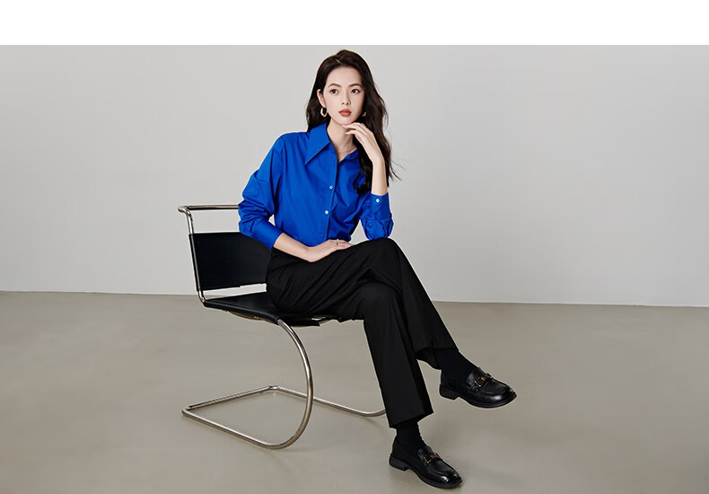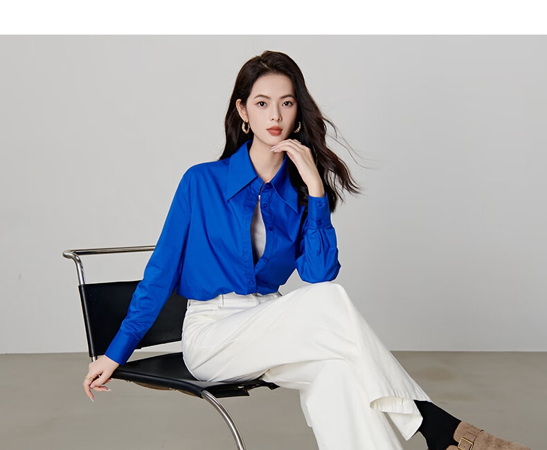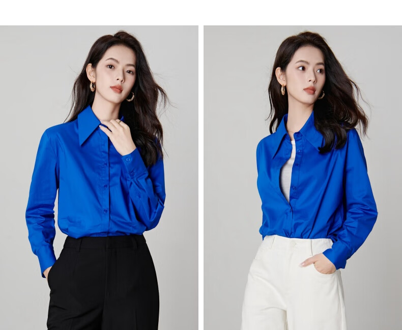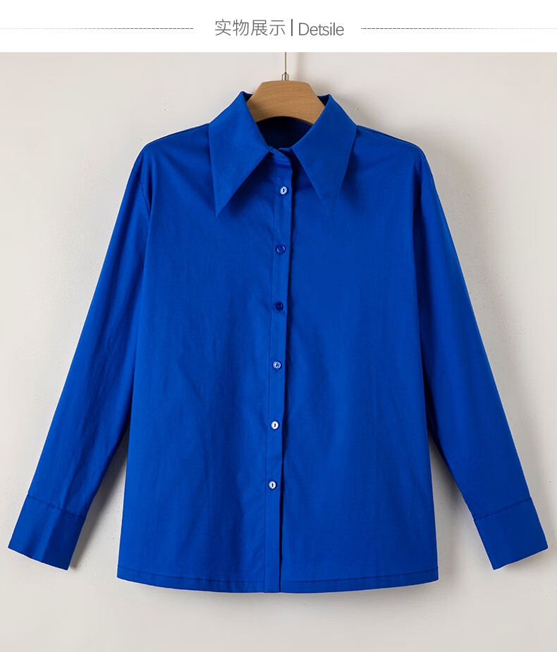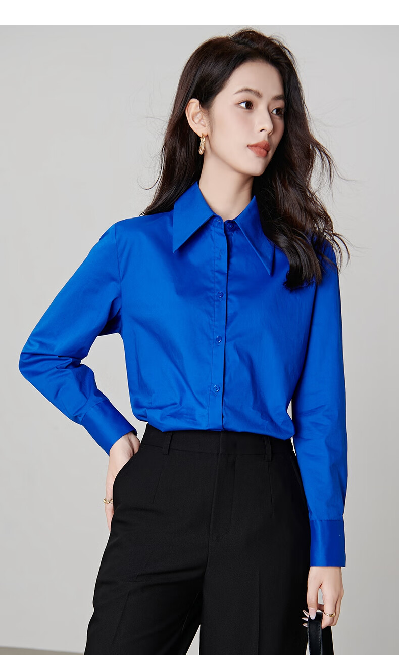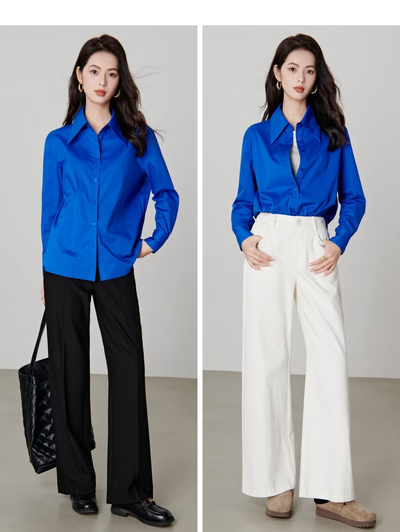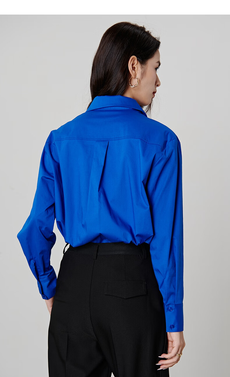 晚白【新品】克莱因蓝显白棉质衬衫女2026春款时尚减龄韩系大码衬衣 深蓝色 S
