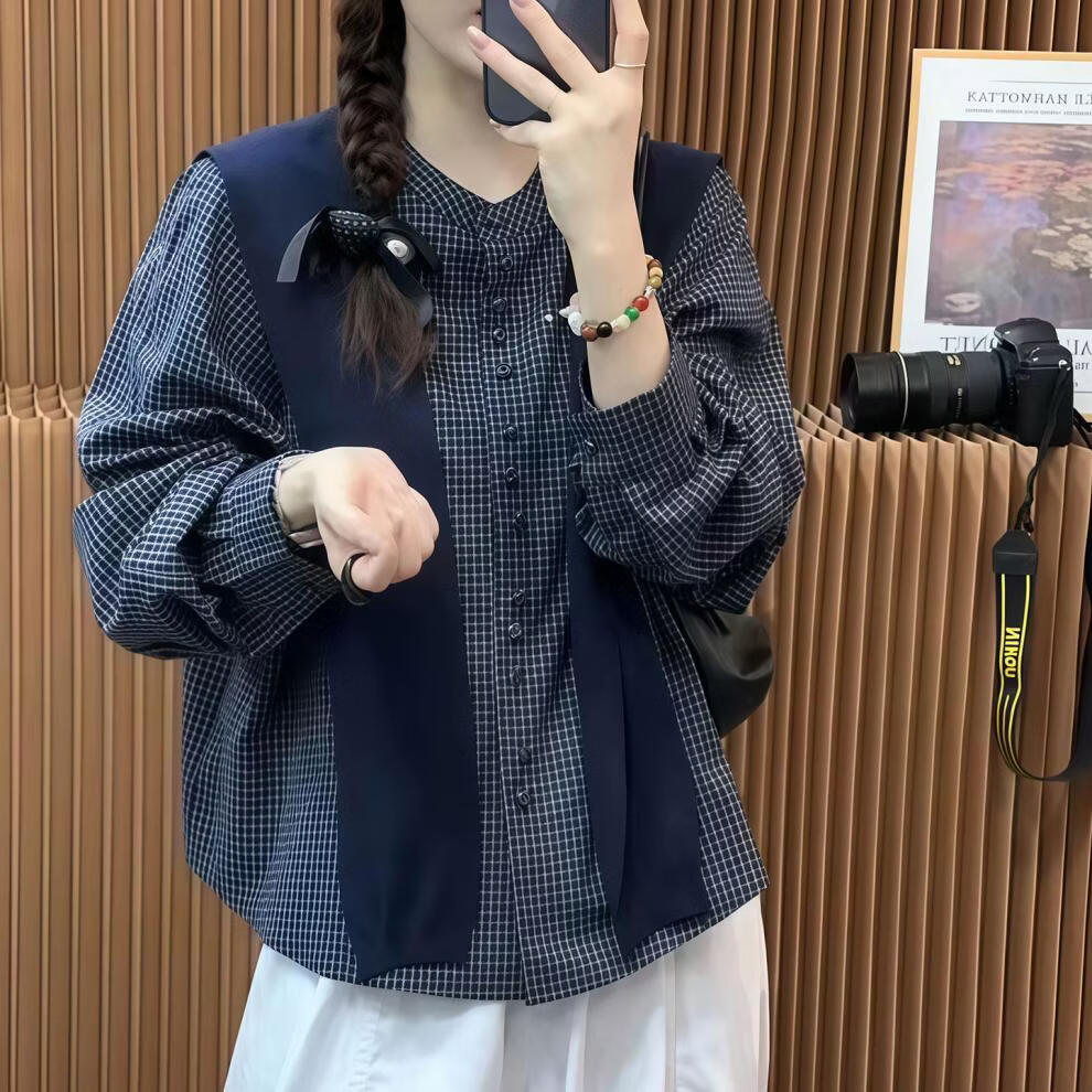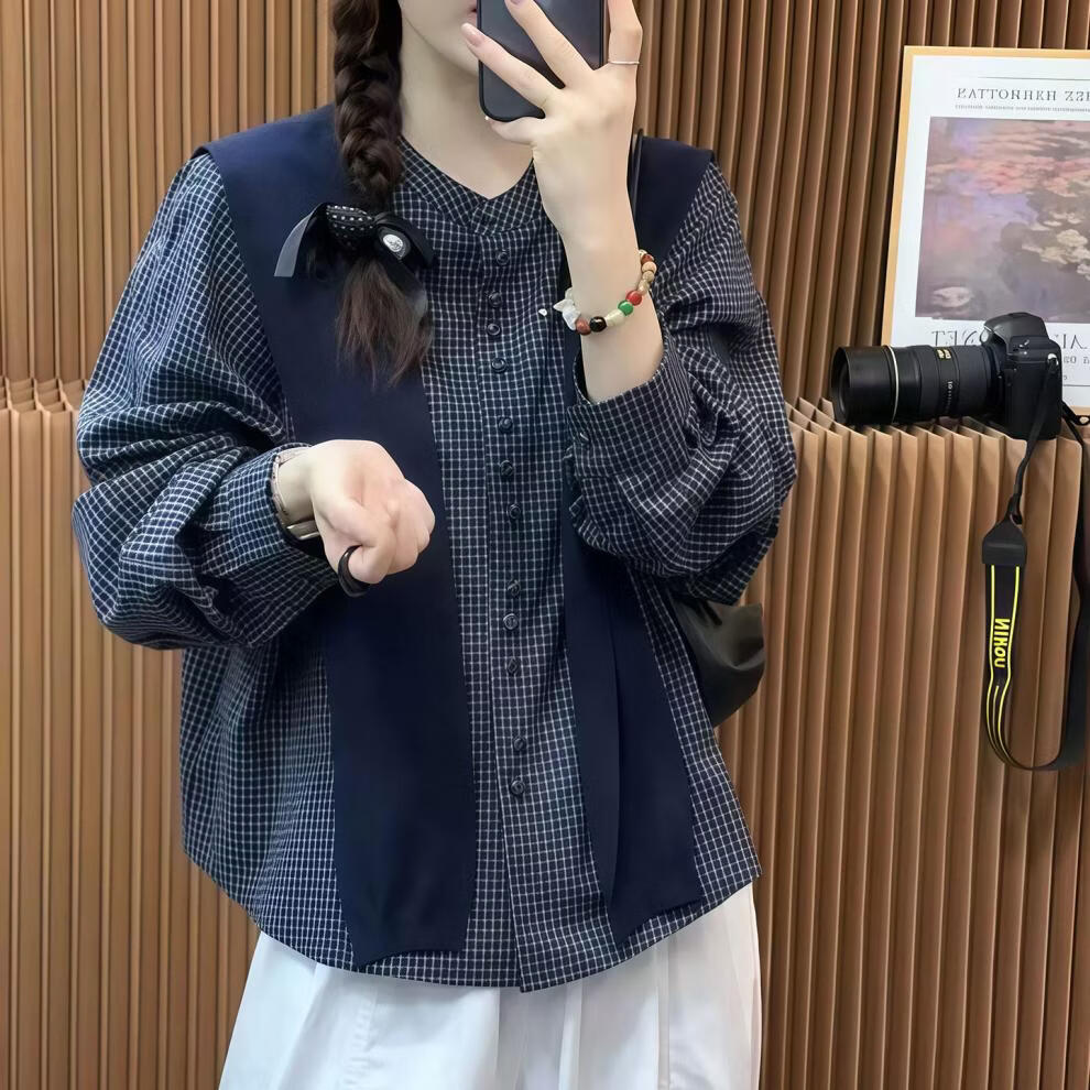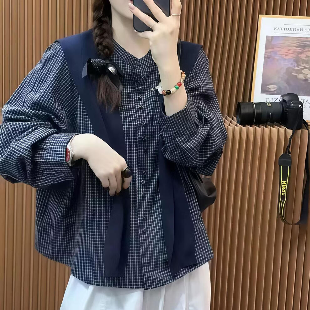 MODX2026早秋新款韩系时尚减龄披肩长袖格子衬衫女款气质休闲衬衣上衣 蓝色格子+披肩 【原版】 XL 130-145斤