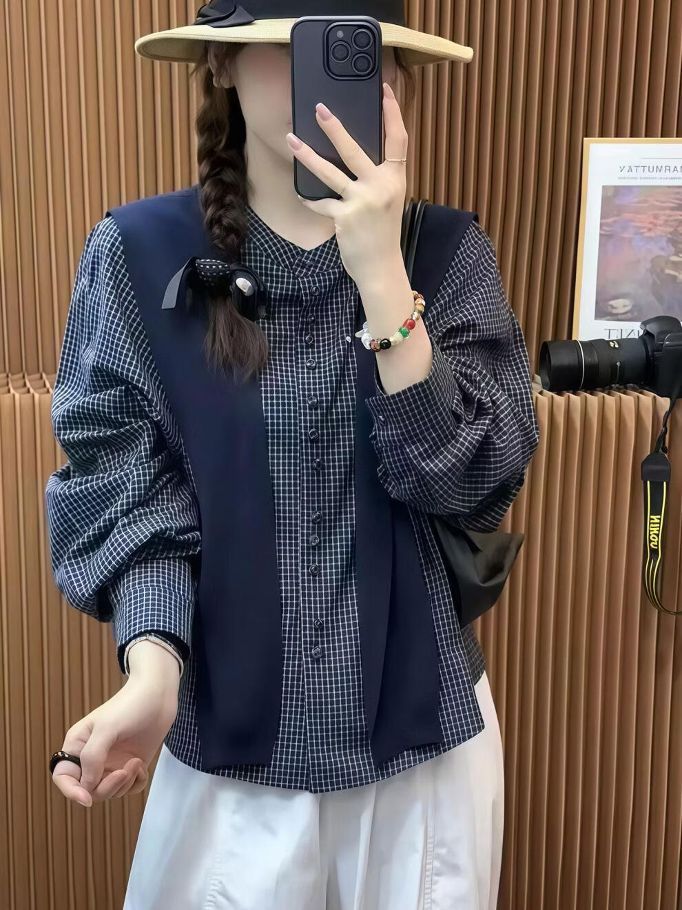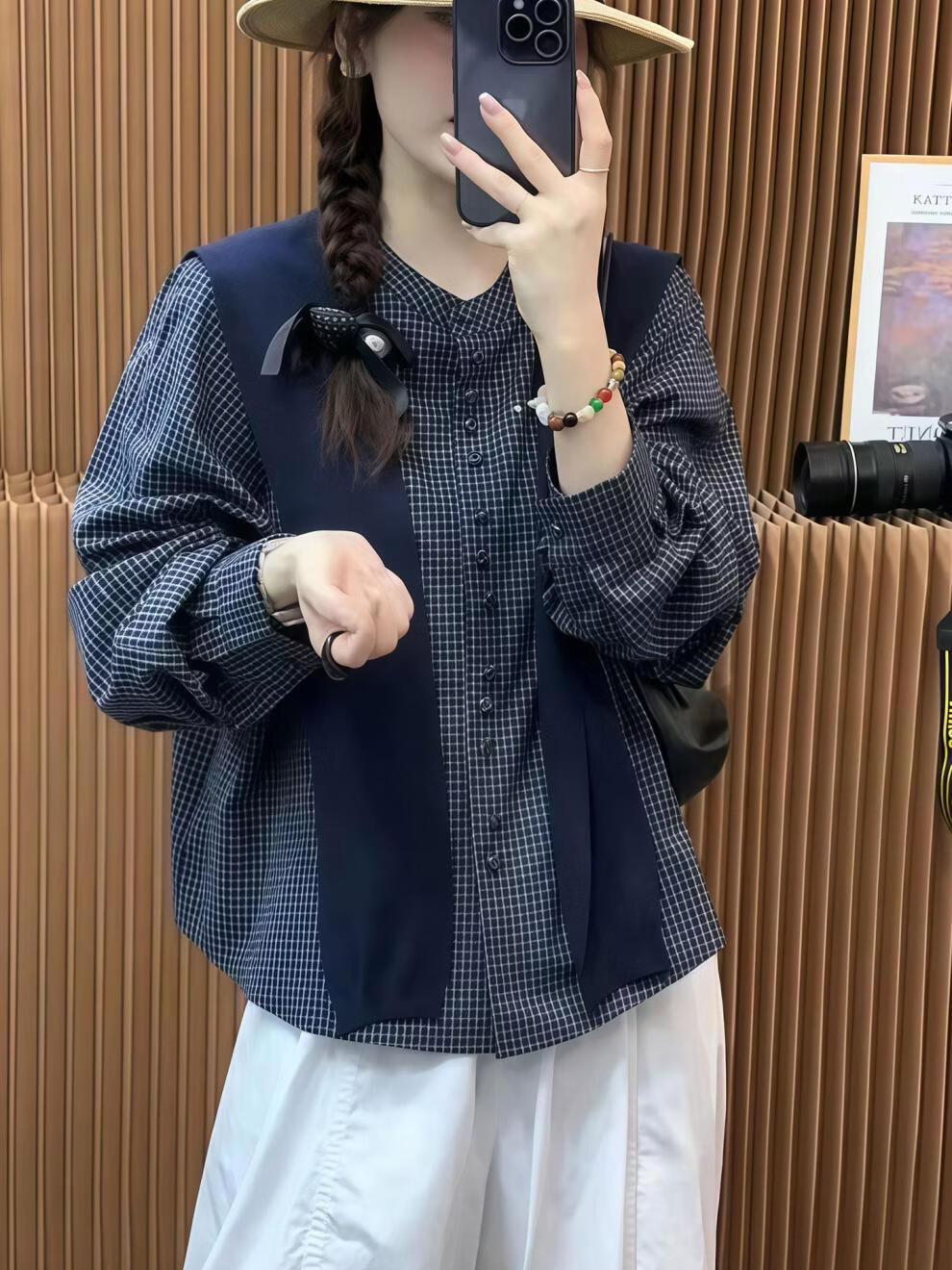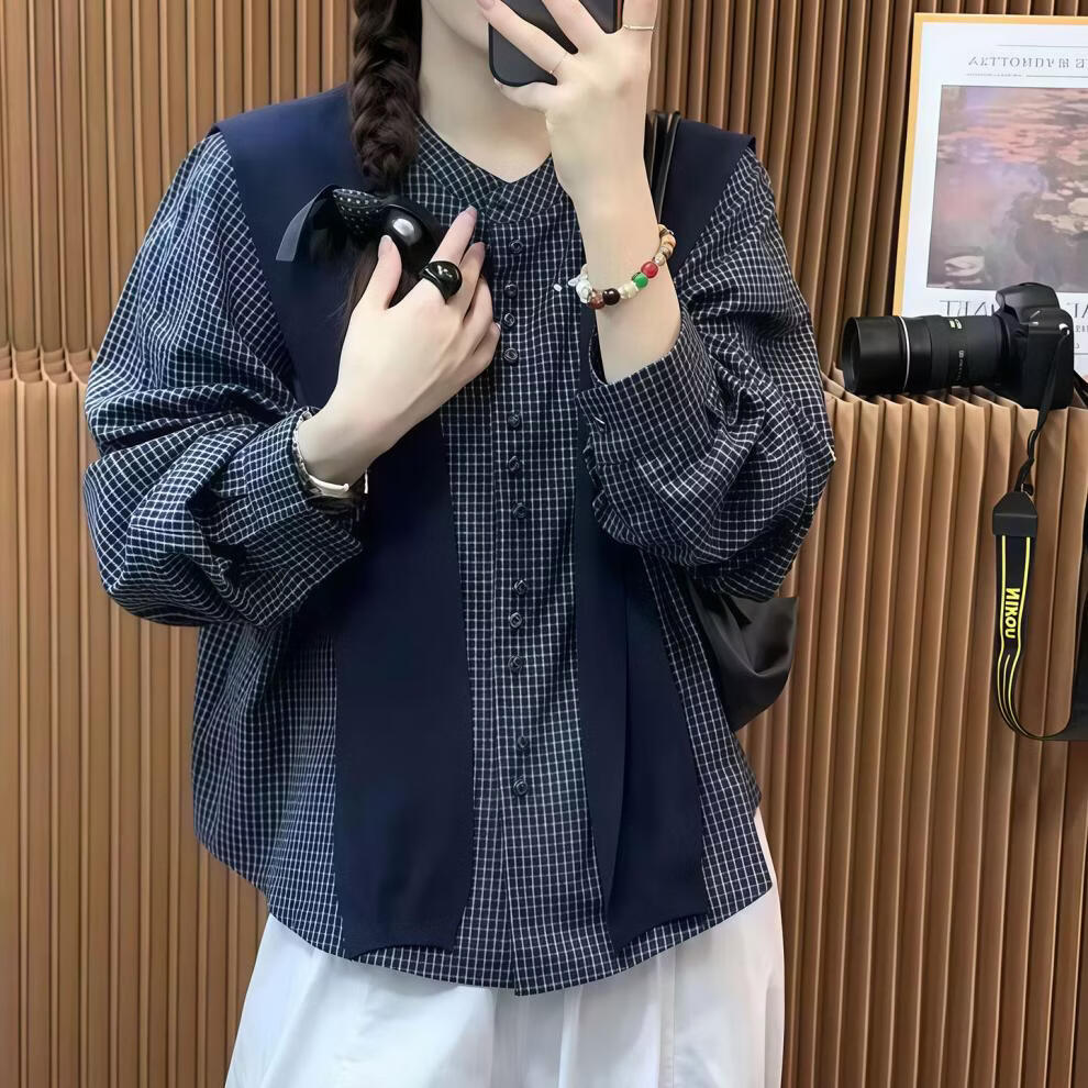 MODX2026早秋新款韩系时尚减龄披肩长袖格子衬衫女款气质休闲衬衣上衣 蓝色格子+披肩 【原版】 XL 130-145斤