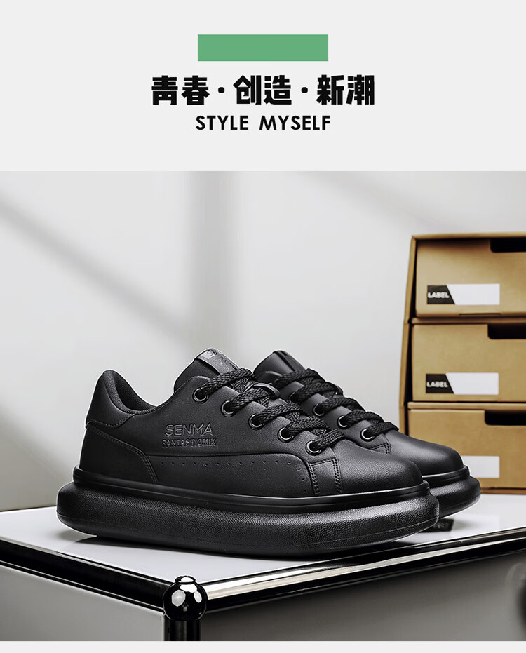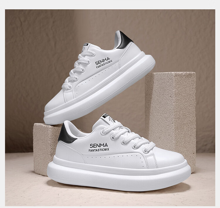 森馬男鞋2026新款春季高级感休闲麦昆小白运动鞋男士皮面防水休闲板鞋 白色【基础款】 39 标准码数/现货秒发