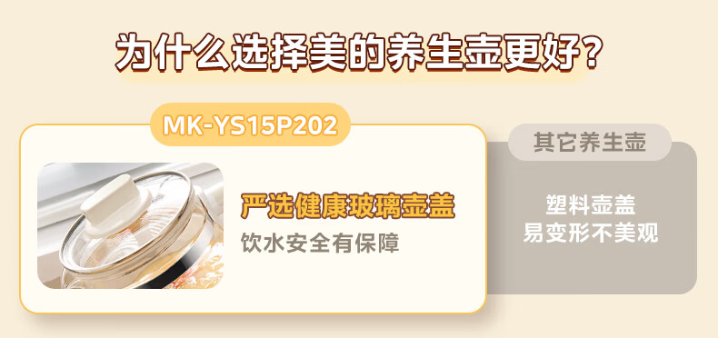 美的(Midea)家用养生壶 1.5L全自动玻璃烧水壶 多段保温电热水壶 一体恒温煮茶壶 轻音柔声炖煮智能预约 升级新品【玻璃壶盖】 1.5L