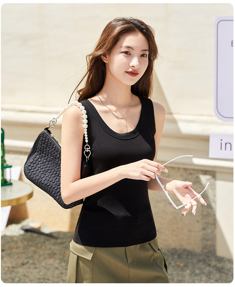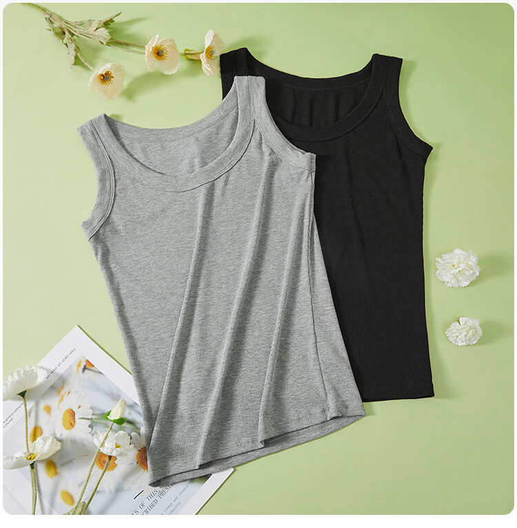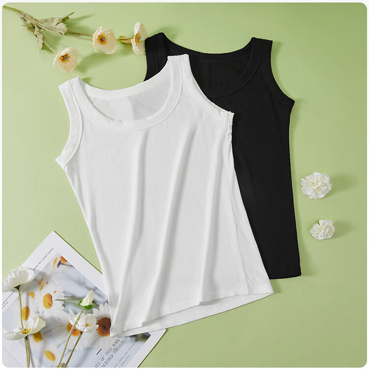 香蜜闺秀【2件装】凉感透气舒适打底吊带背心女内搭可外穿内衣女 3037009黑色+白色 (无胸垫) 均码 (建议90-130斤)
