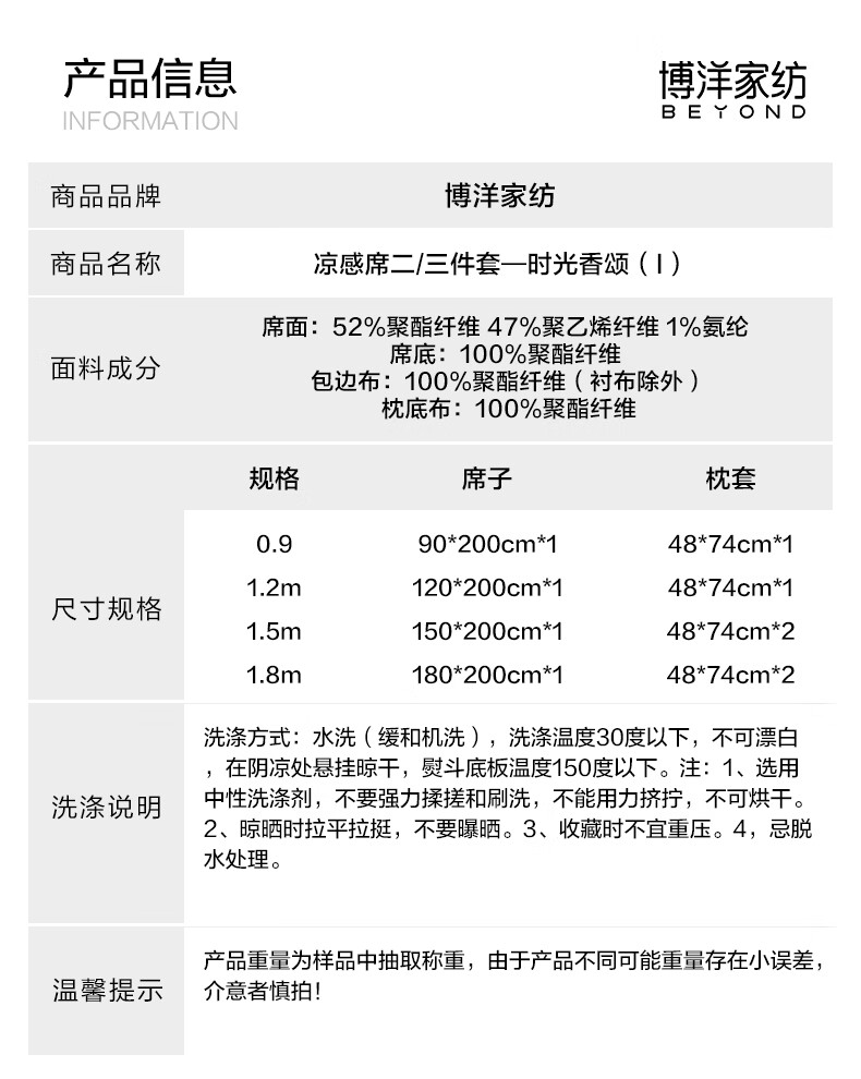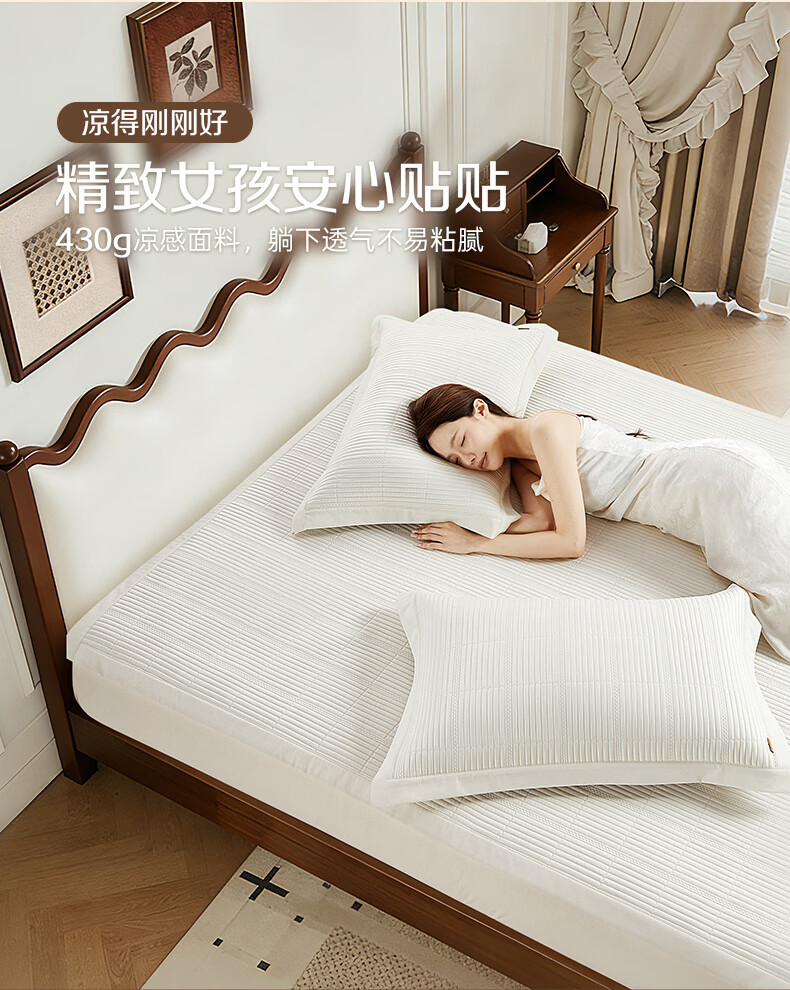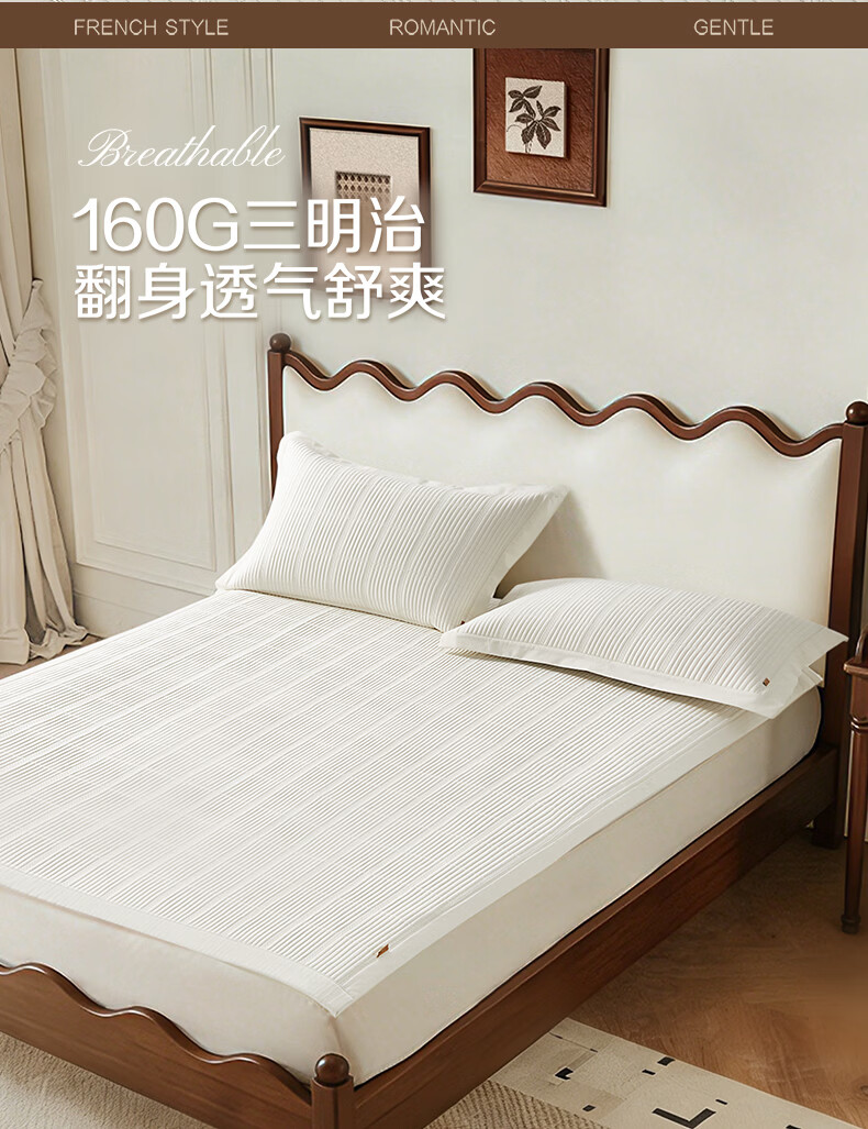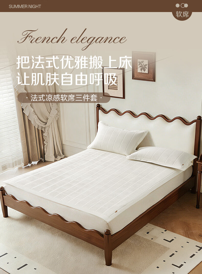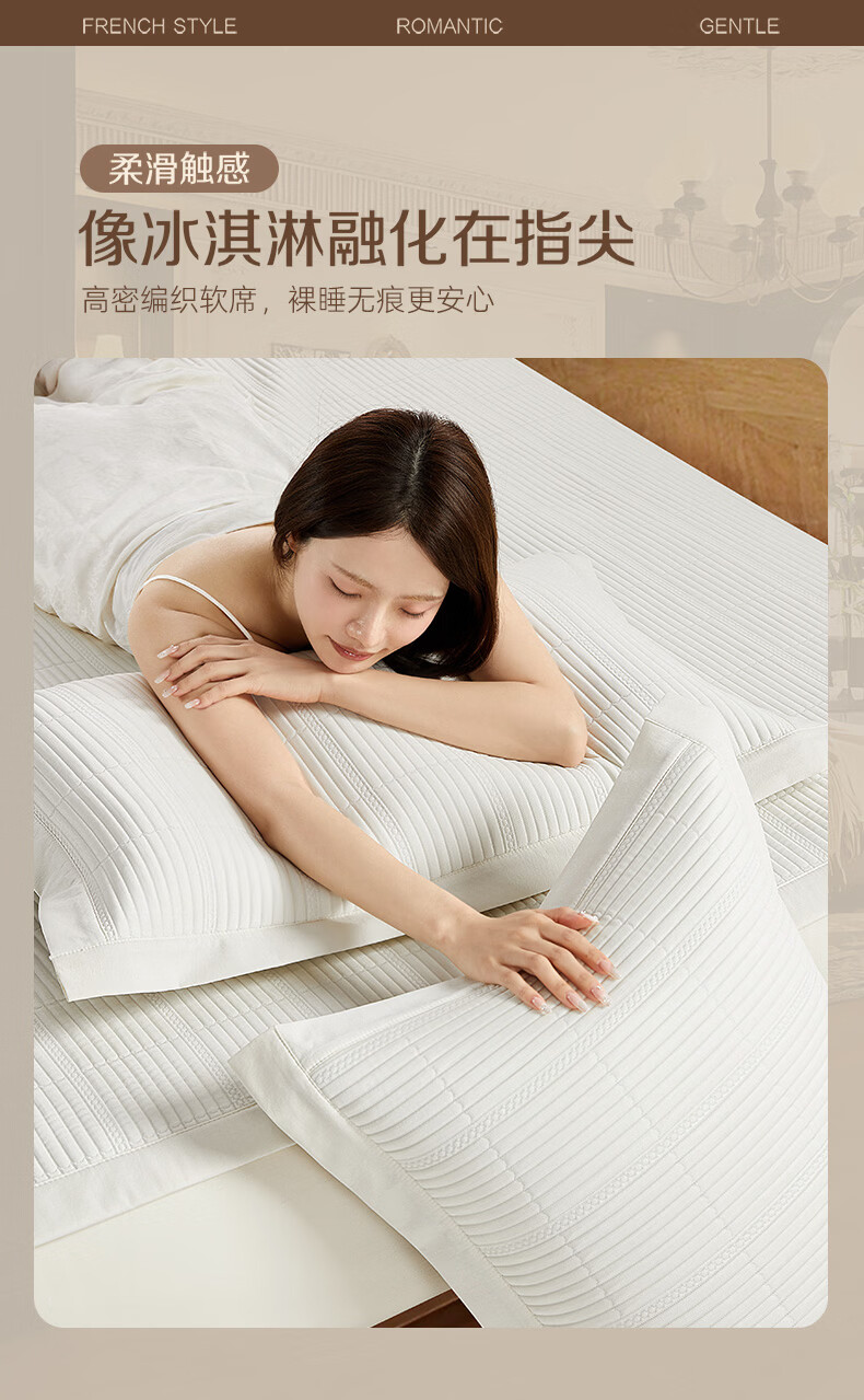 博洋(BEYOND)博洋家纺法式凉感席二三件套家用夏季可水洗凉感软席可折叠凉席 凉感席二/三件套—时光香颂(A类+抑菌) 两件套 90*200cm