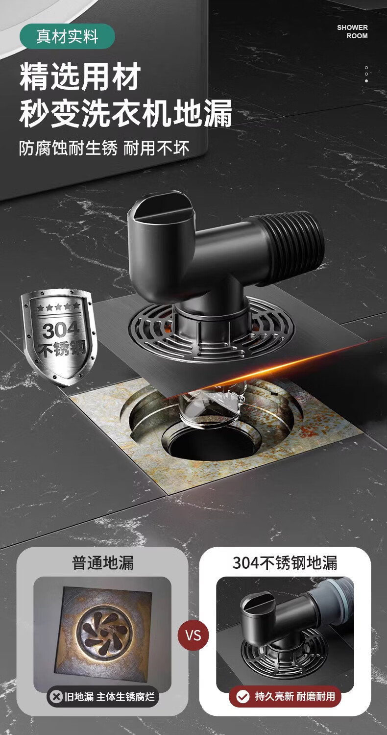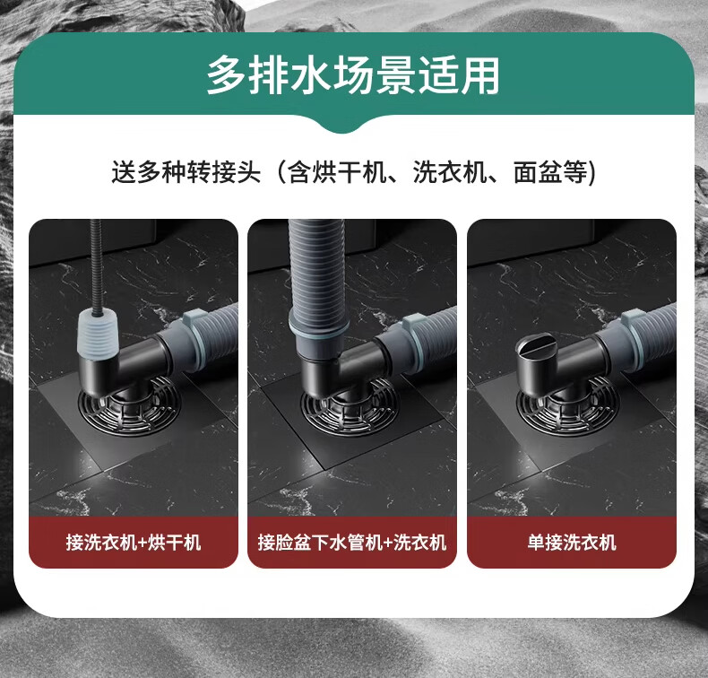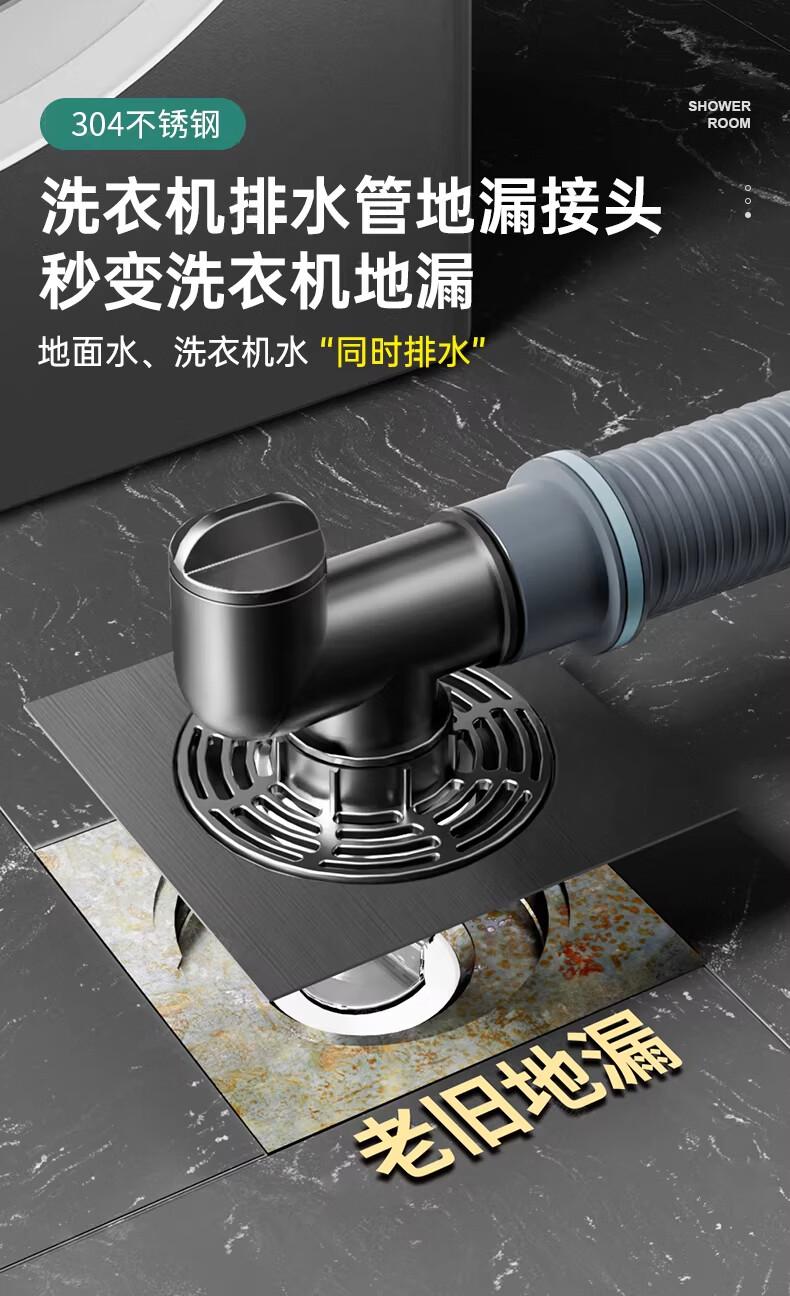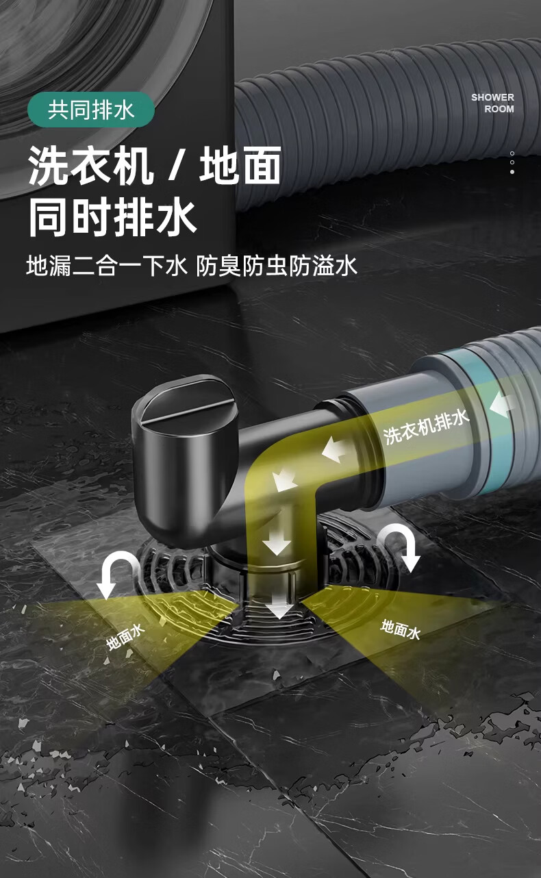 WUZORY【德国】卫生间地漏洗衣机下水管三通专用接头浴室防臭防反味神器 【带过滤网+地面设备双排水】接两根排水管 厨卫通用安装丨双设备地面排水