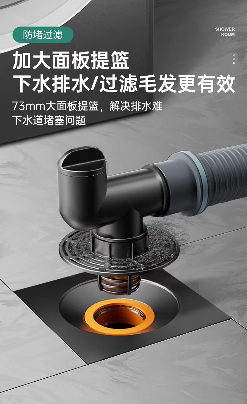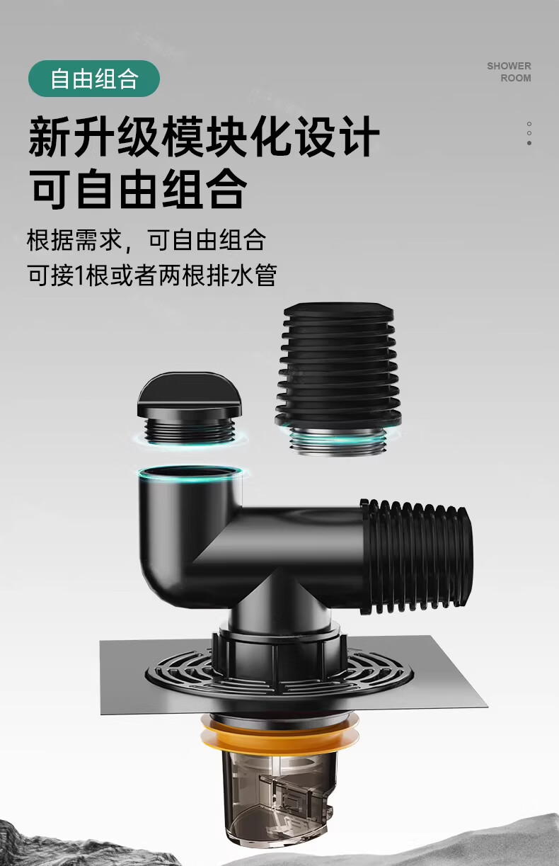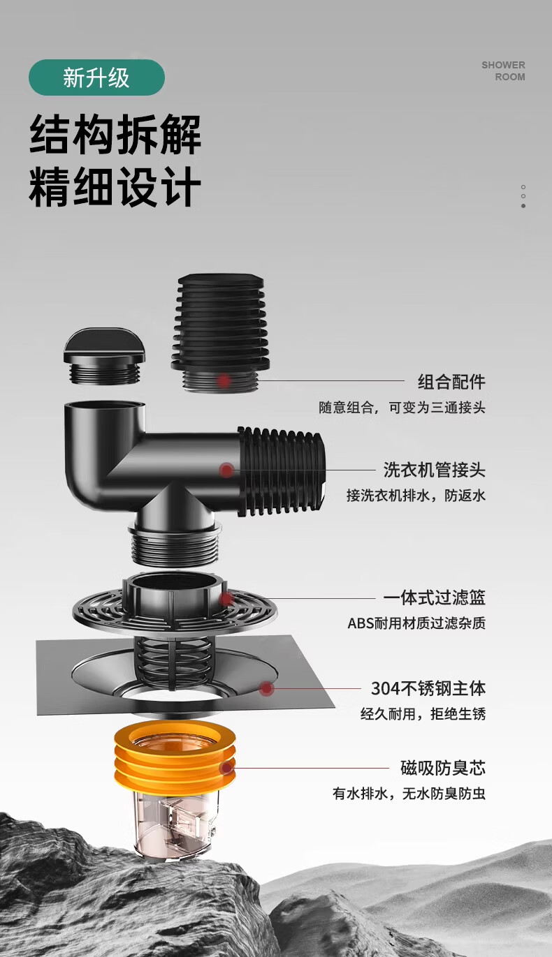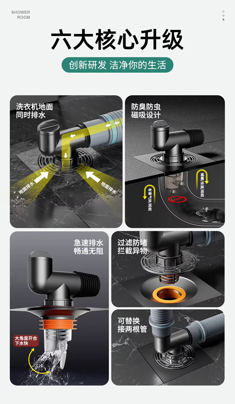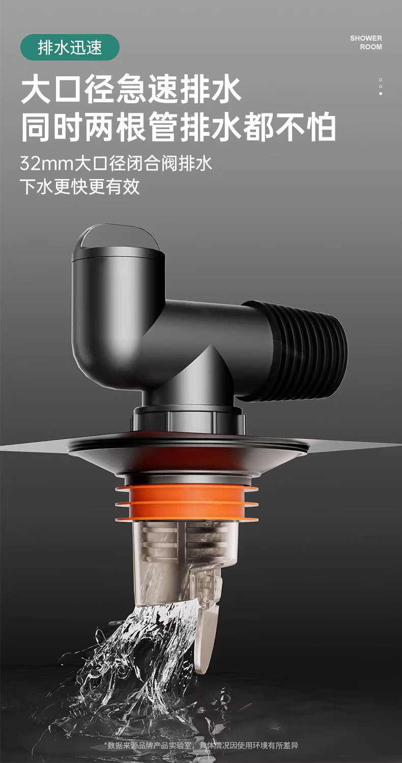 WUZORY【德国】卫生间地漏洗衣机下水管三通专用接头浴室防臭防反味神器 【带过滤网+地面设备双排水】接两根排水管 厨卫通用安装丨双设备地面排水