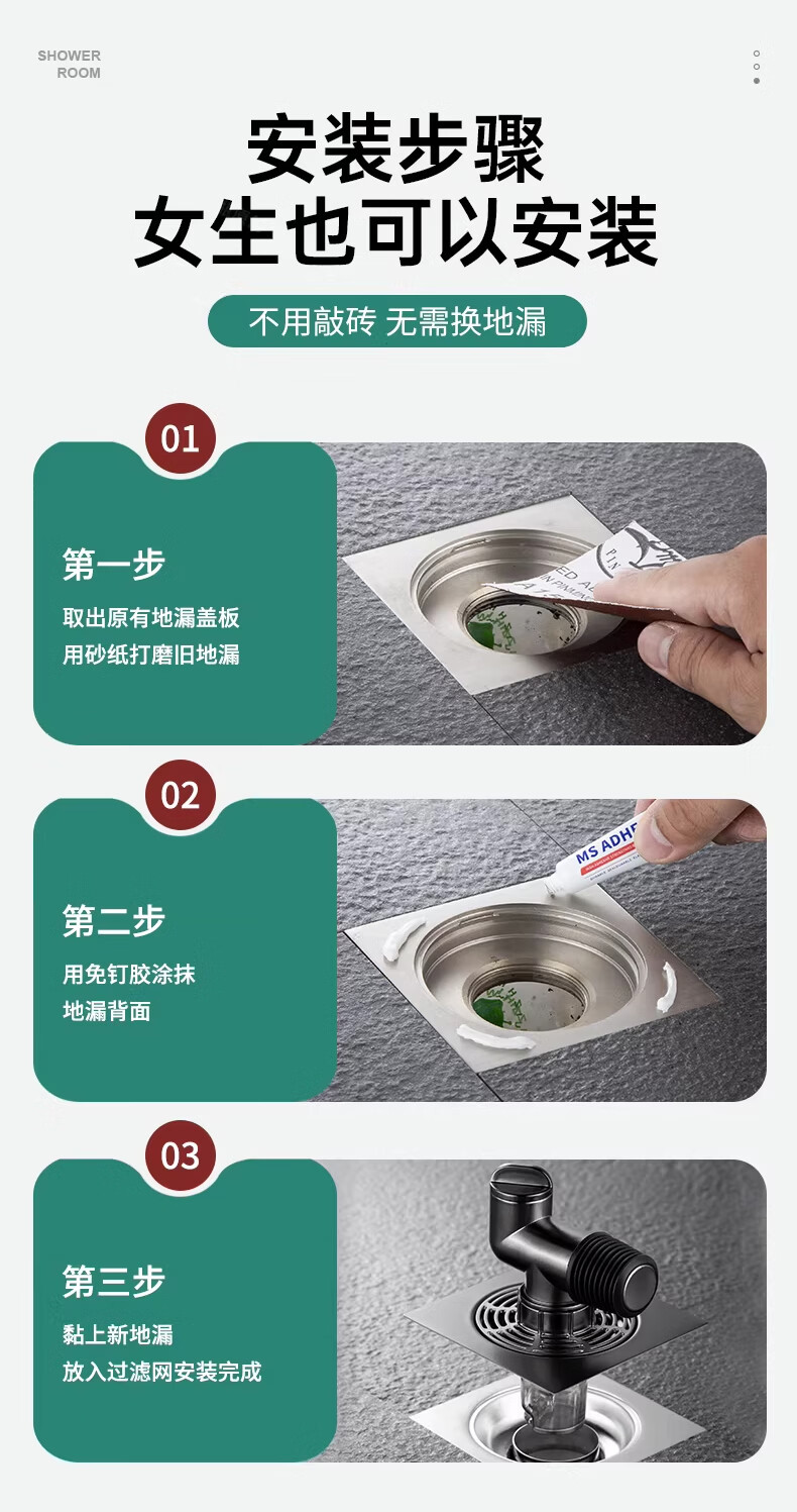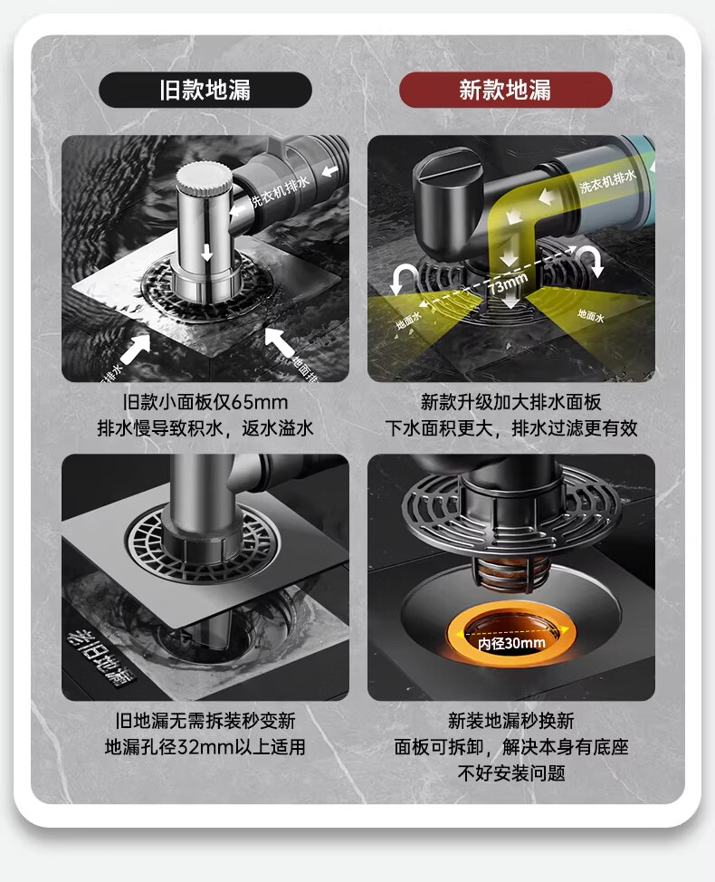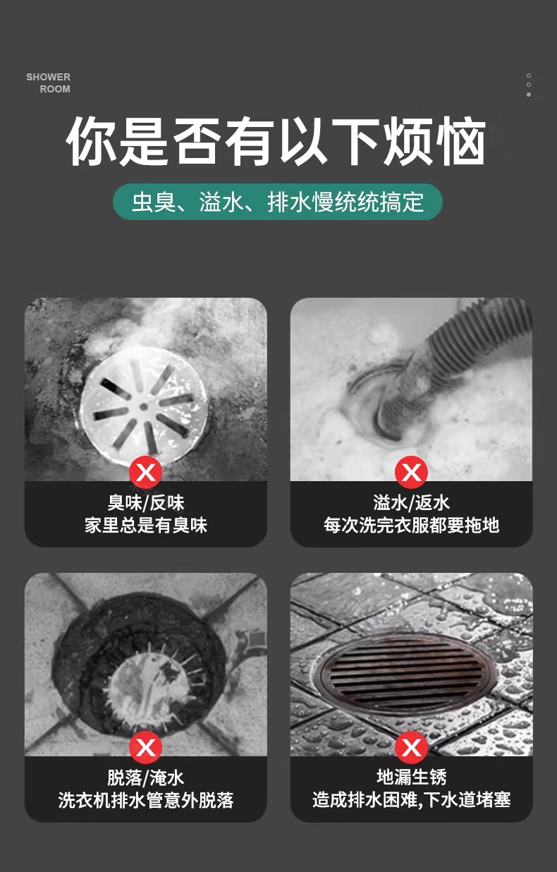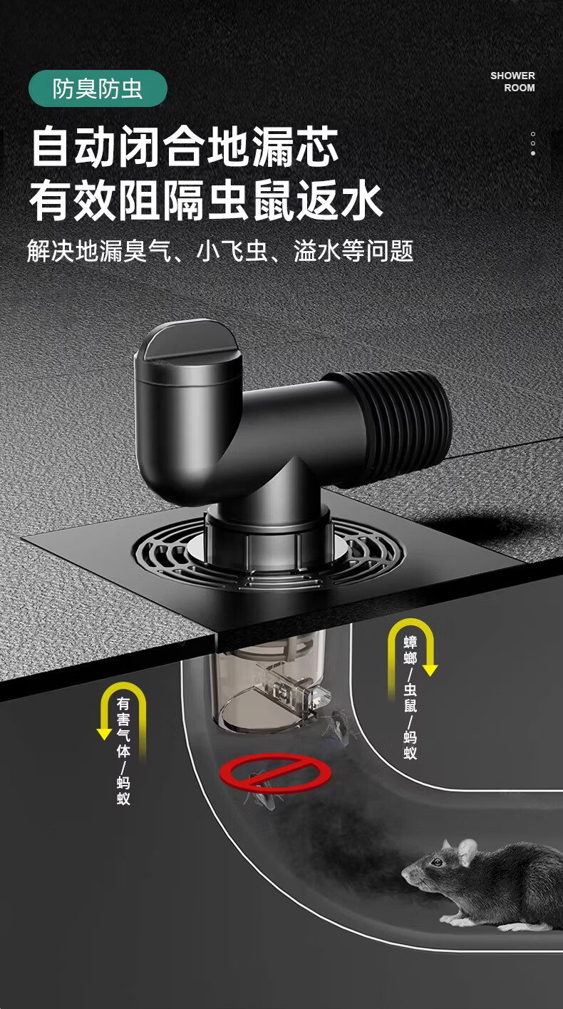 WUZORY【德国】卫生间地漏洗衣机下水管三通专用接头浴室防臭防反味神器 【带过滤网+地面设备双排水】接两根排水管 厨卫通用安装丨双设备地面排水