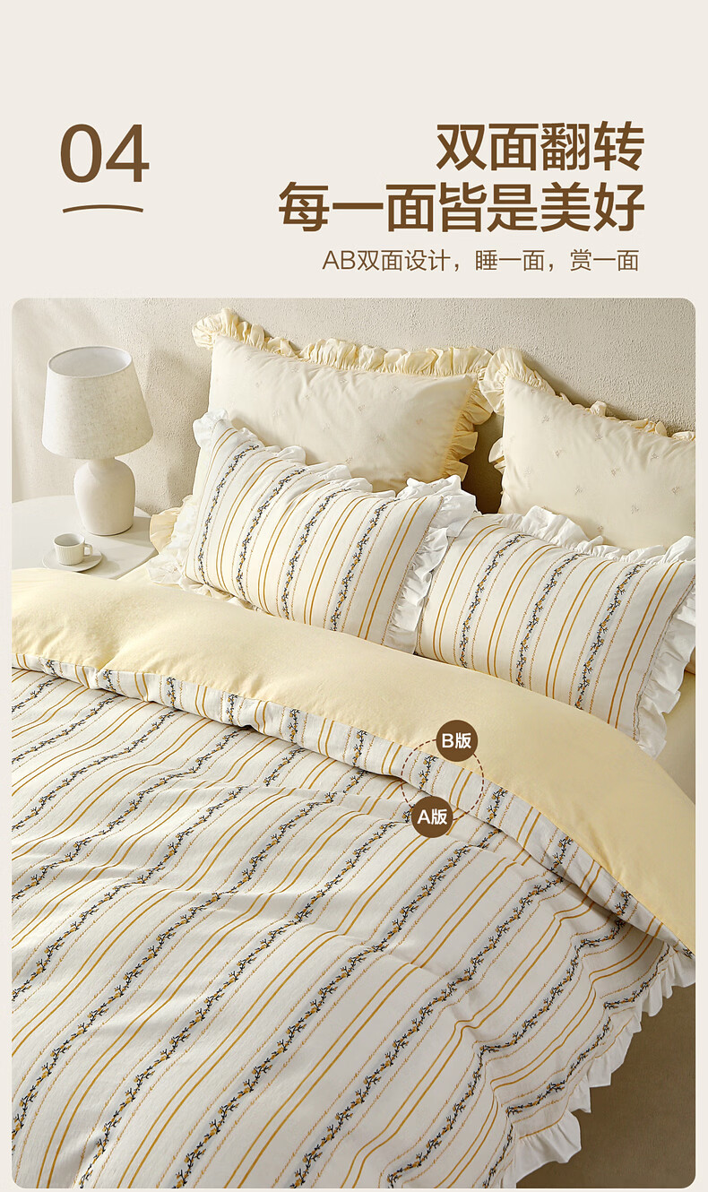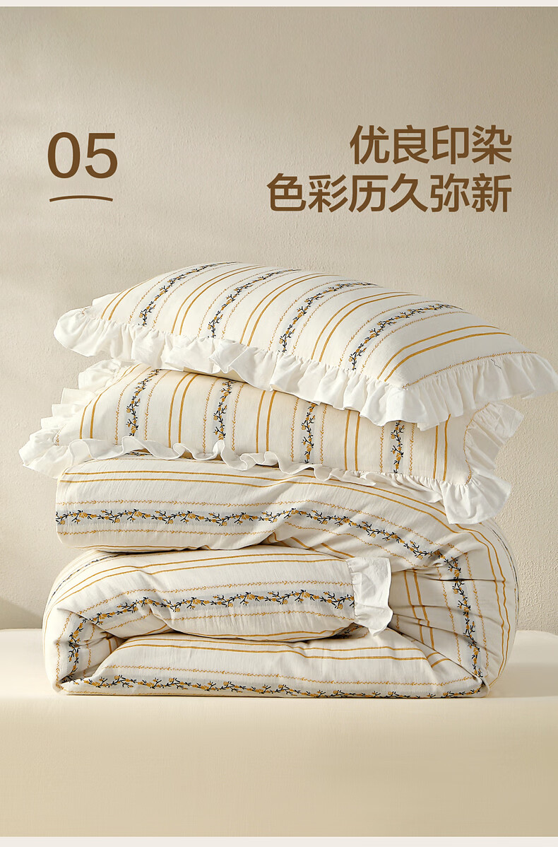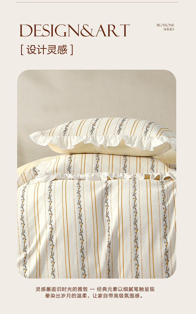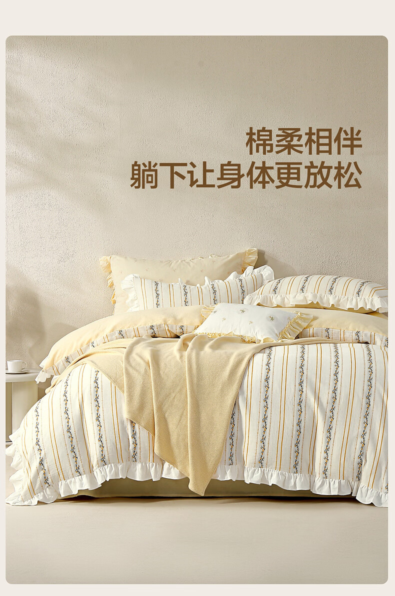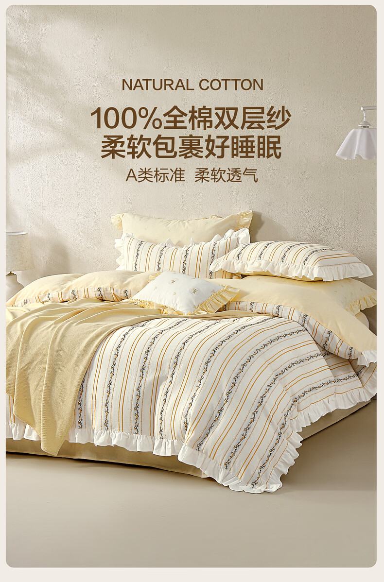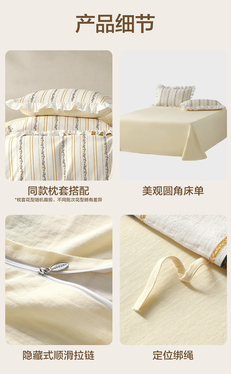 水星家纺四件套床上用品纯棉100%全棉A类床单被套双层纱亲肤透气26年新款 拾光纹集 床单款 (被套150*210cm)