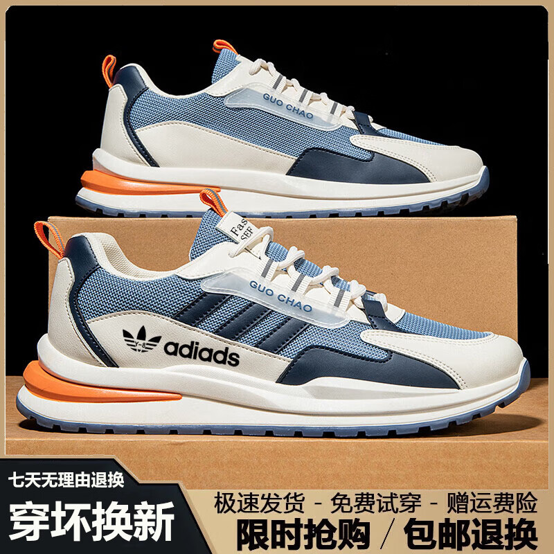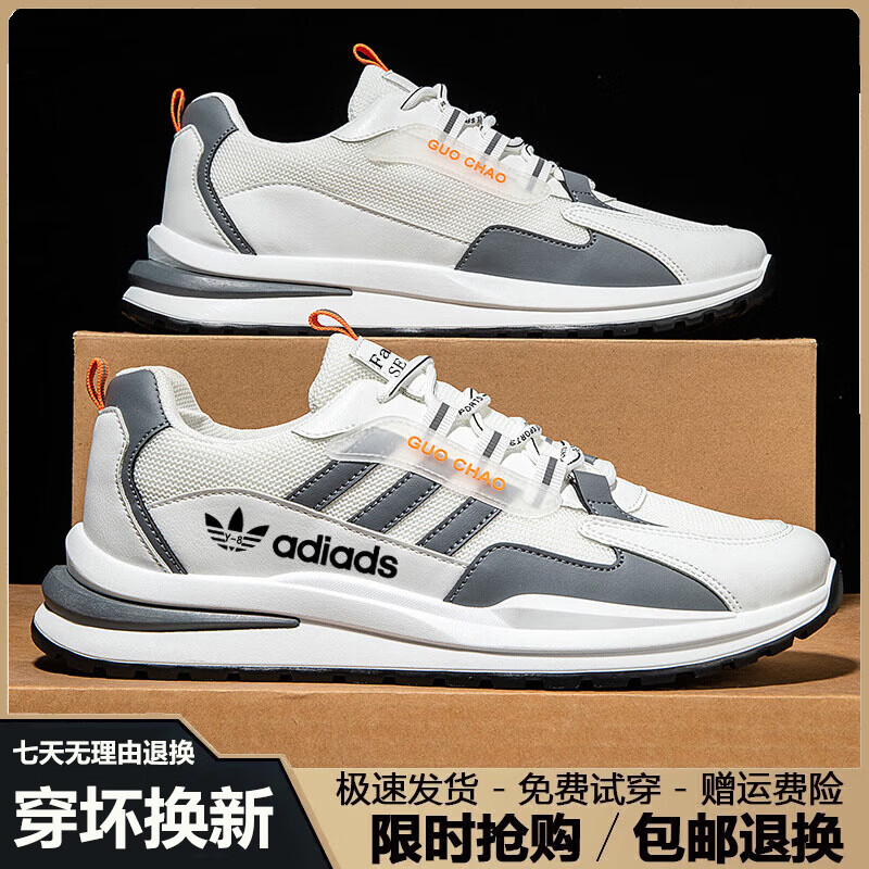轻奢潮牌男鞋春季新款运动鞋男士软底轻便跑步鞋男百搭休闲鞋子男 AD6618白灰色【网面款】 41
