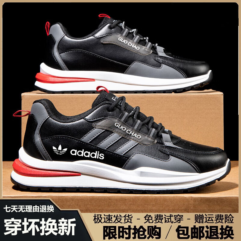 轻奢男鞋2026春季新款户外运动鞋男网面跑步鞋男士休闲百搭鞋子男 NK666黑白【皮面款】 41