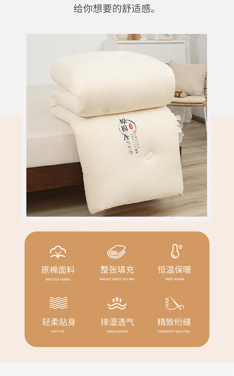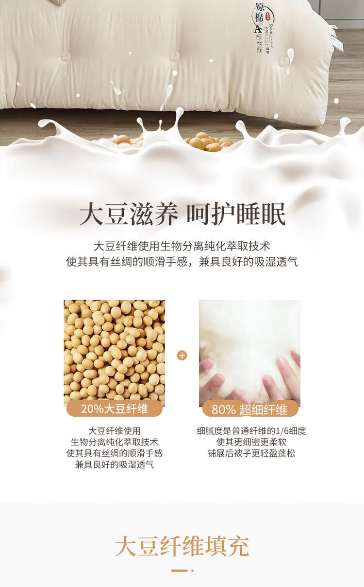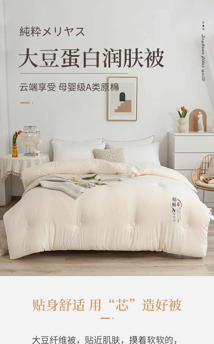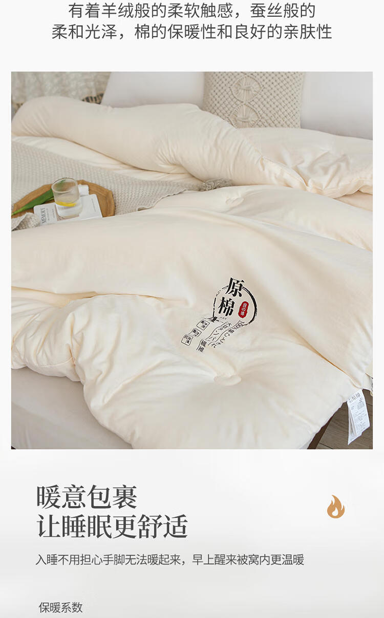 浪莎(LangSha)A类原棉大豆纤维被子被芯春秋薄被宿舍空调被夏凉被单人四季通用 原棉-玉色【柔软蓬松 亲肤裸睡】 180x220cm重约8斤【加厚冬被】