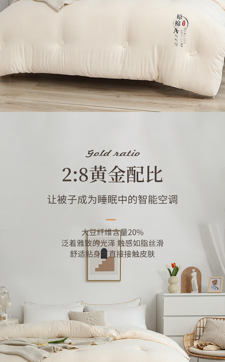 ROLAND LIVE全棉提花55%大豆被单双人家用被子春秋被冬季保暖冬被亲肤透气被 LB 全棉提花大豆被-纳福 春秋被150cm*200cm【约3.2斤】