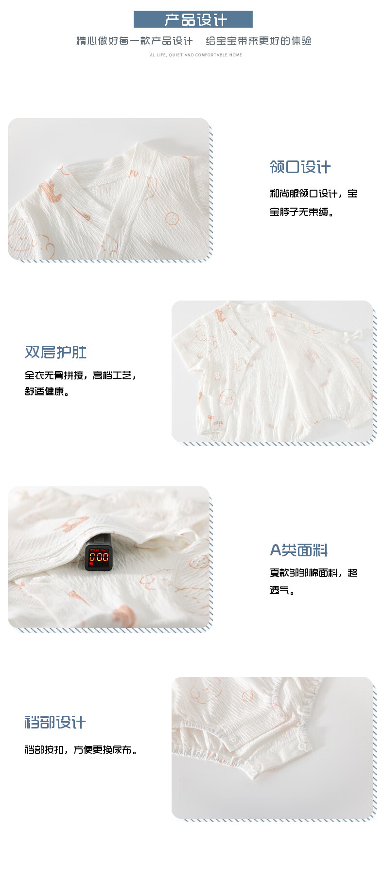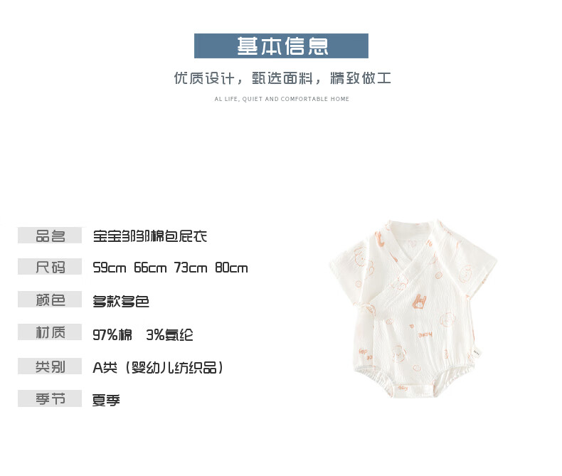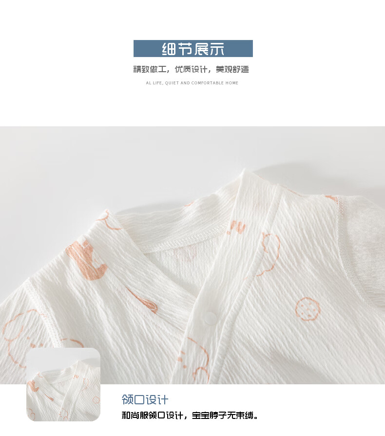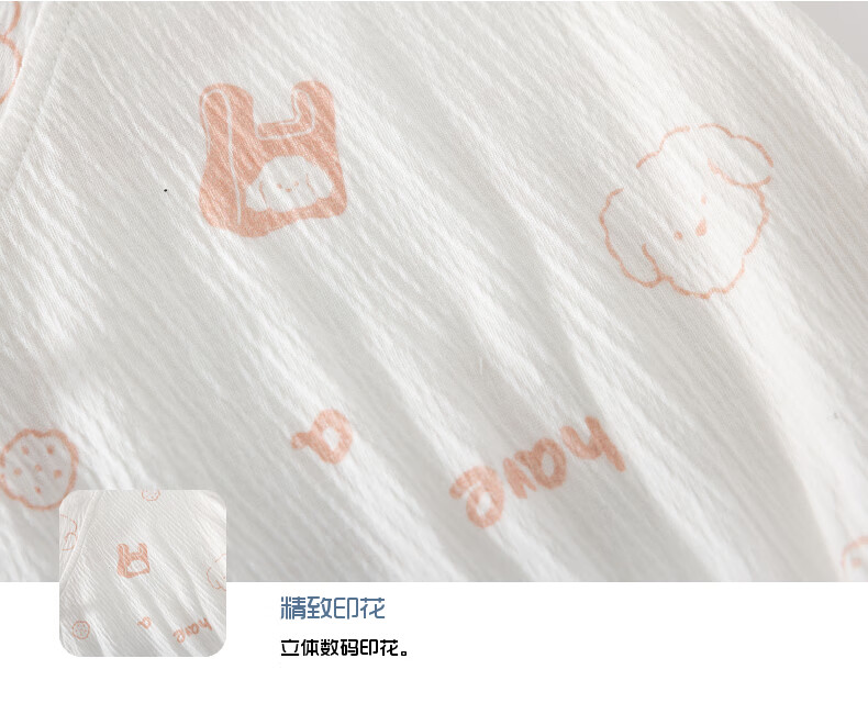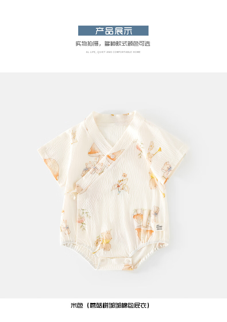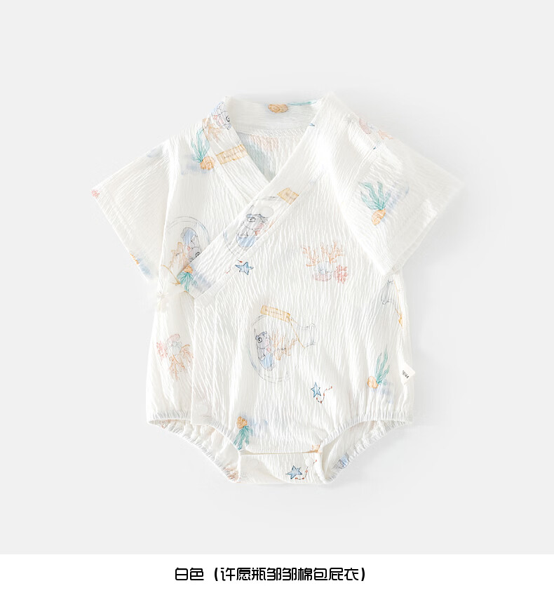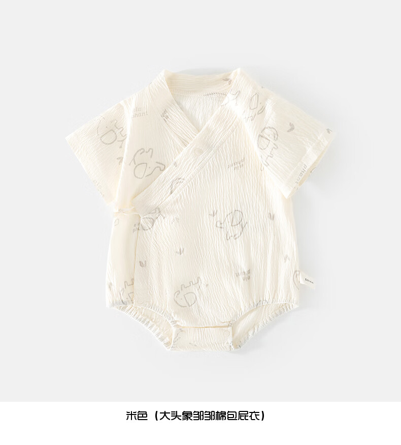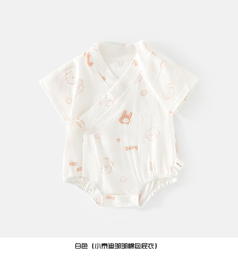 短袖皱皱棉婴幼儿夏季空调服男女宝宝印花贴身A类三角爬服 小泰迪 夏款皱皱棉包屁衣 80cm 73-80cm