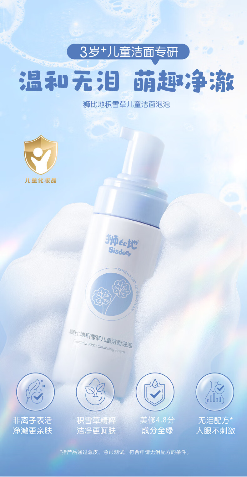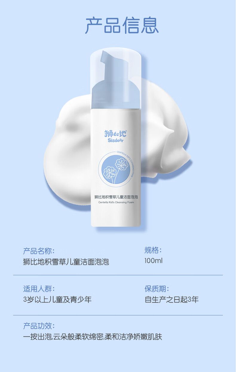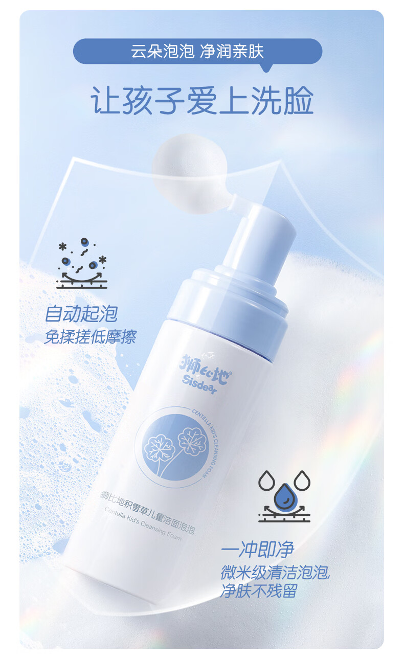 Shibidi狮比地儿童洗面奶积雪草洁面泡泡宝宝专用3-9岁-12岁以上女孩男孩 【2件更优惠】积雪草洁面泡泡100mlx2