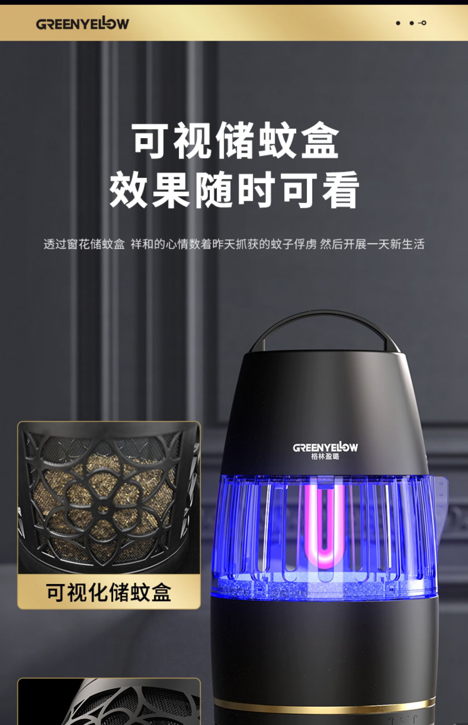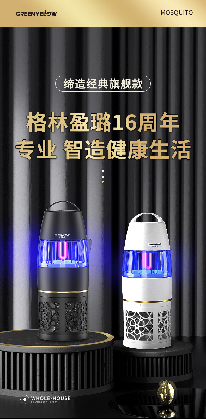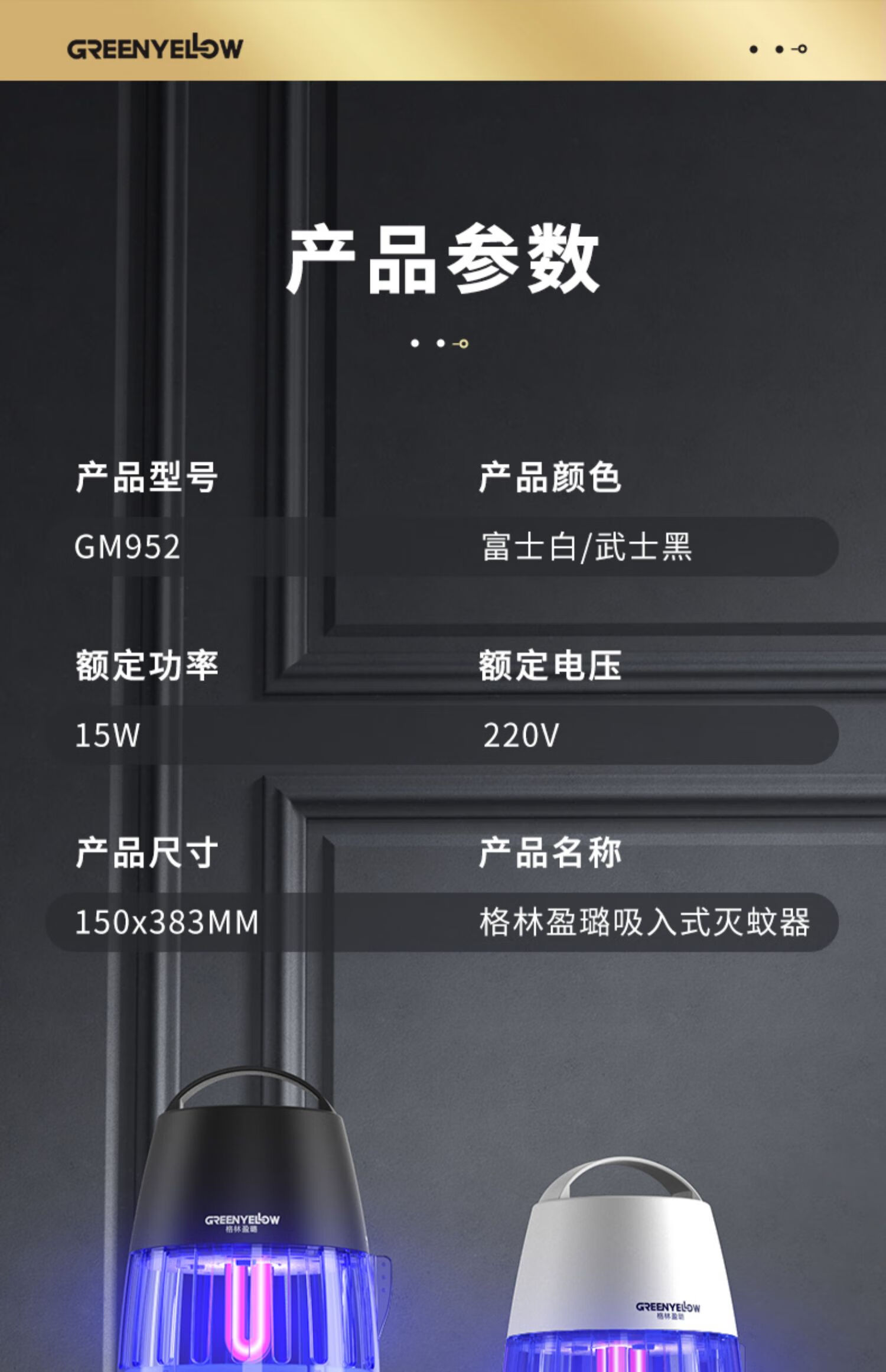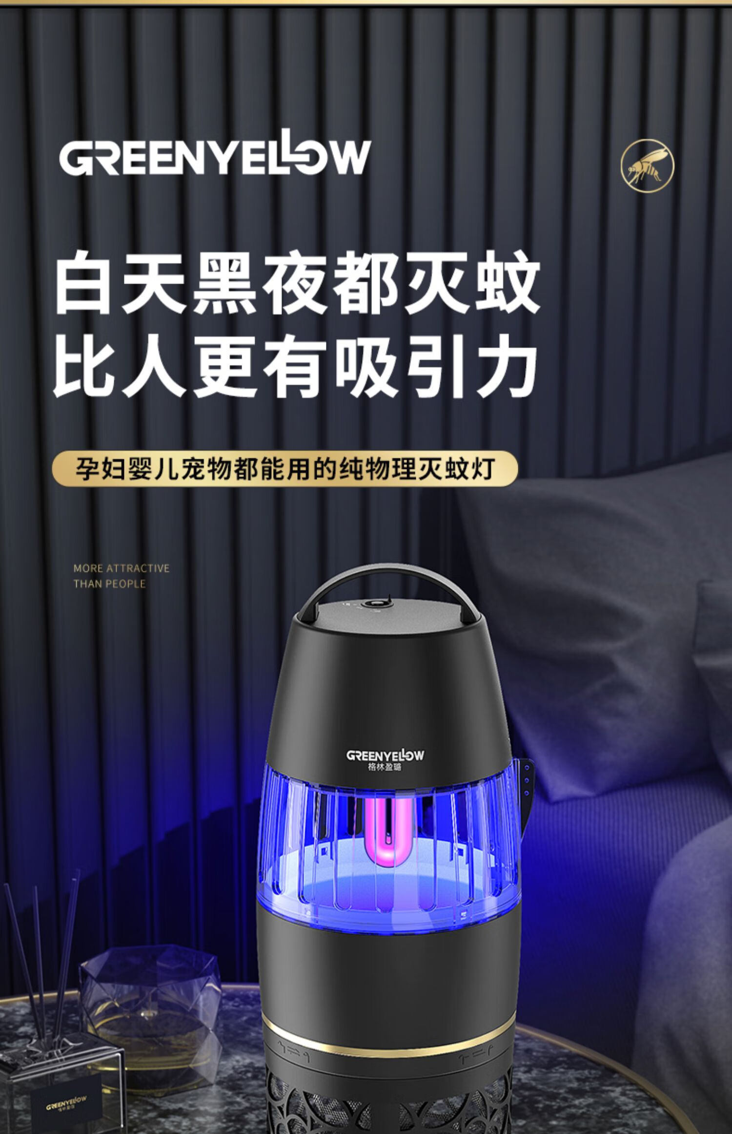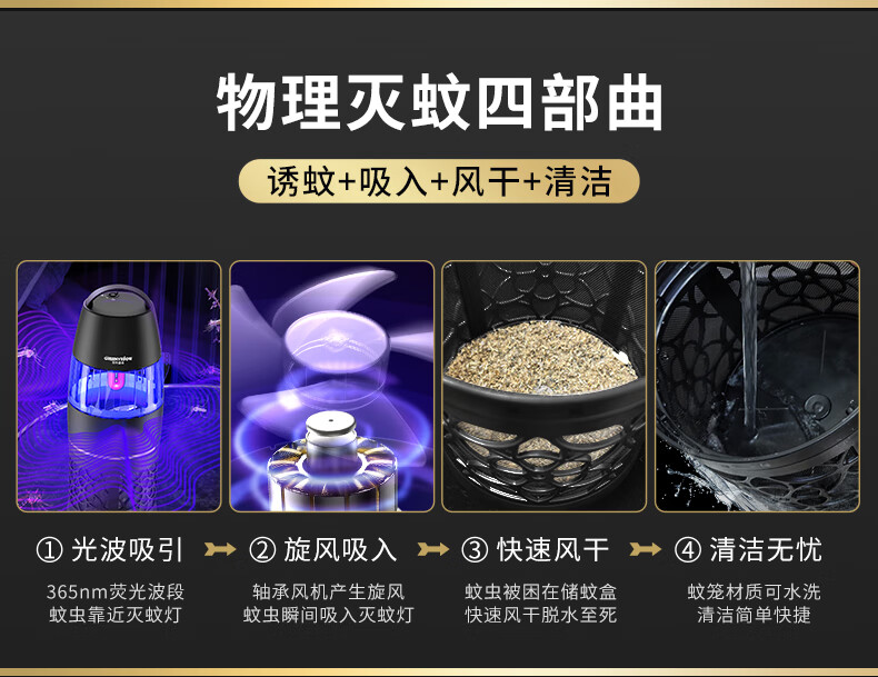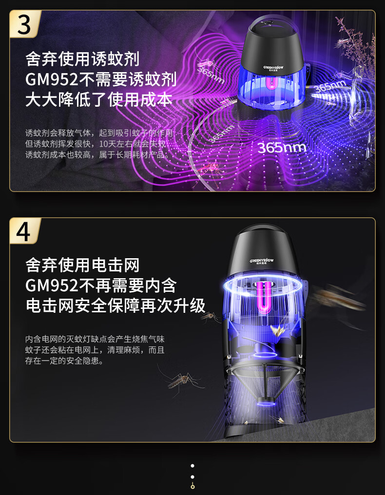 格林盈璐灭蚊灯GM952家用灭蚊器驱蚊器驱蚊灯餐厅吸入式物理吸蚊器电蚊灯 白色