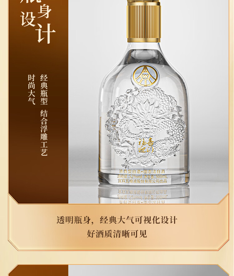 五粮浓香【五粮液出品】 福喜迎门 纯粮酿造白酒【送礼宴请】 52度 500mL 6瓶 水晶龙整箱
