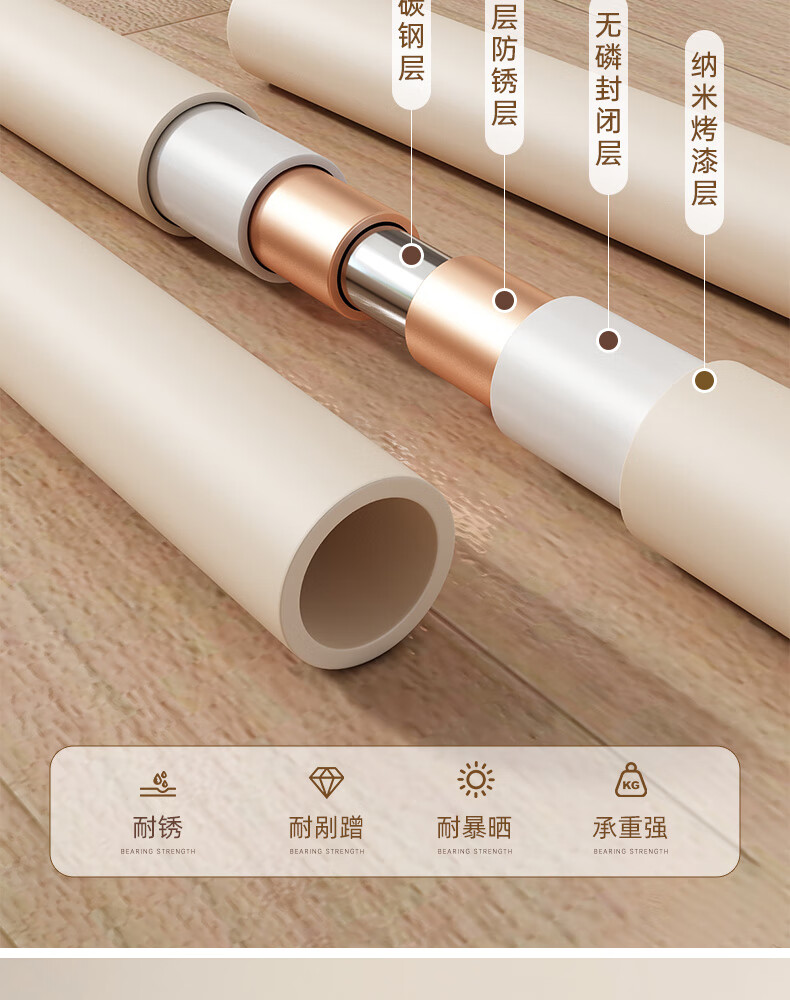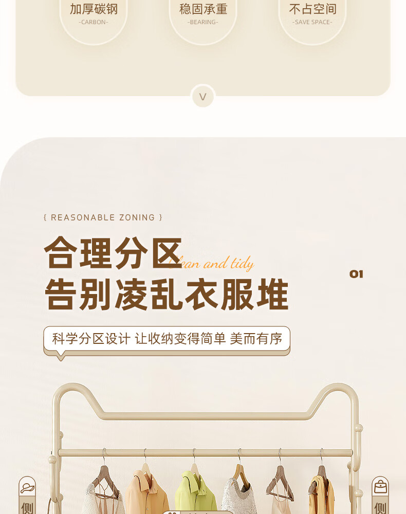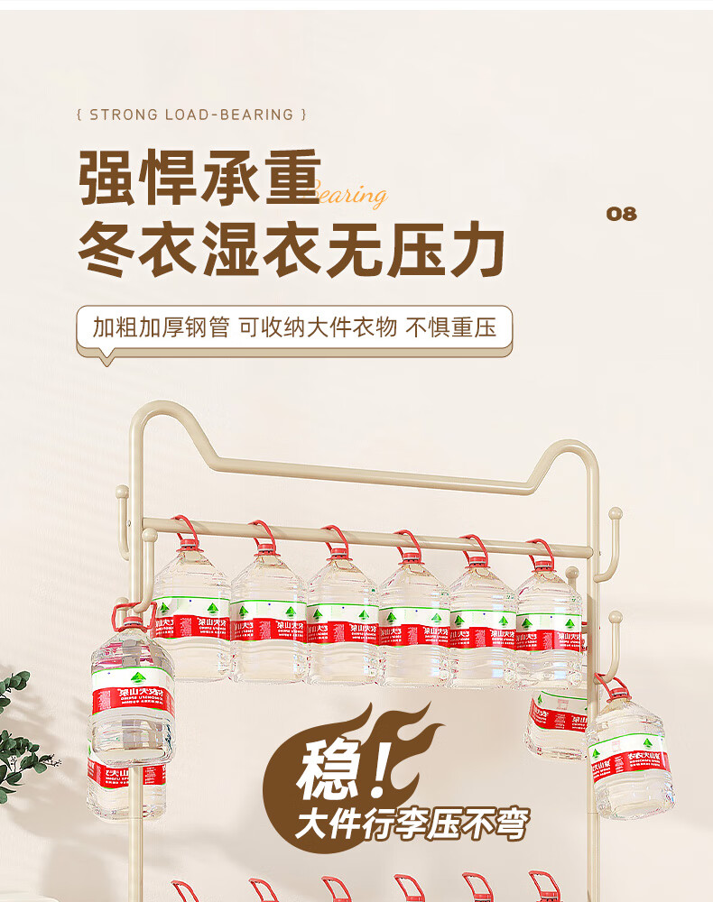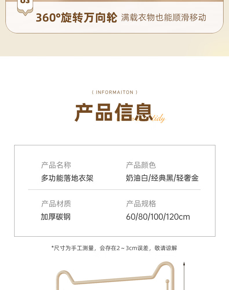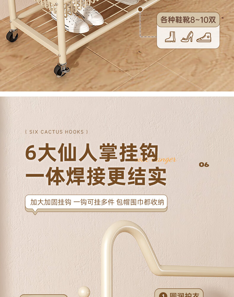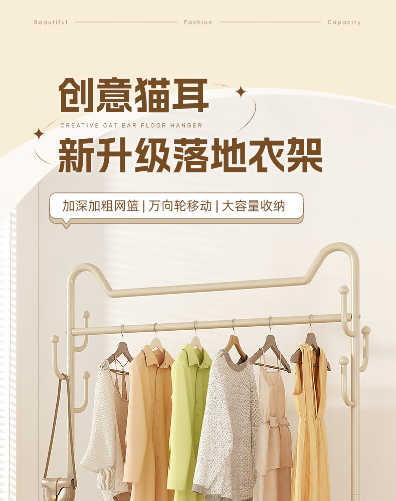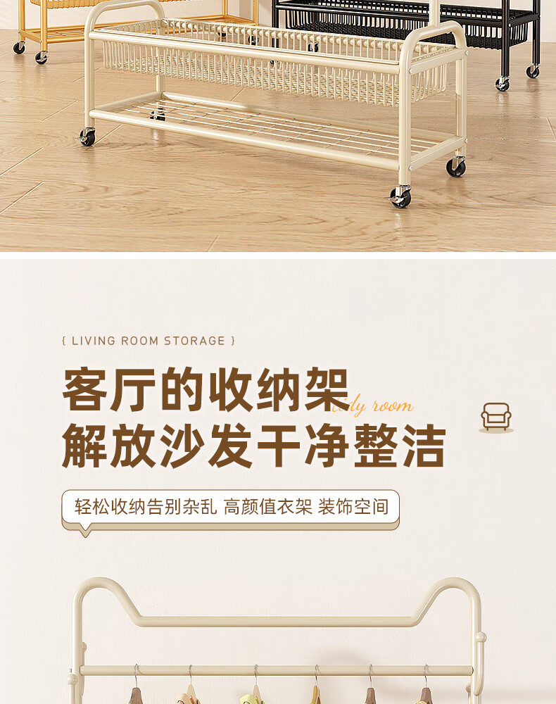 苏沐瞳挂衣架落地家用简易衣帽架奶油风单杆晾衣服架卧室收纳衣服架子 加粗-奶油白60cm【单层置物架】