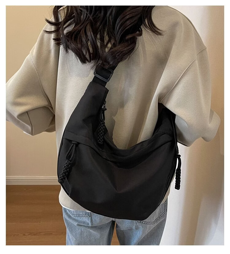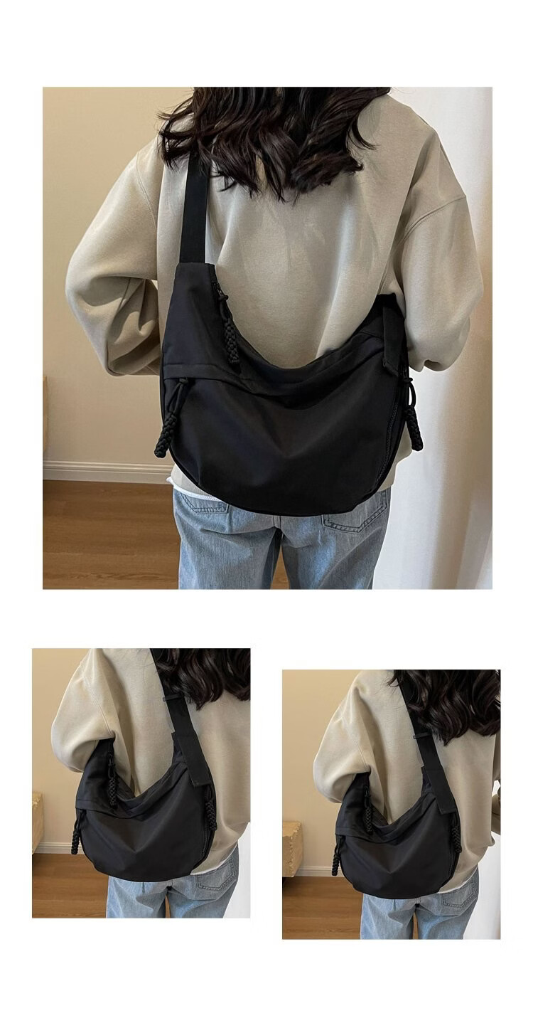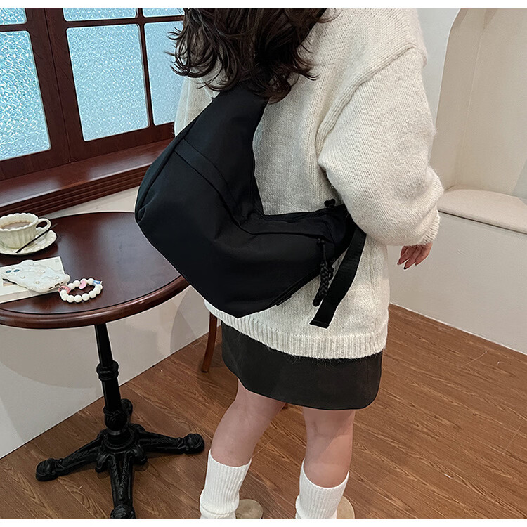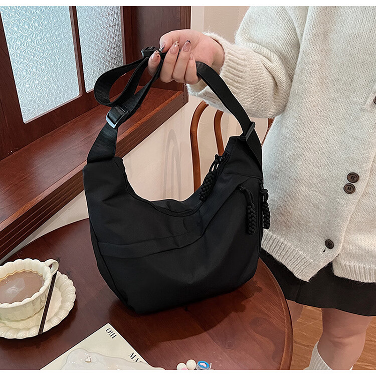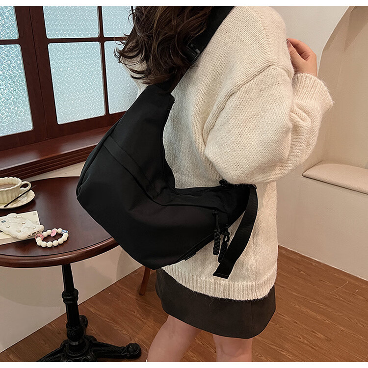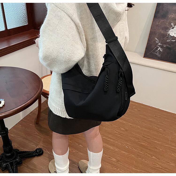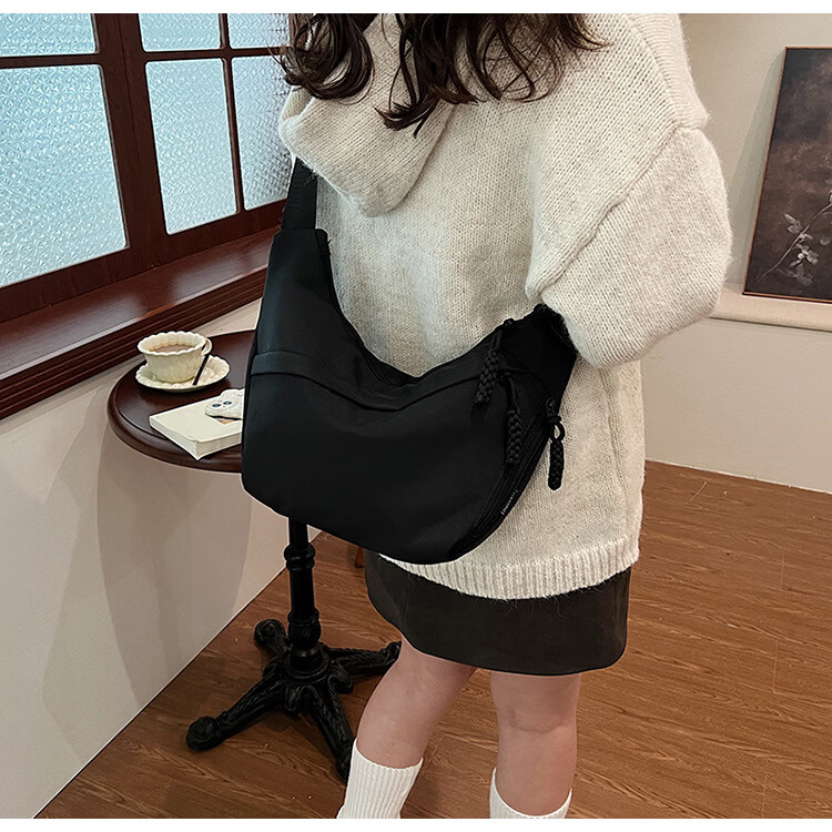 【实用】今年流行牛津布包包斜挎包女2024新款休闲单肩学生上课通 黑色