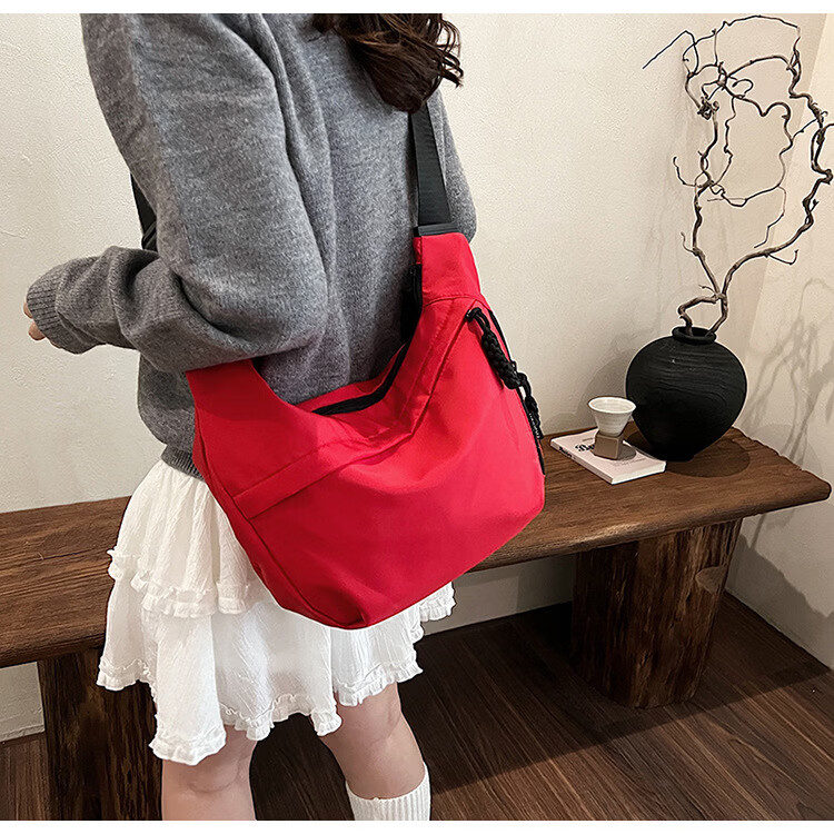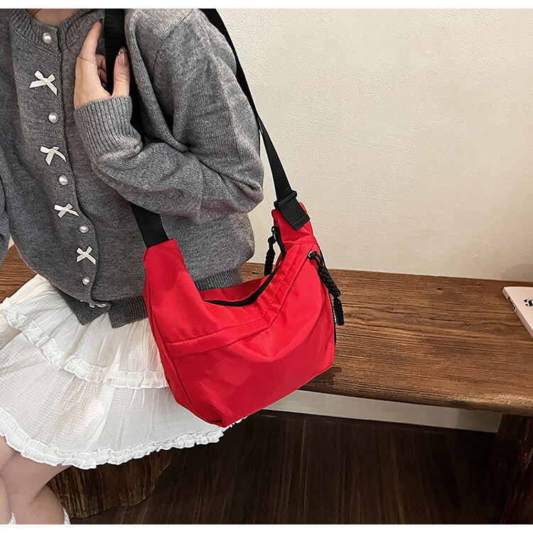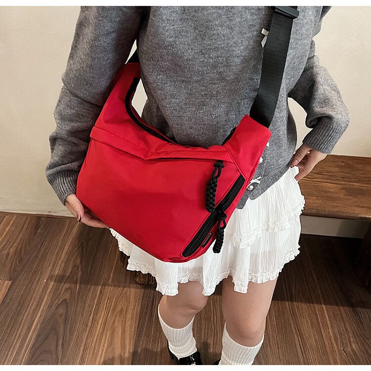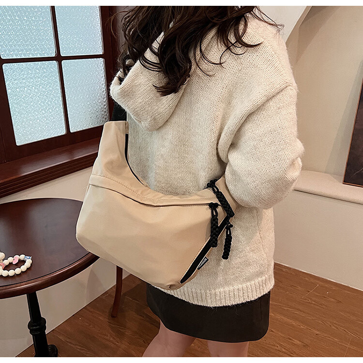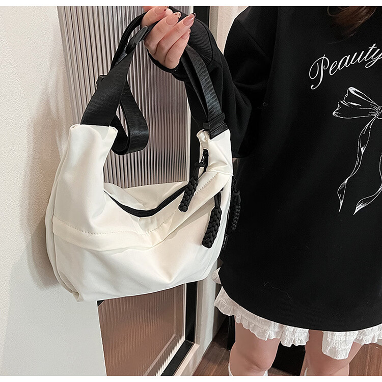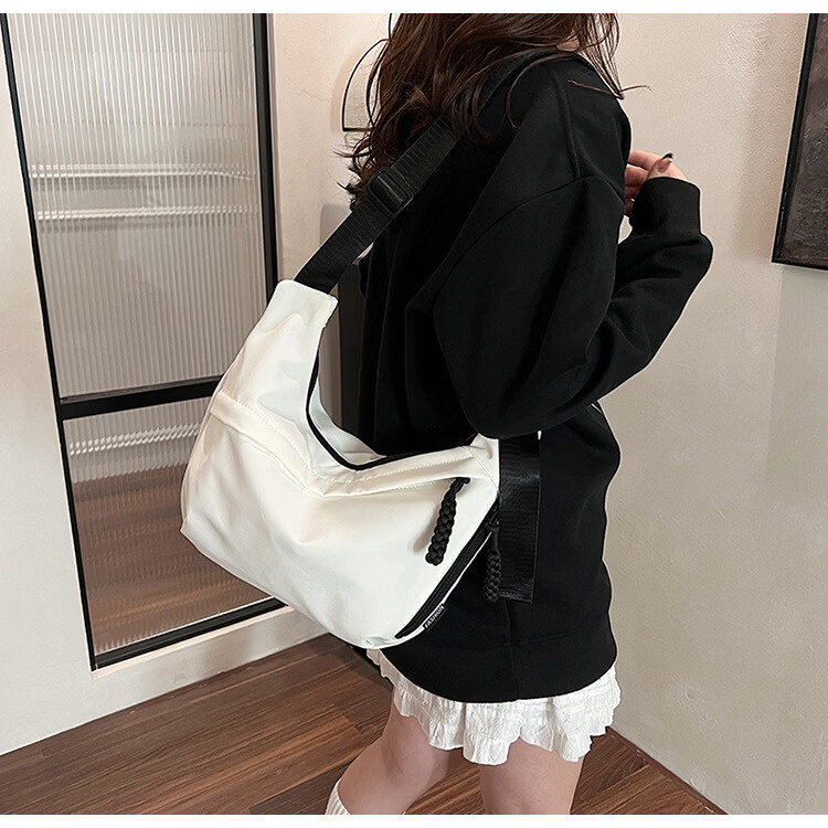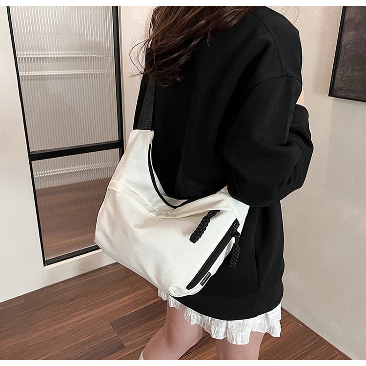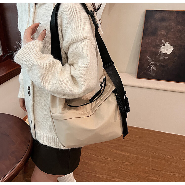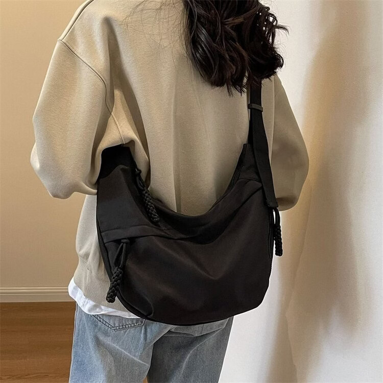 【实用】今年流行牛津布包包斜挎包女2024新款休闲单肩学生上课通 黑色