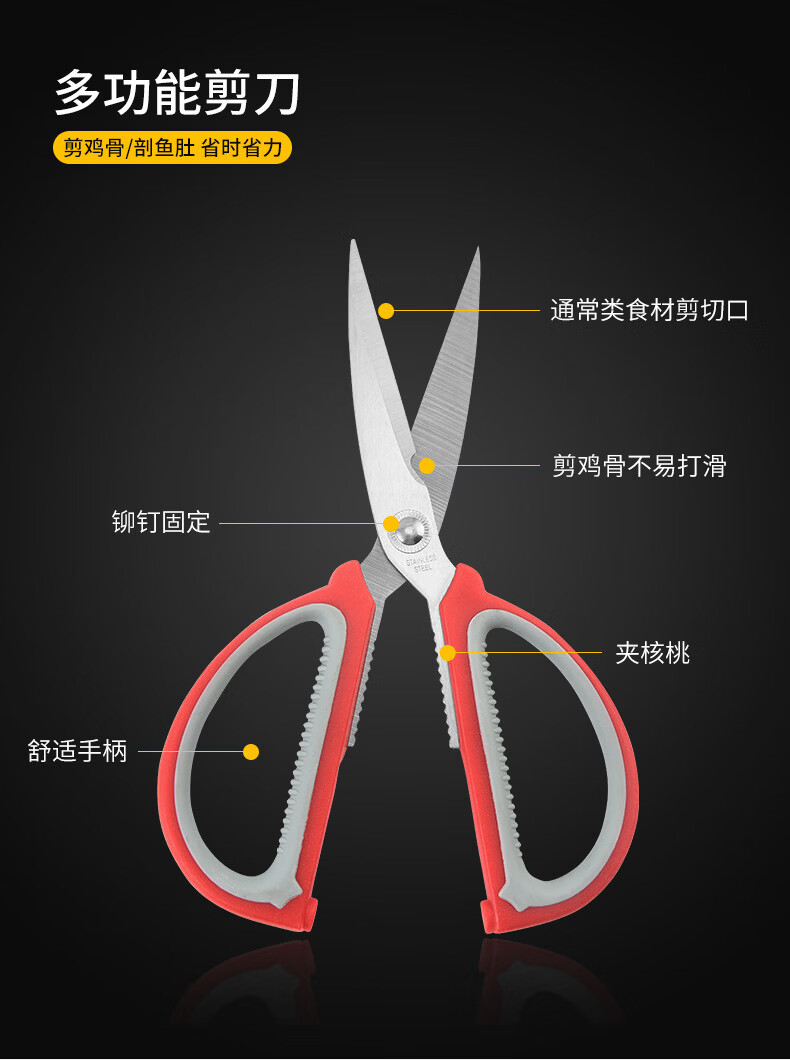 【厂家直供】厂家不锈钢家用多功能剪刀强力厨房裁缝剪学生手工美 大号