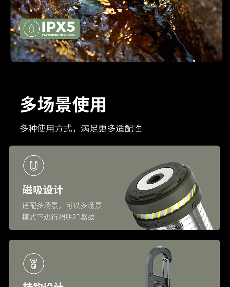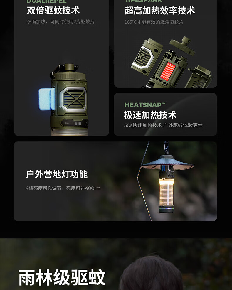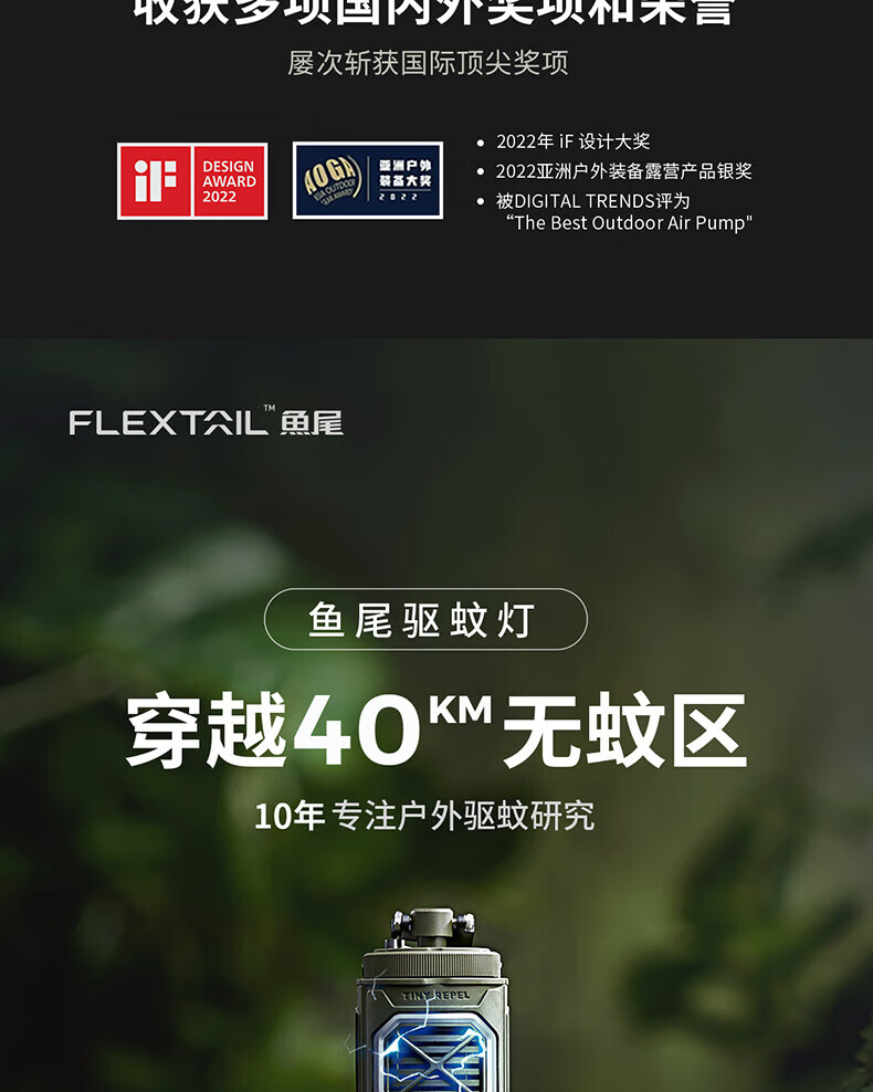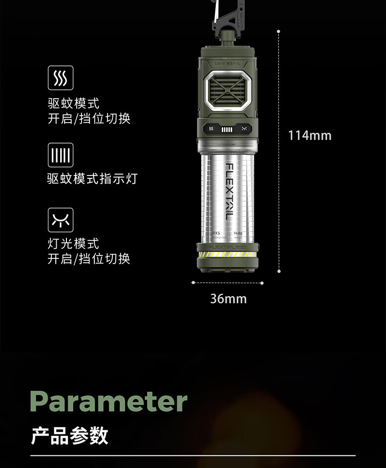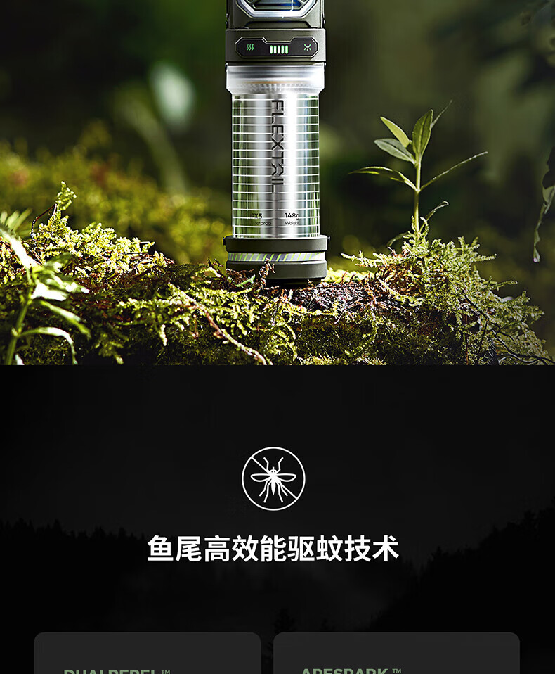 FLEXTAILGEAR鱼尾驱蚊灯户外驱蚊神器钓鱼便携蚊香片加热露营灯帐篷灯防蚊灯 升级款-沙色【附驱蚊片10片】