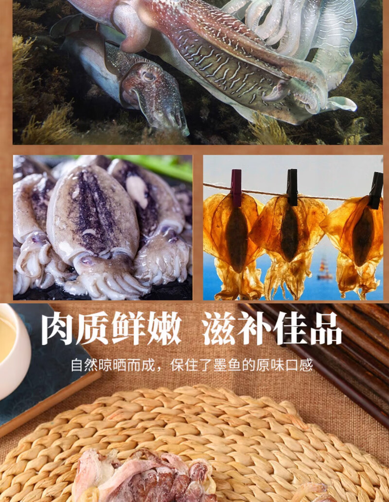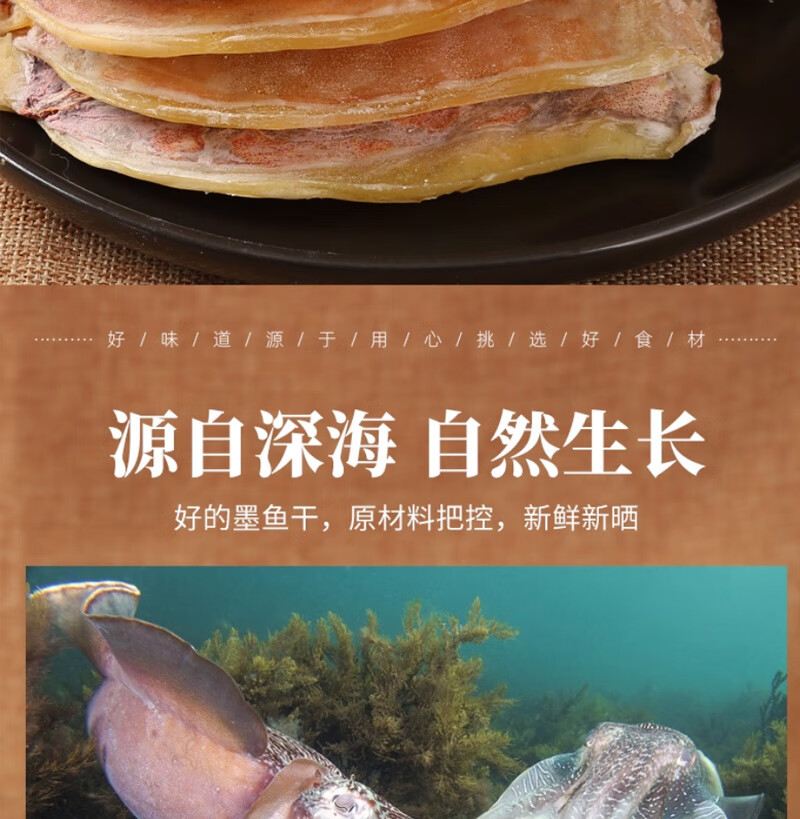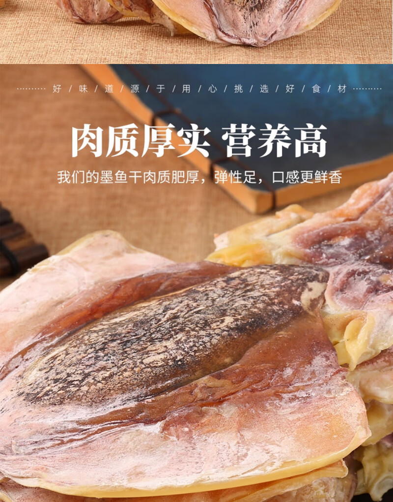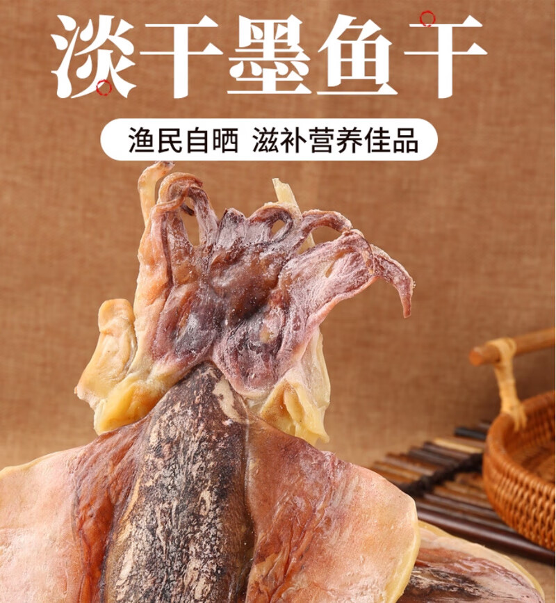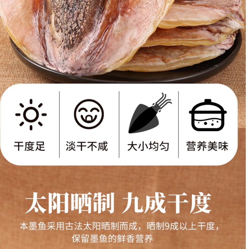 彩双海淡干墨鱼干煲汤干货特级大墨鱼干新鲜目鱼干海鲜煲汤送礼品海产 墨鱼干250【5-7只】