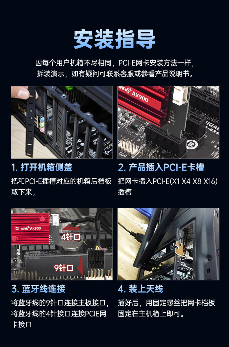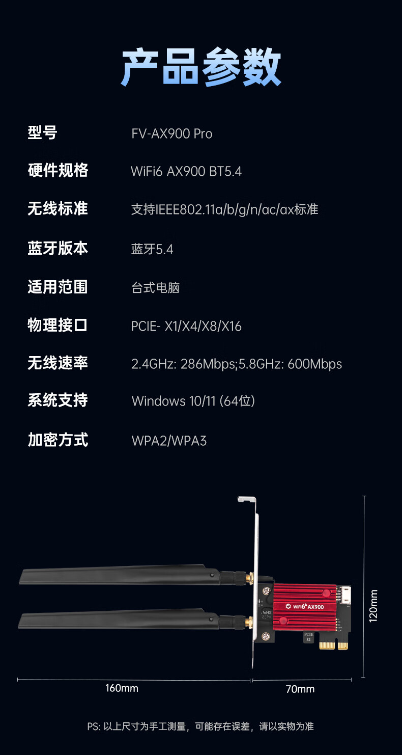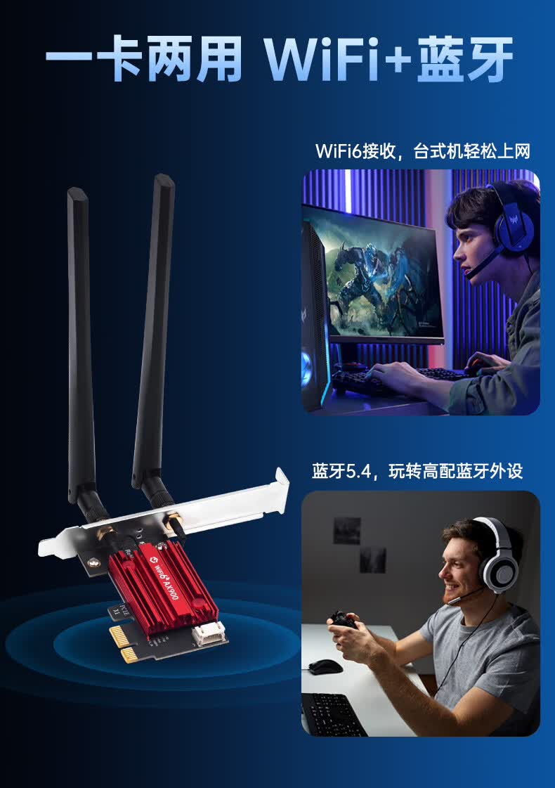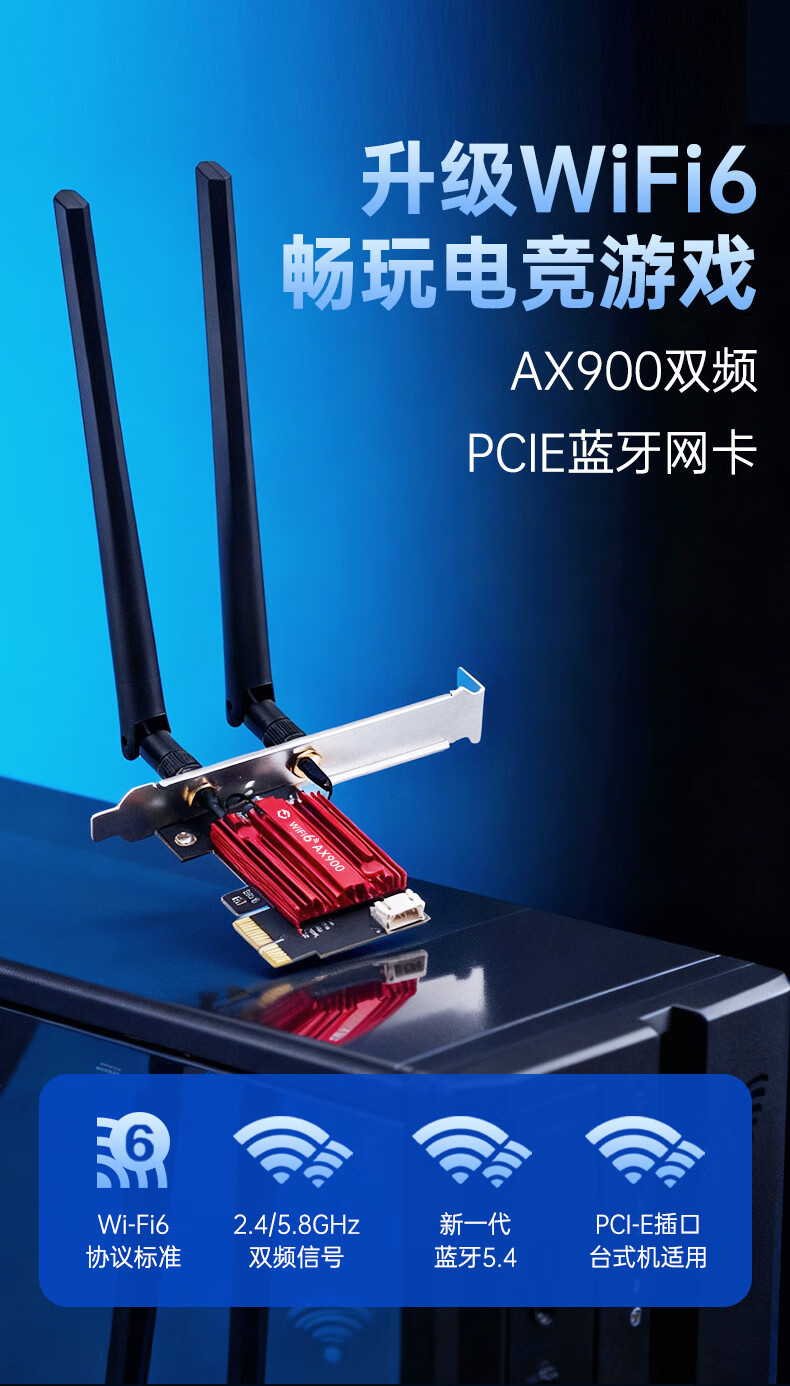 奋威(fenvi)PCIE无线网卡AX900+蓝牙5.4双频5G台式机电脑wifi6内置网卡无线wifi接收器日常家用办公