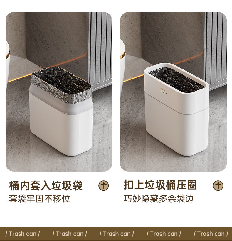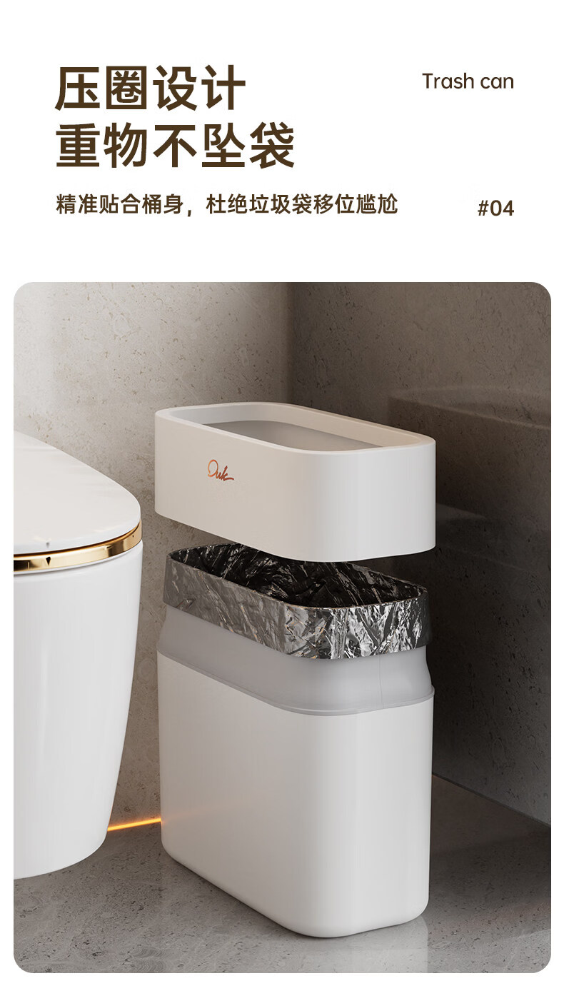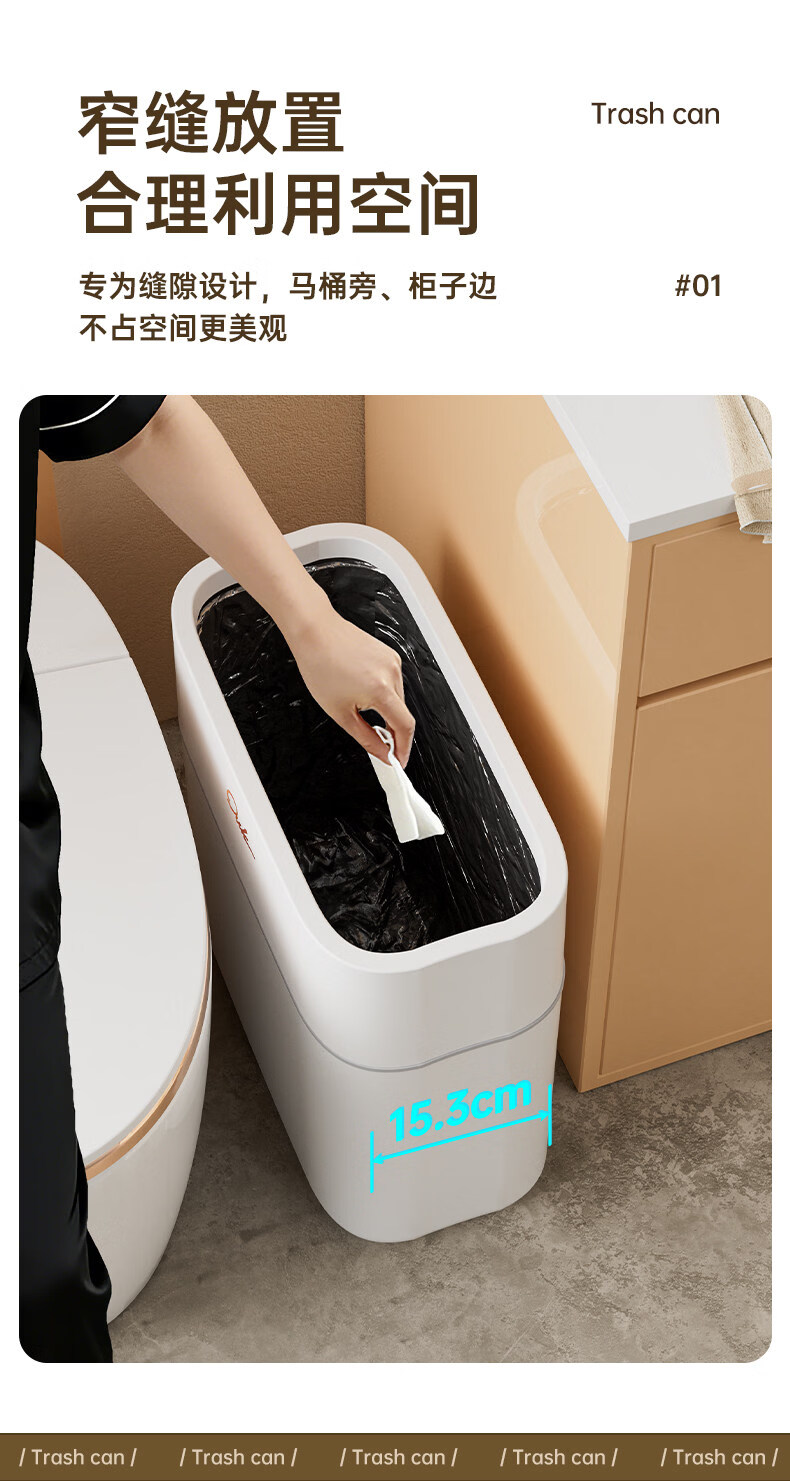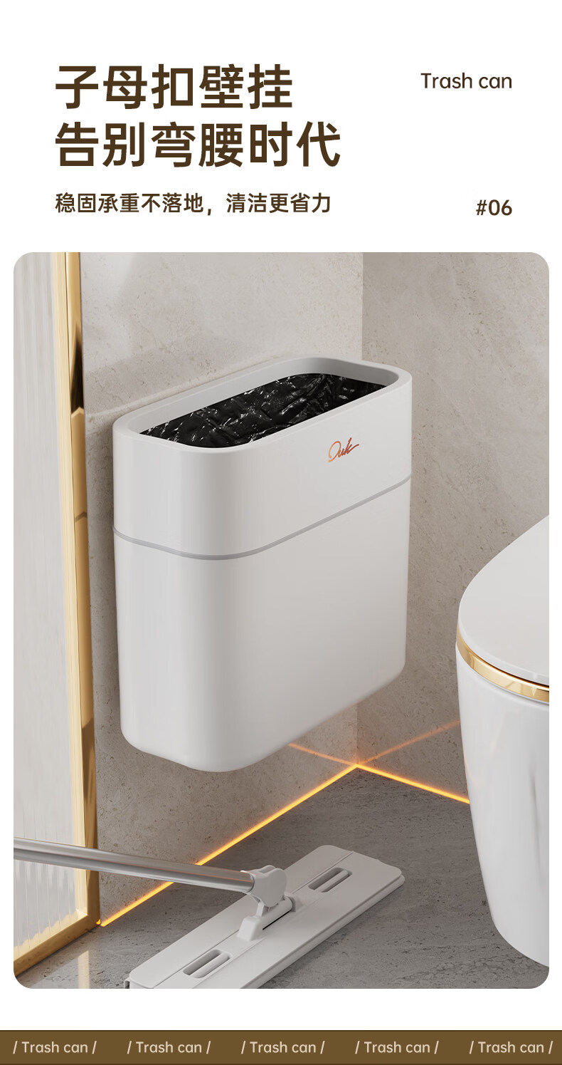 艾仕可(ASCOR)卫生间垃圾桶2026新款家用按压式客厅纸篓高颜值厕所专用带盖窄缝 大号12L/白灰色【壁挂/落地两用-稳固不掉】