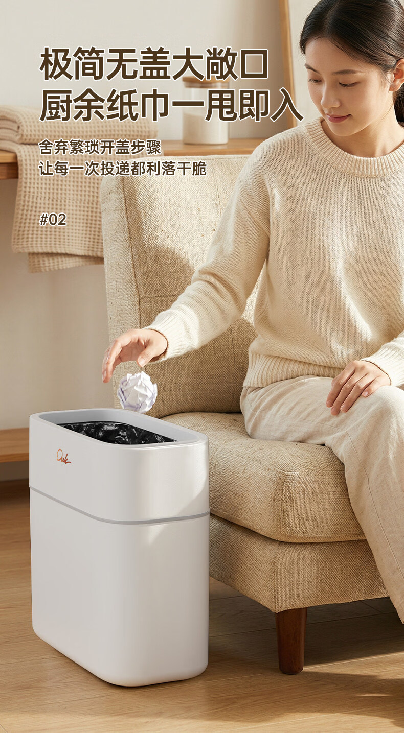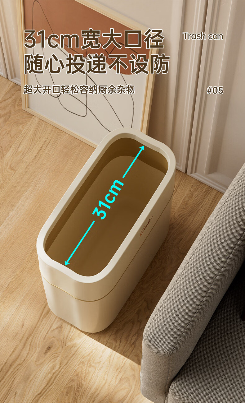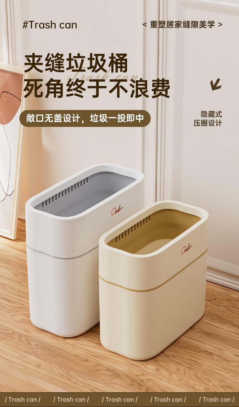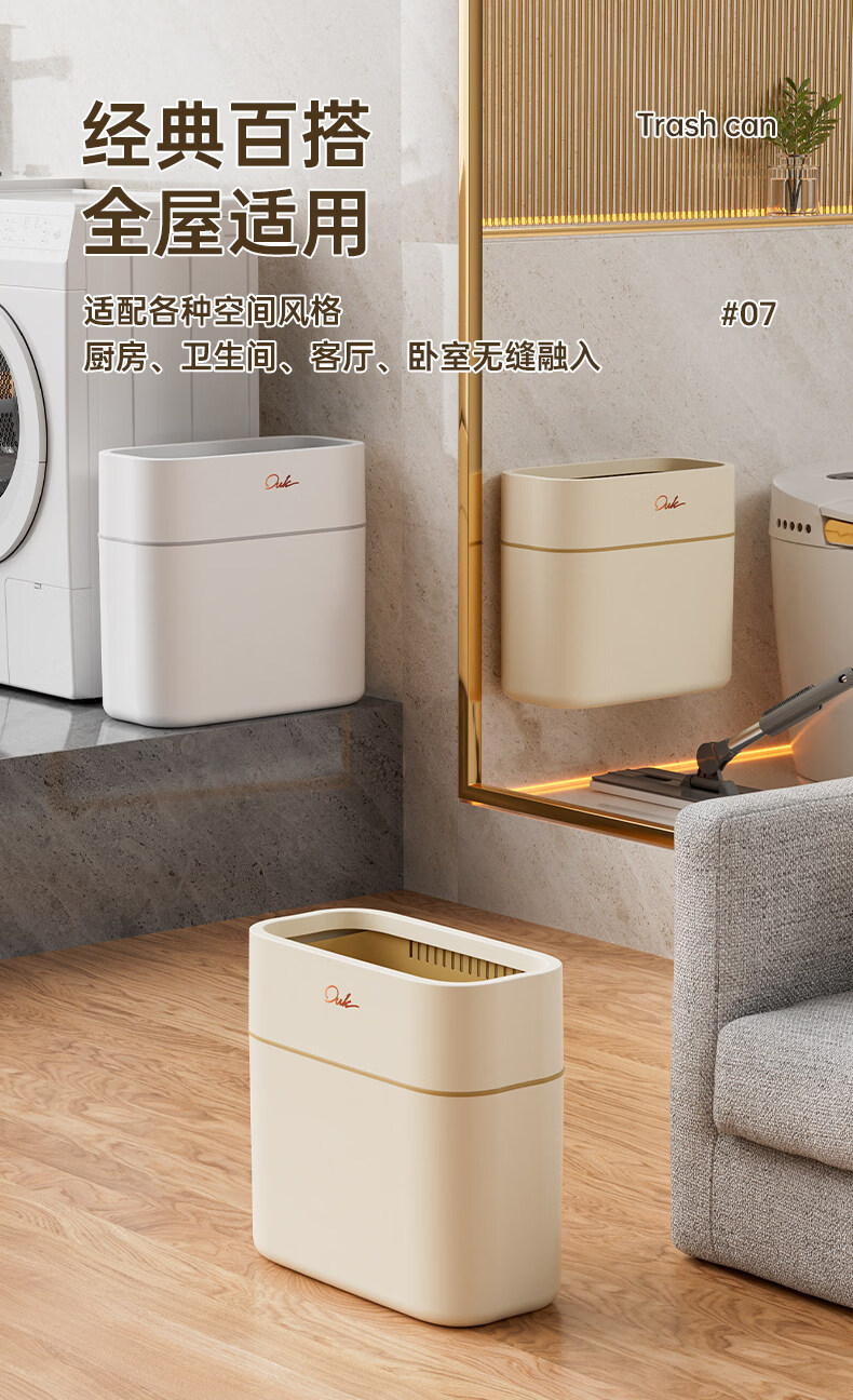 艾仕可(ASCOR)卫生间垃圾桶2026新款家用按压式客厅纸篓高颜值厕所专用带盖窄缝 大号12L/白灰色【壁挂/落地两用-稳固不掉】