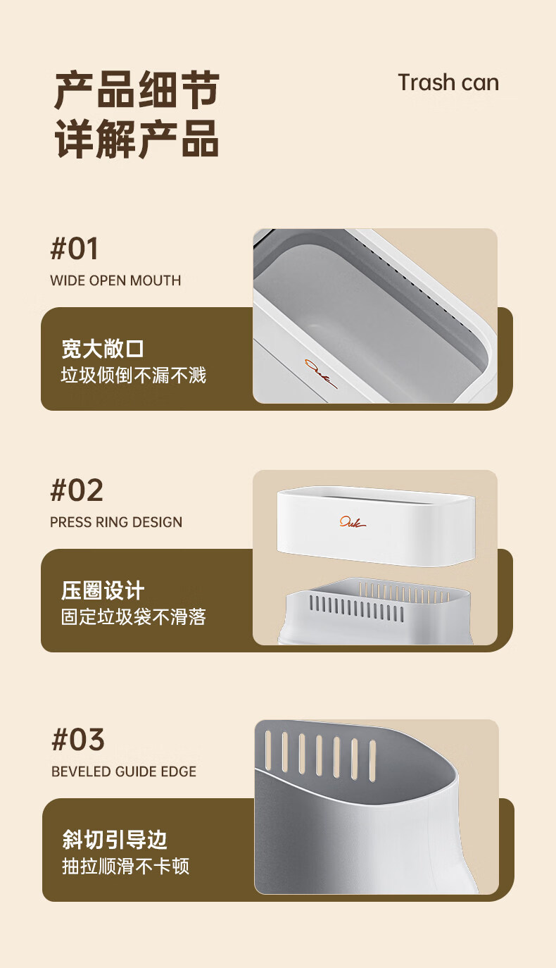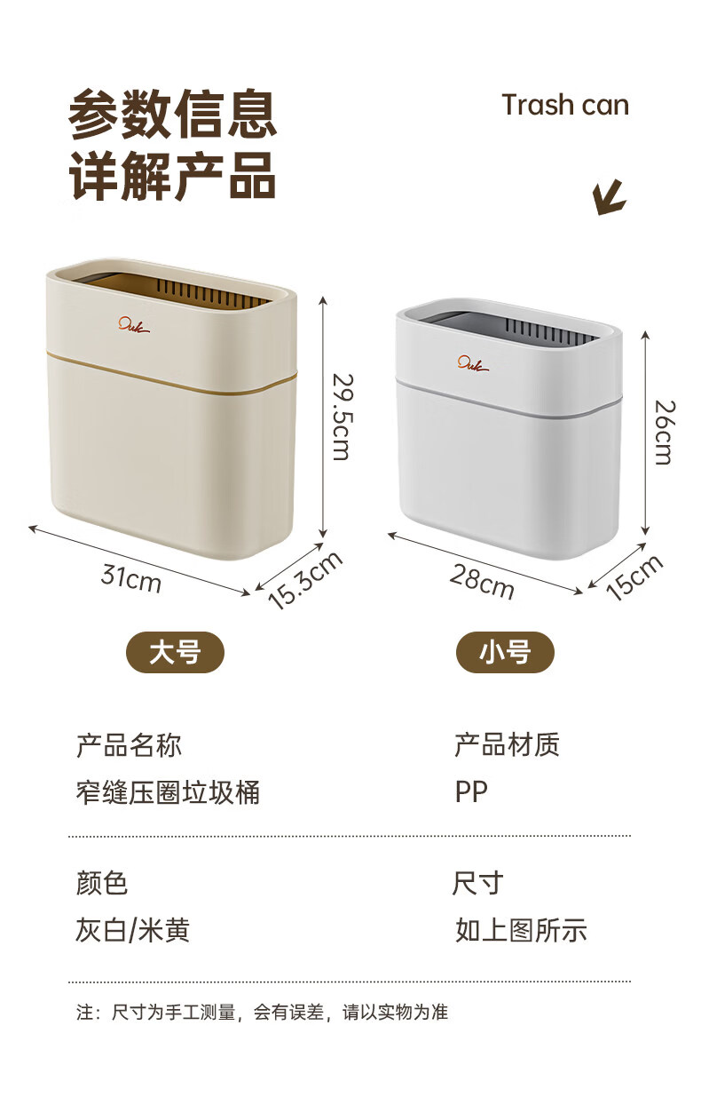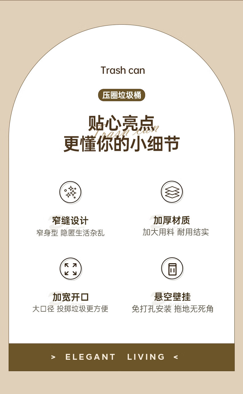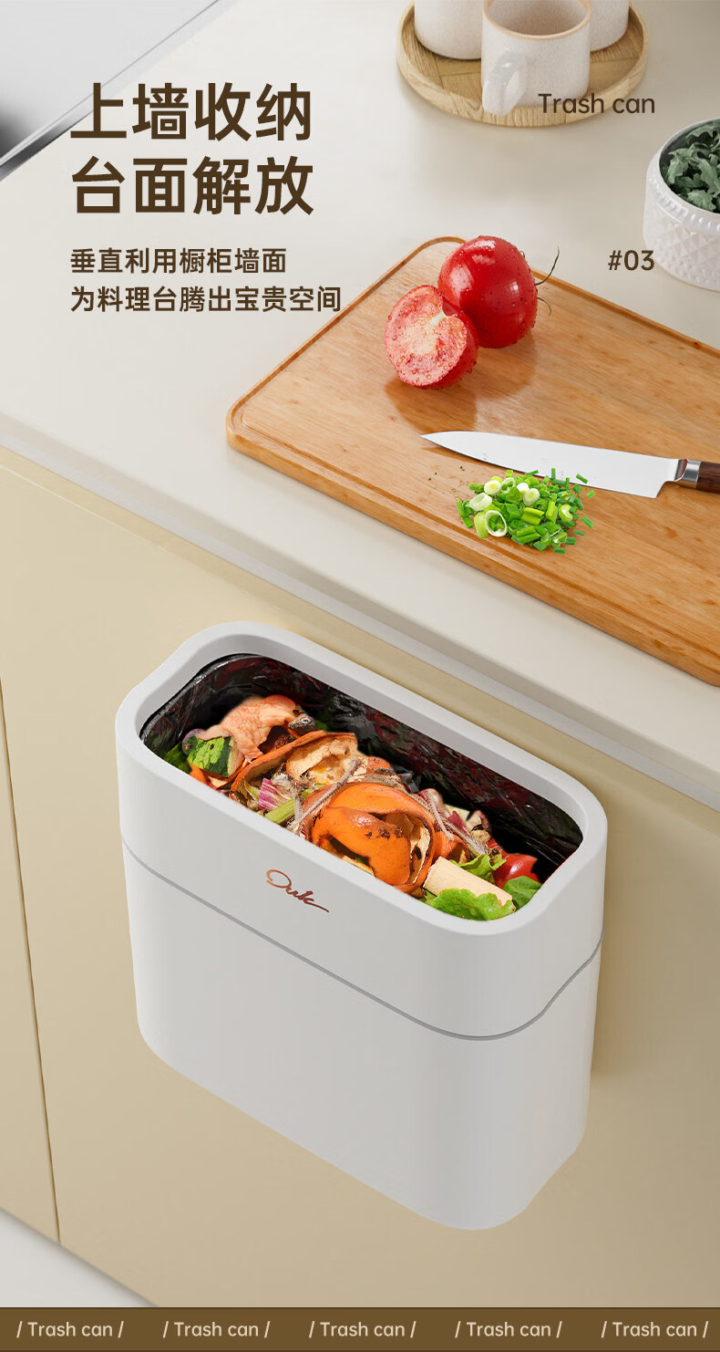 艾仕可(ASCOR)卫生间垃圾桶2026新款家用按压式客厅纸篓高颜值厕所专用带盖窄缝 大号12L/白灰色【壁挂/落地两用-稳固不掉】