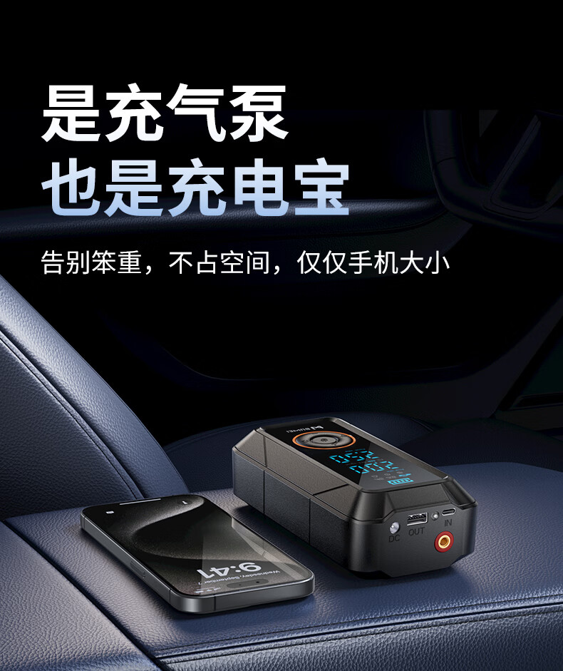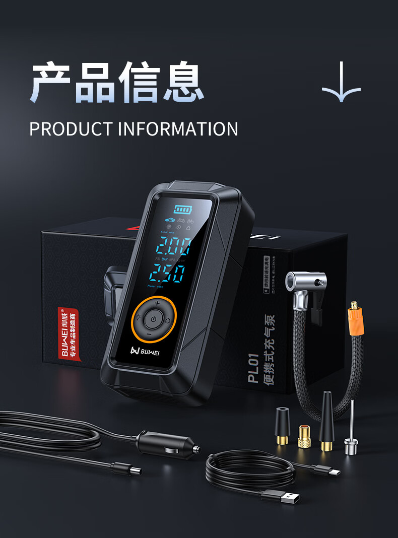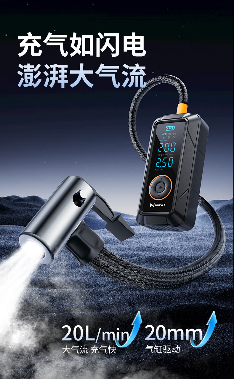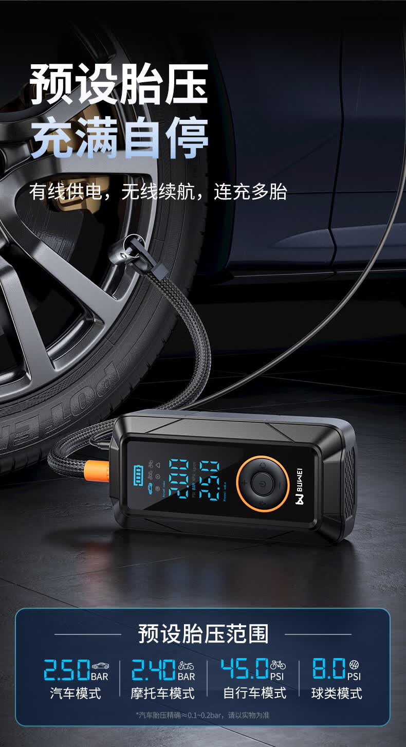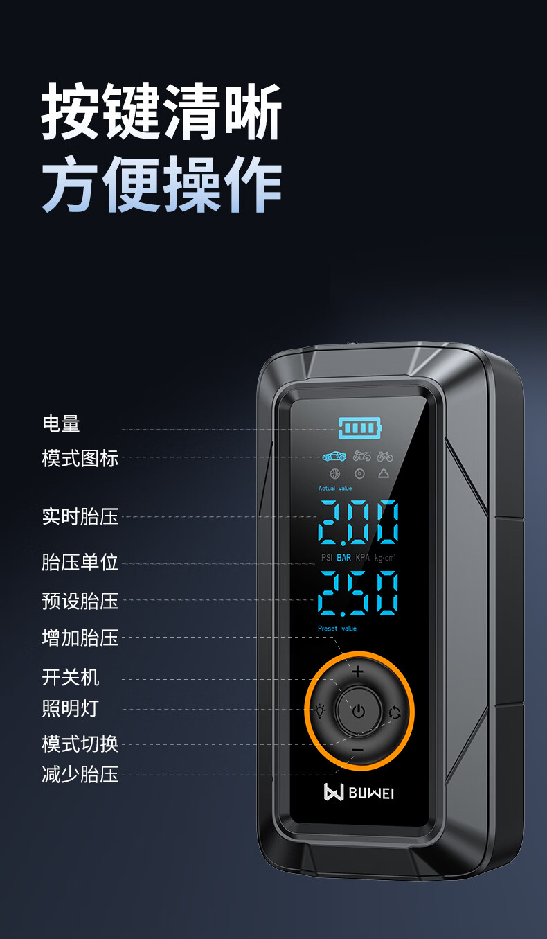 埠威车载充气泵汽车轮胎自行公路车电动车便携无线有线充气宝测压高压