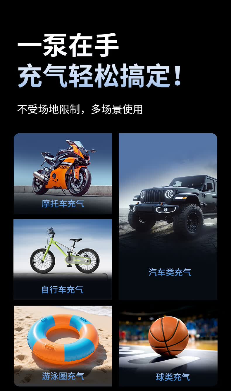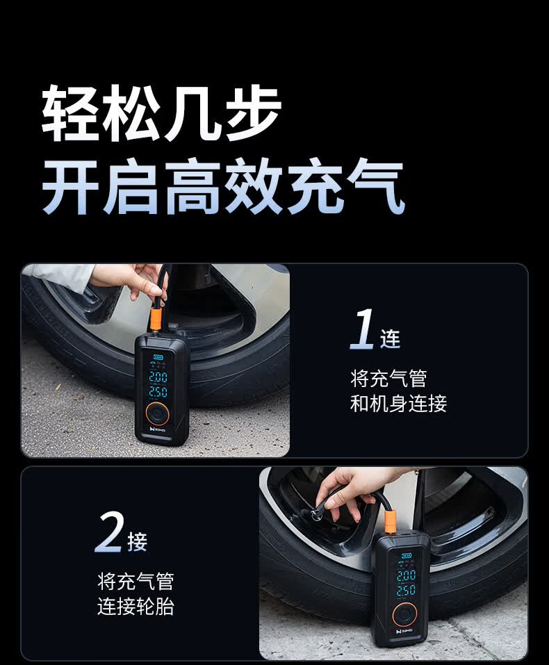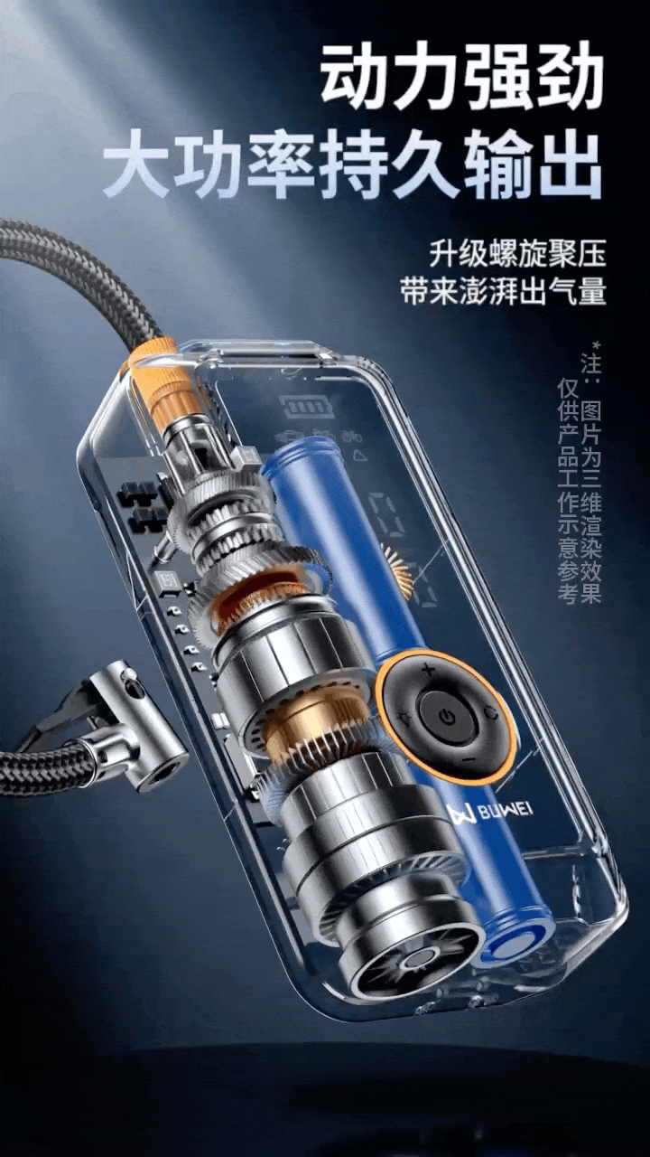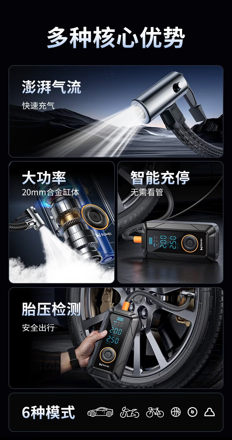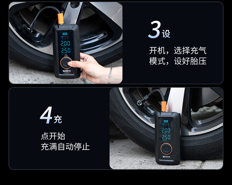 埠威车载充气泵汽车轮胎自行公路车电动车便携无线有线充气宝测压高压