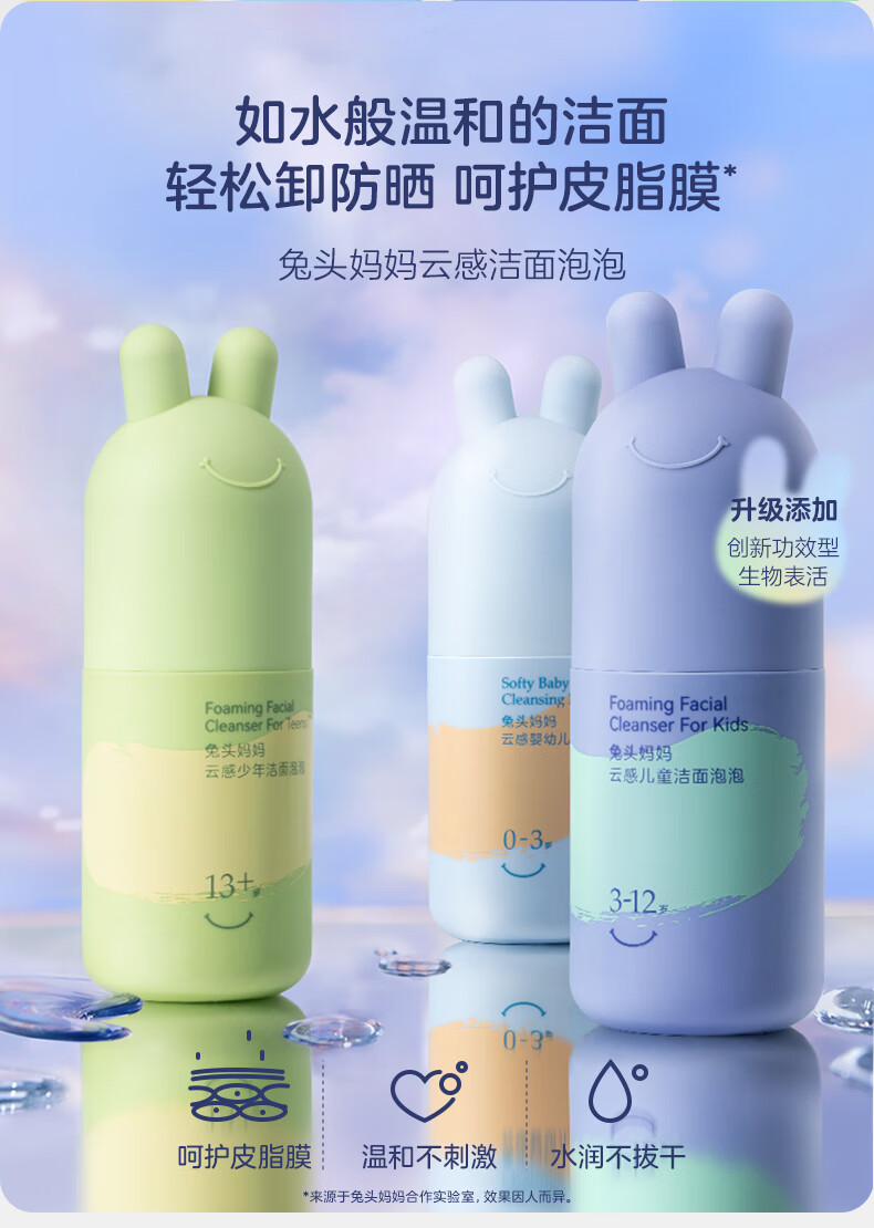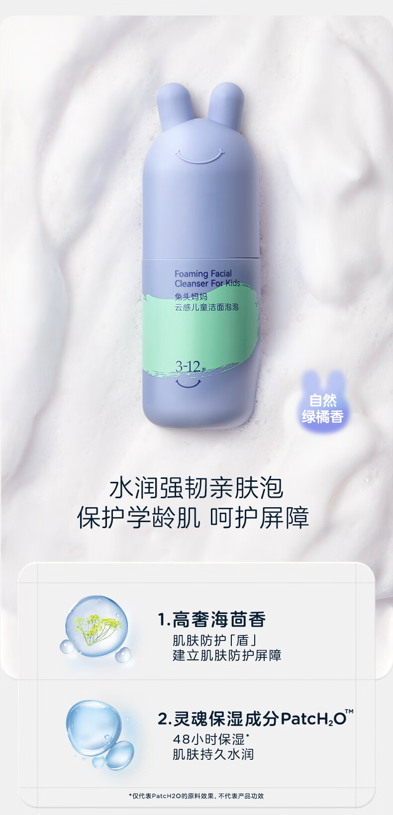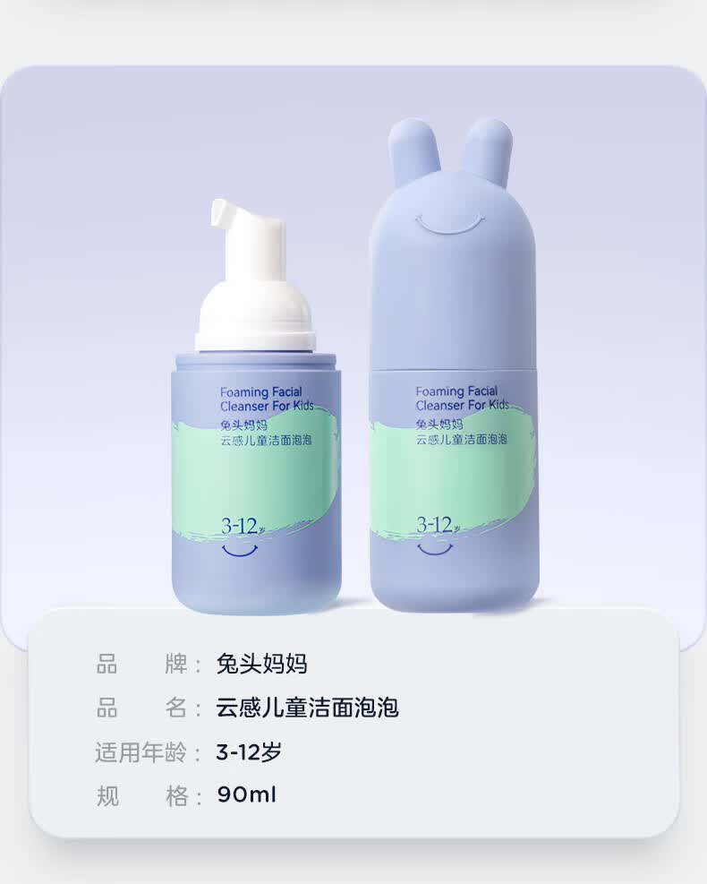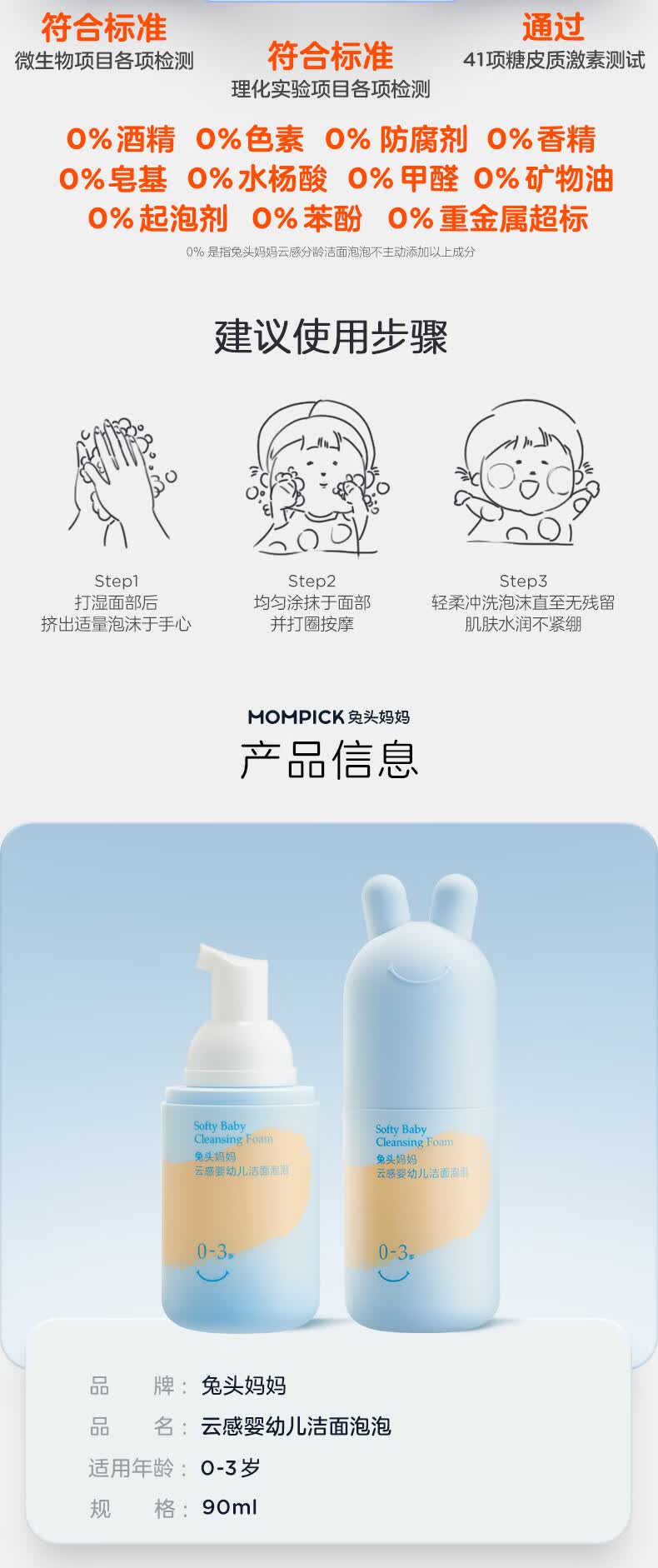 兔头妈妈儿童洗面奶 宝宝洁面乳洁面泡 护肤清洁洗脸舒缓卸防晒0-3岁90ml